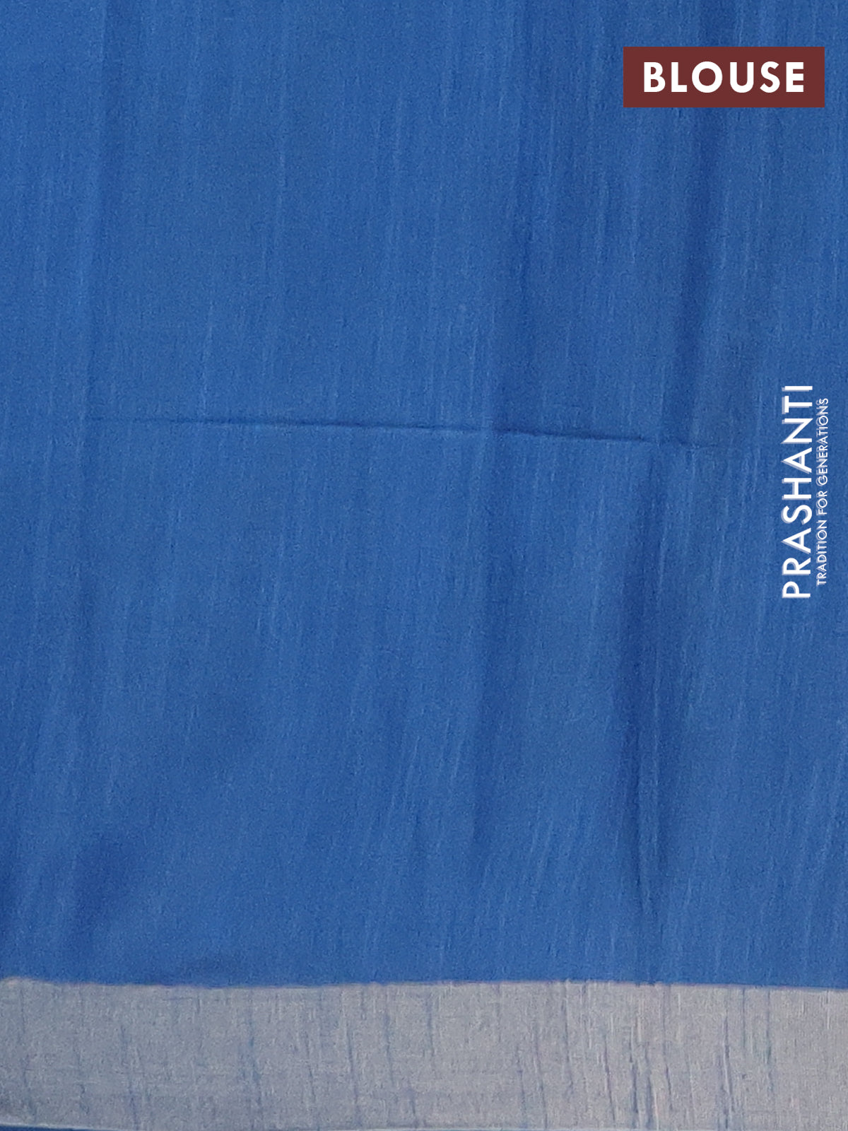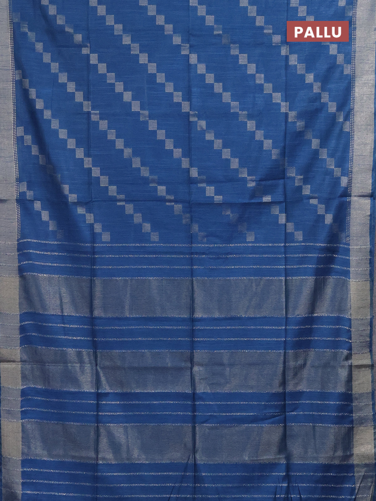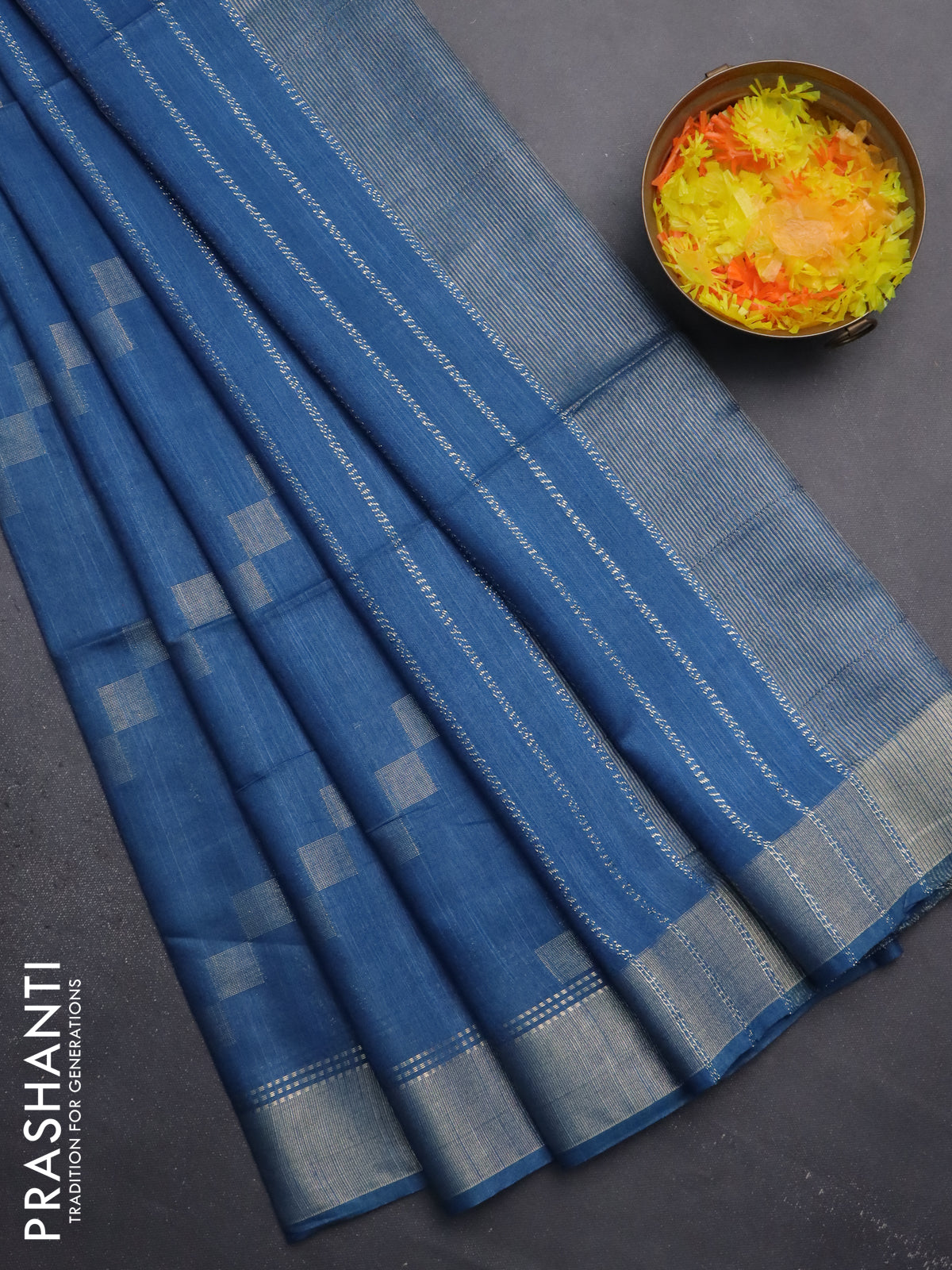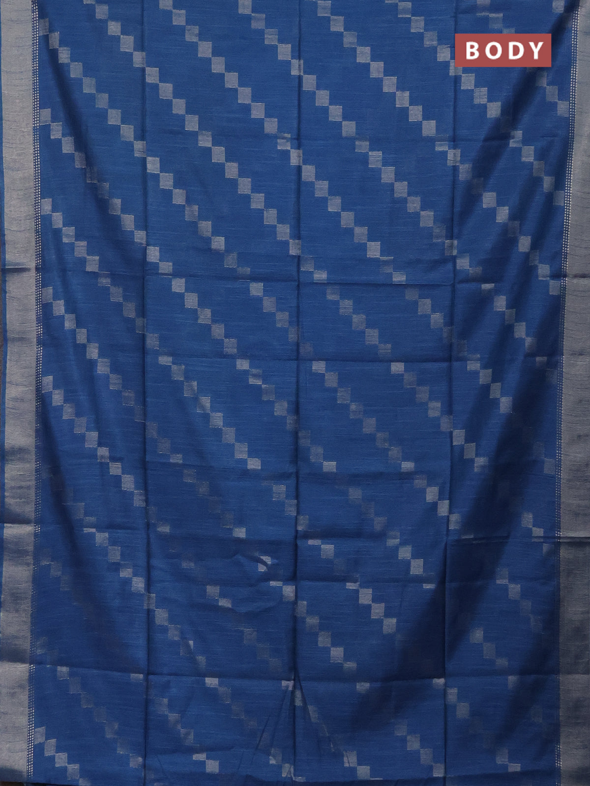 Semi bamboo saree cs blue with zari weaves and zari woven border