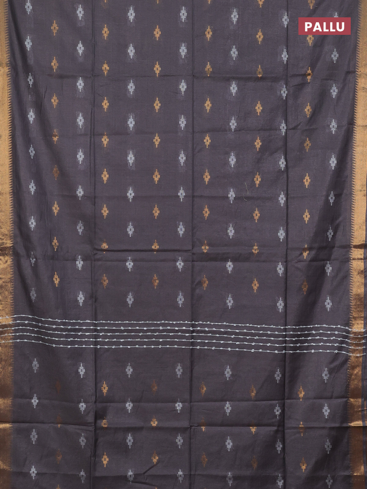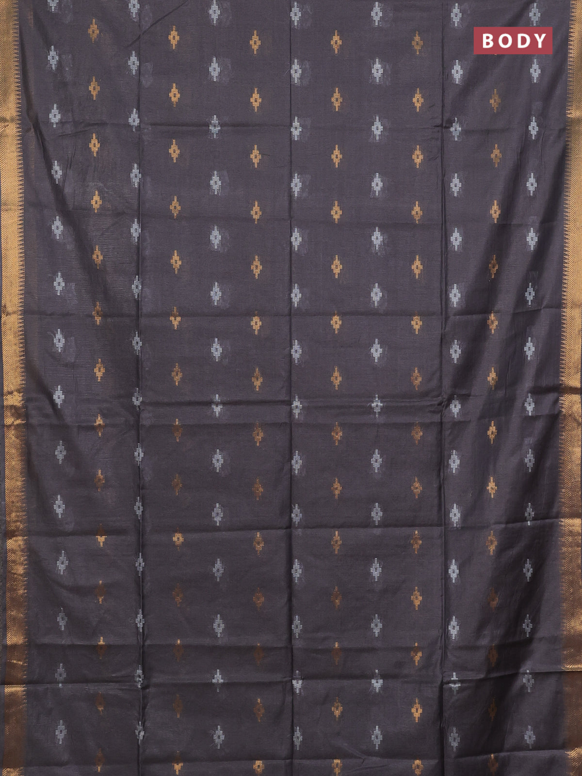 Semi bamboo saree grey with thread & zari woven buttas and zari woven border