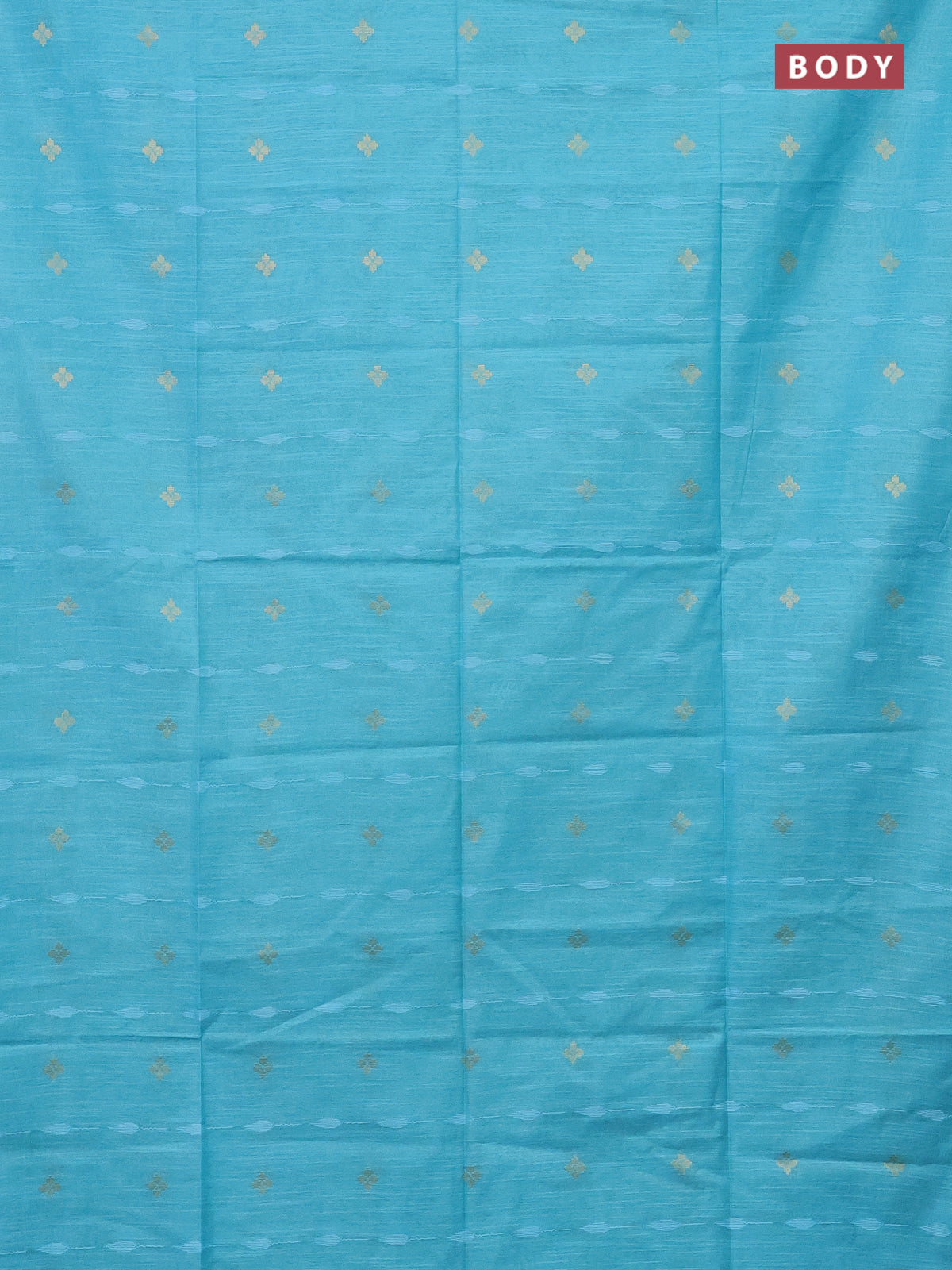 Semi bamboo saree light blue and pastel green with thread & zari woven buttas in borderless style