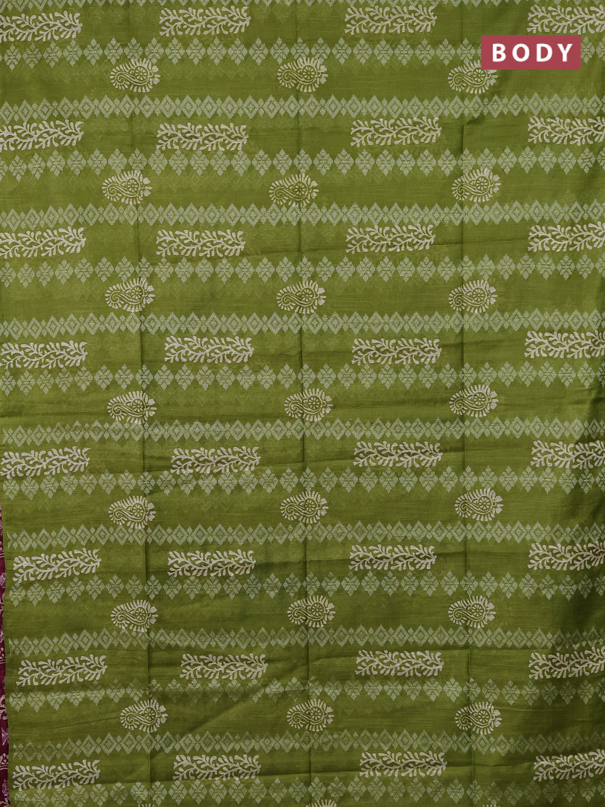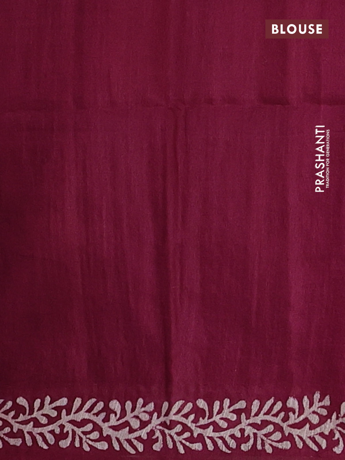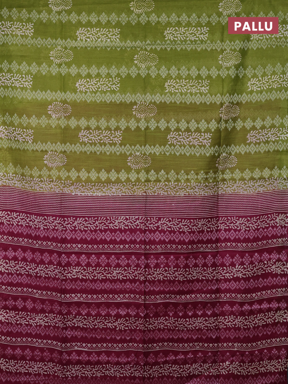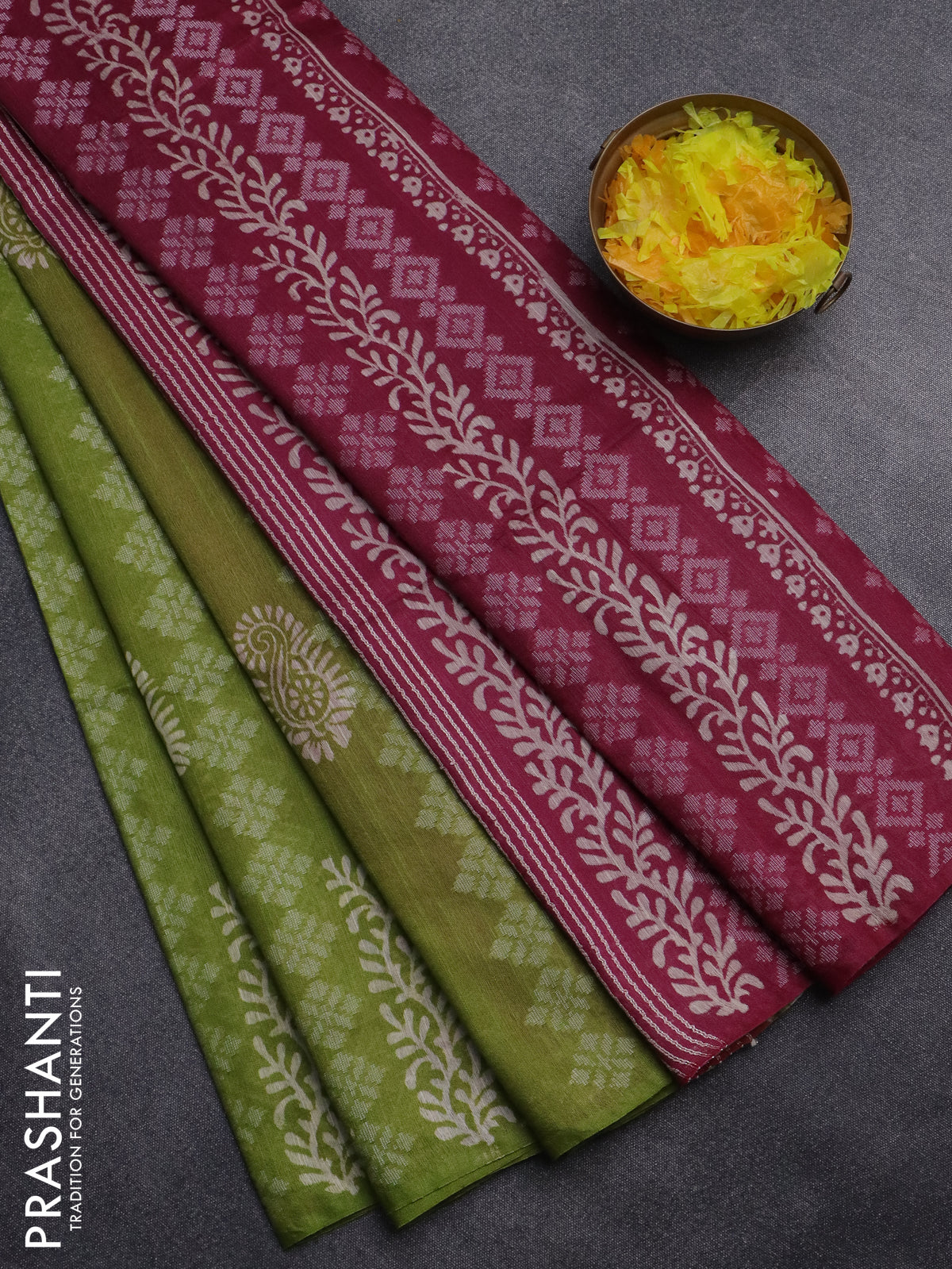 Semi bamboo saree light green and dark magenta pink with allover thread weaves & prints in borderless style