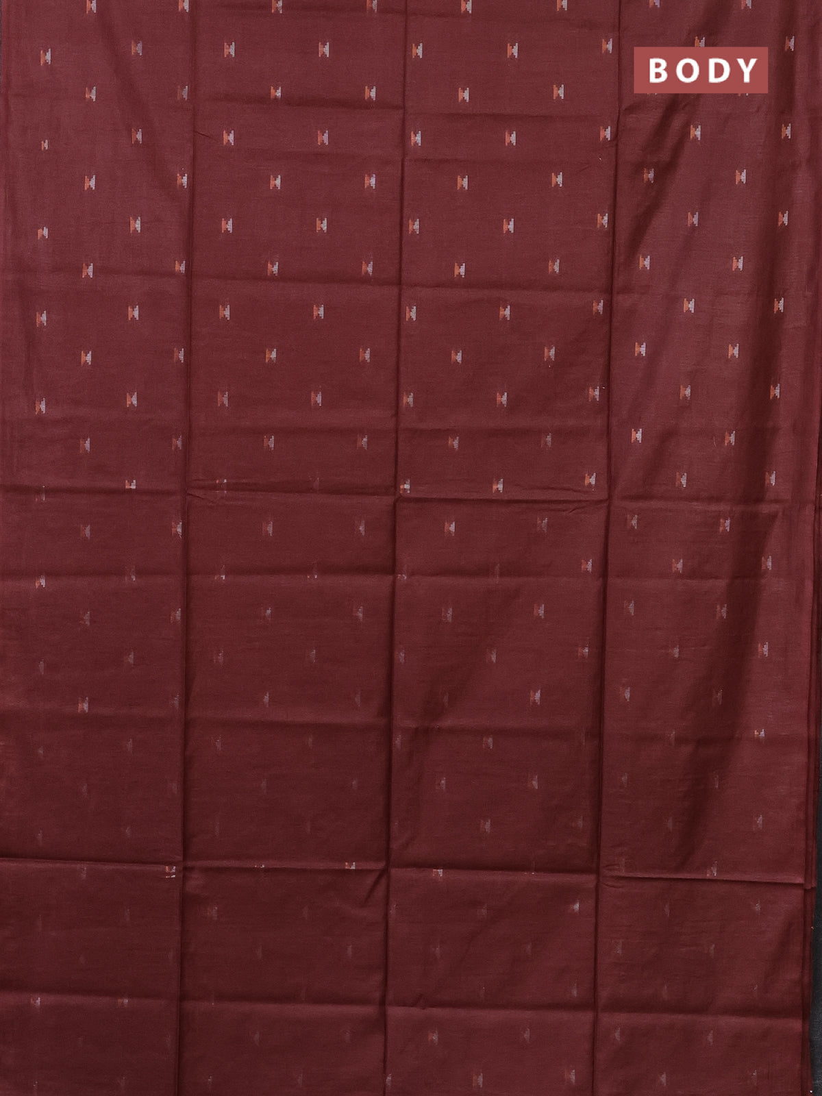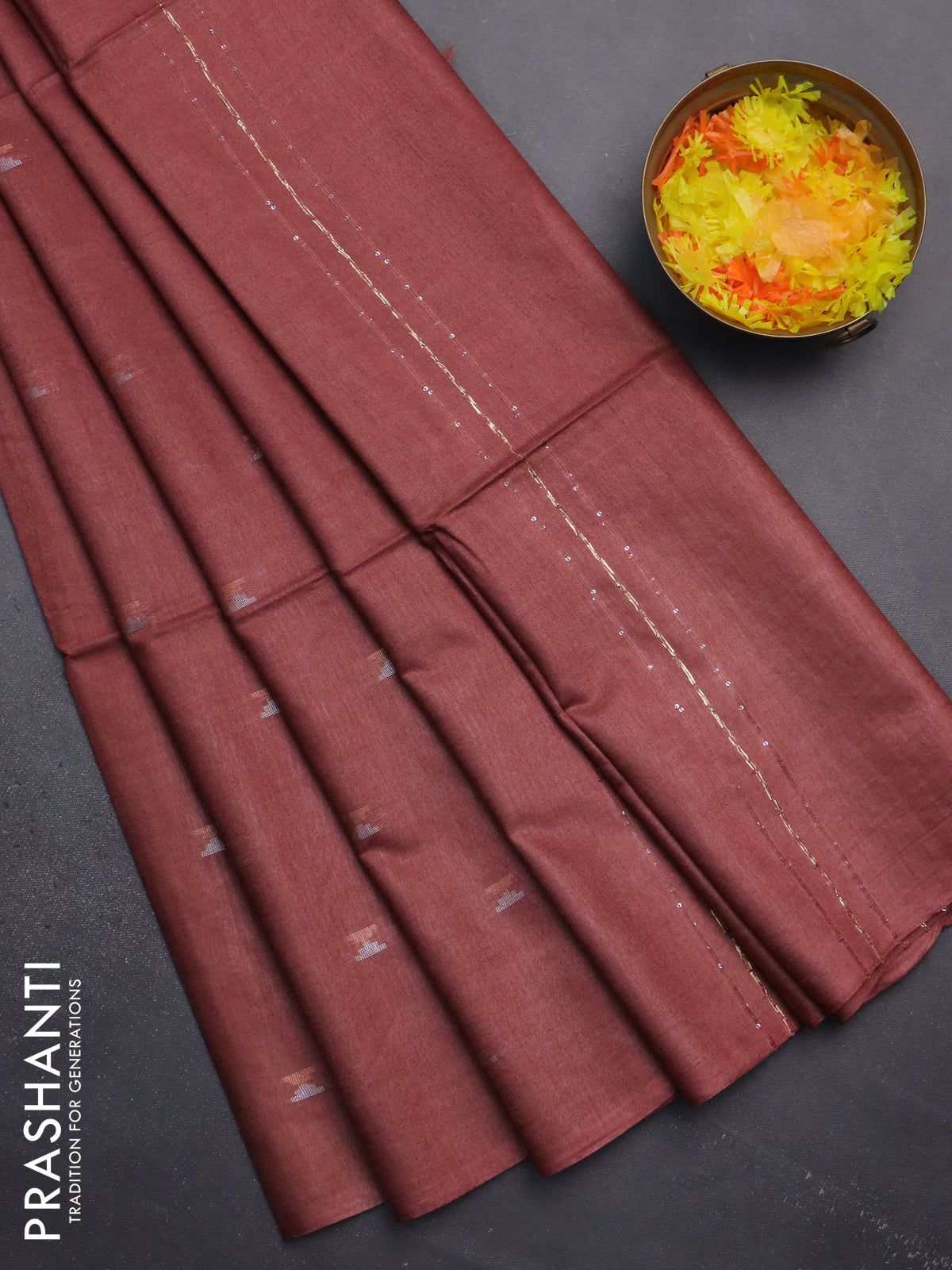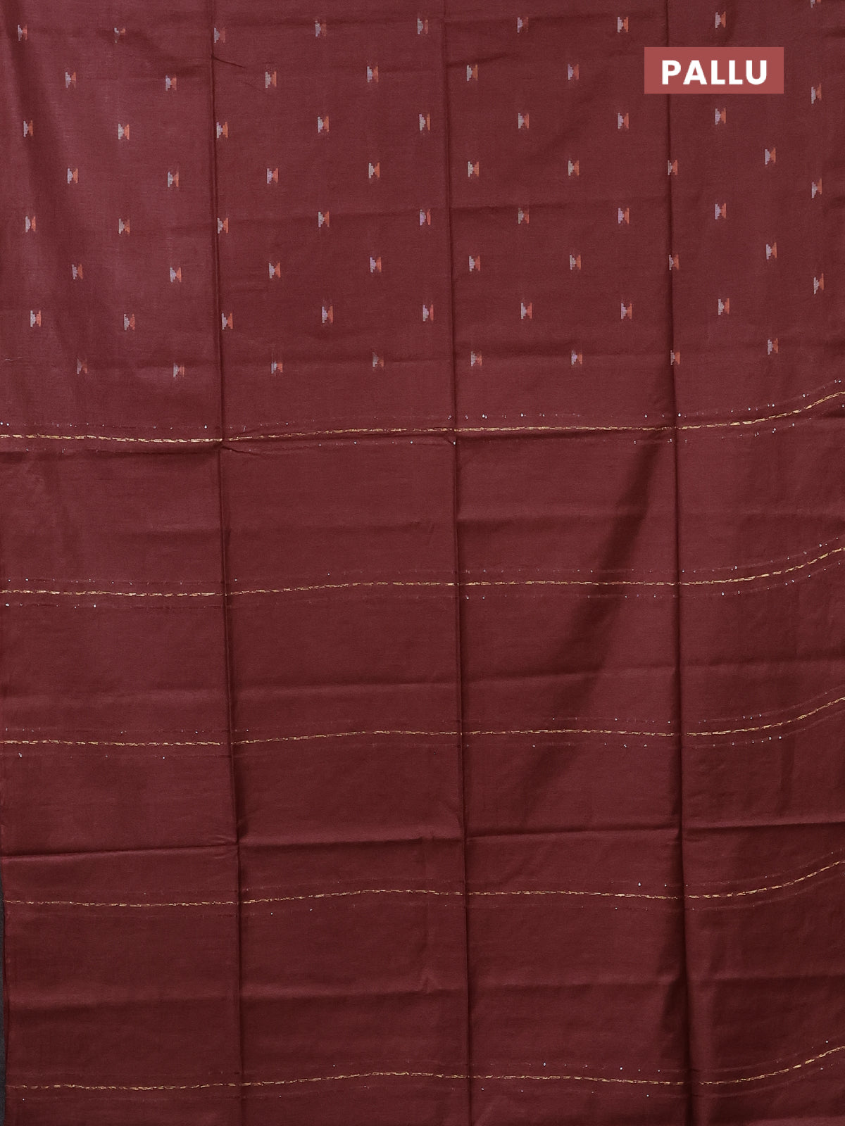 Semi bamboo saree maroon with silver & copper zari buttas in borderless style