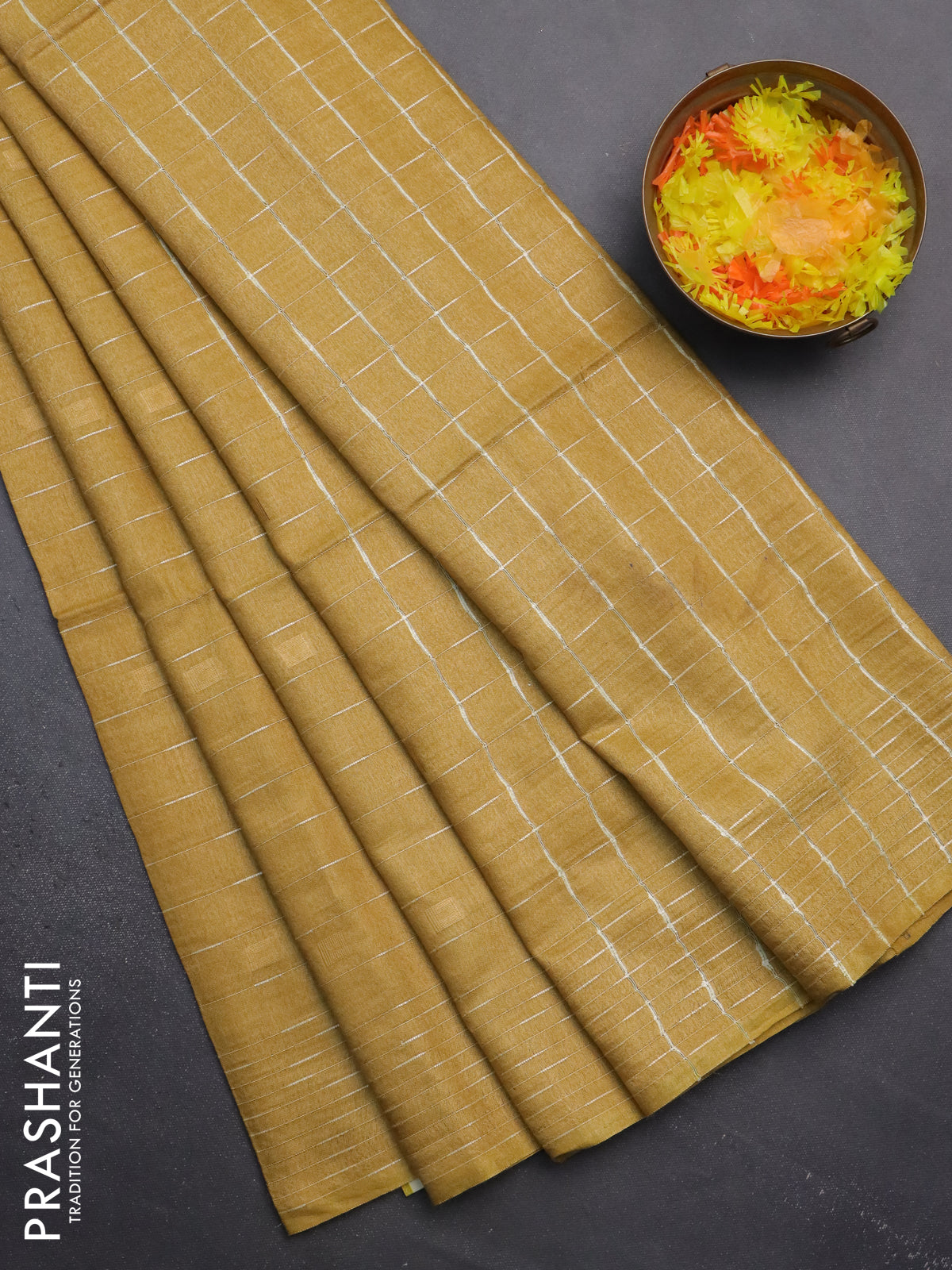 Semi bamboo saree mustard yellow with allover thread weaves and woven border