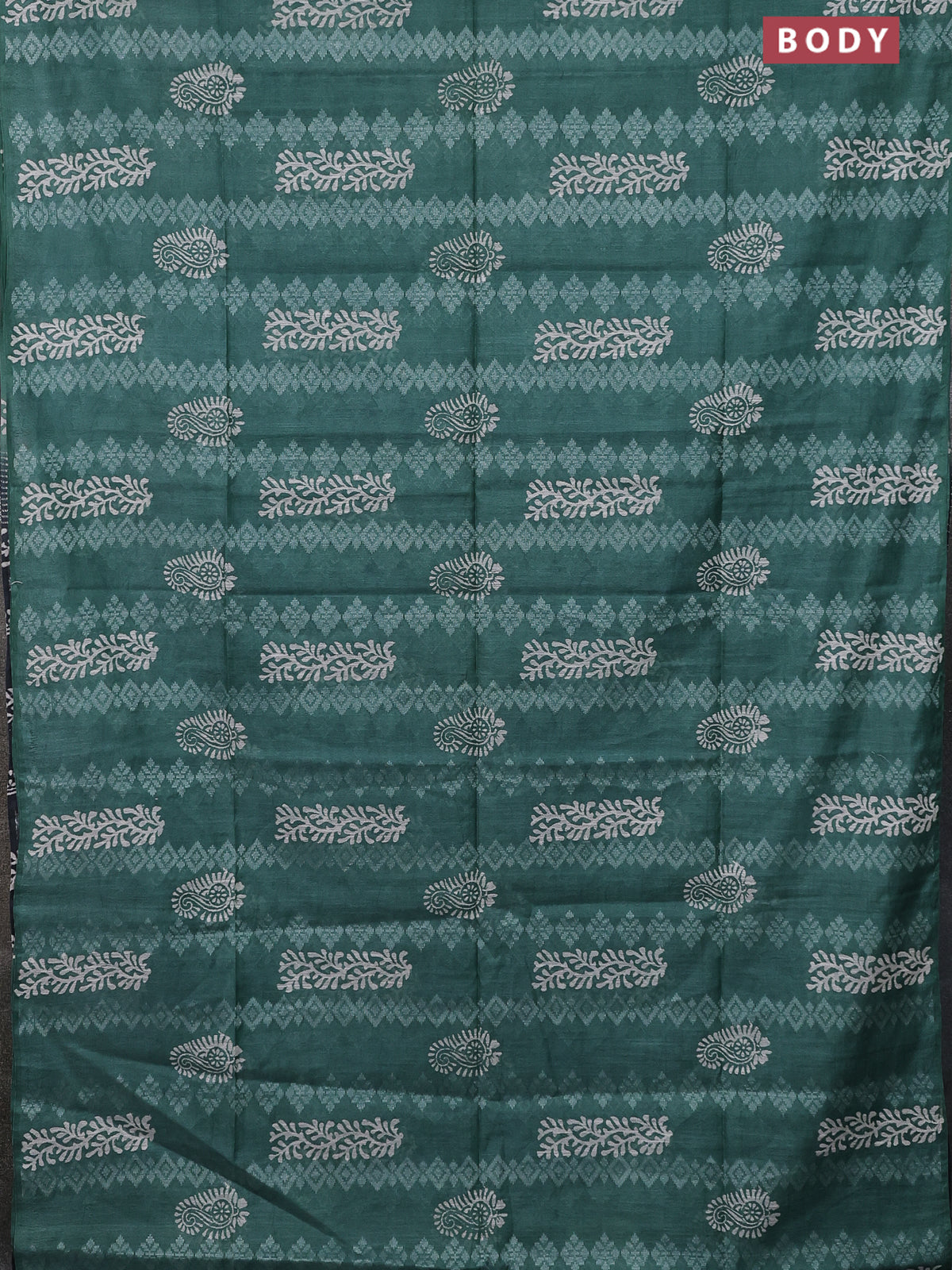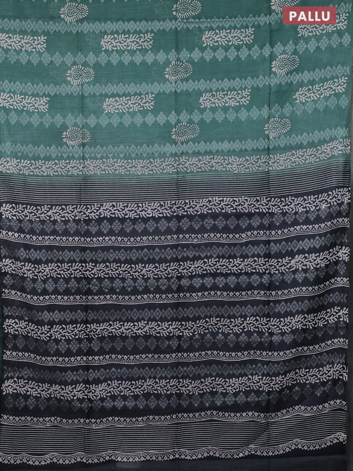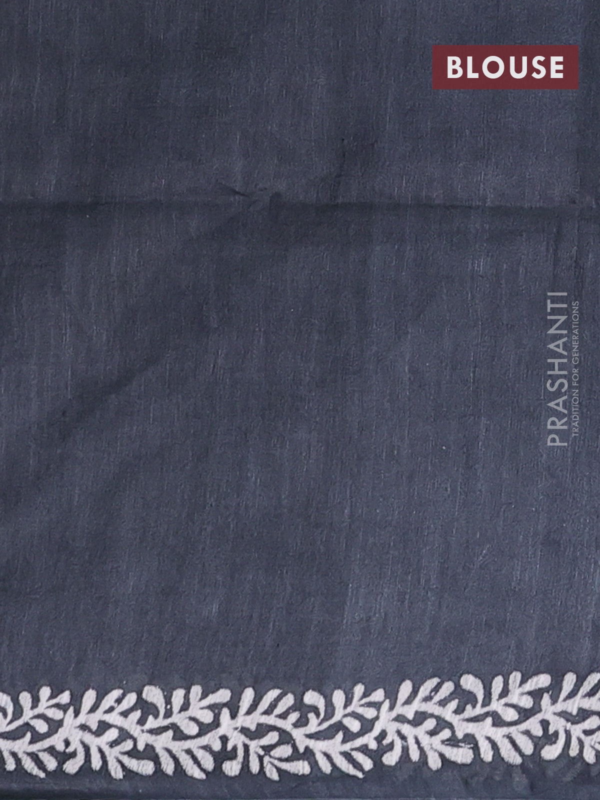 Semi bamboo saree pastel green and elephant grey with allover thread weaves & prints in borderless style