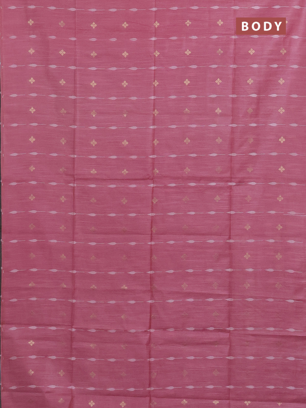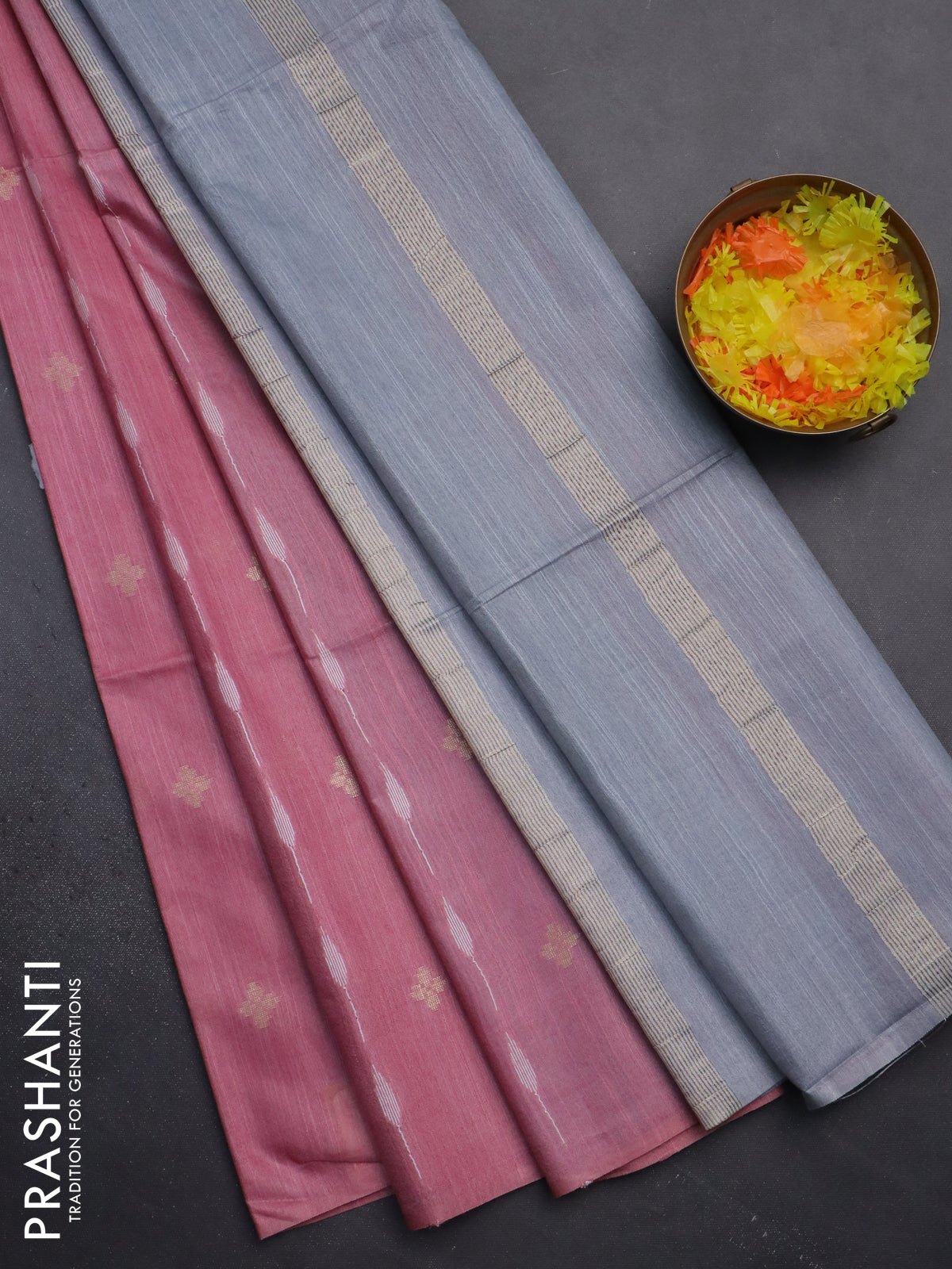 Semi bamboo saree pastel pink and grey with thread & zari woven buttas in borderless style