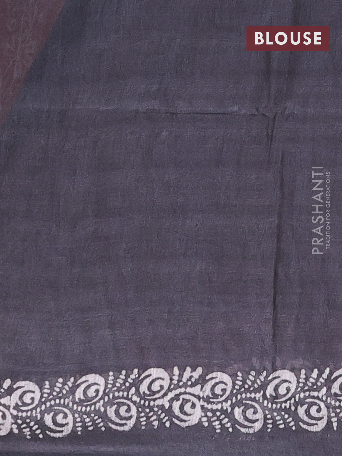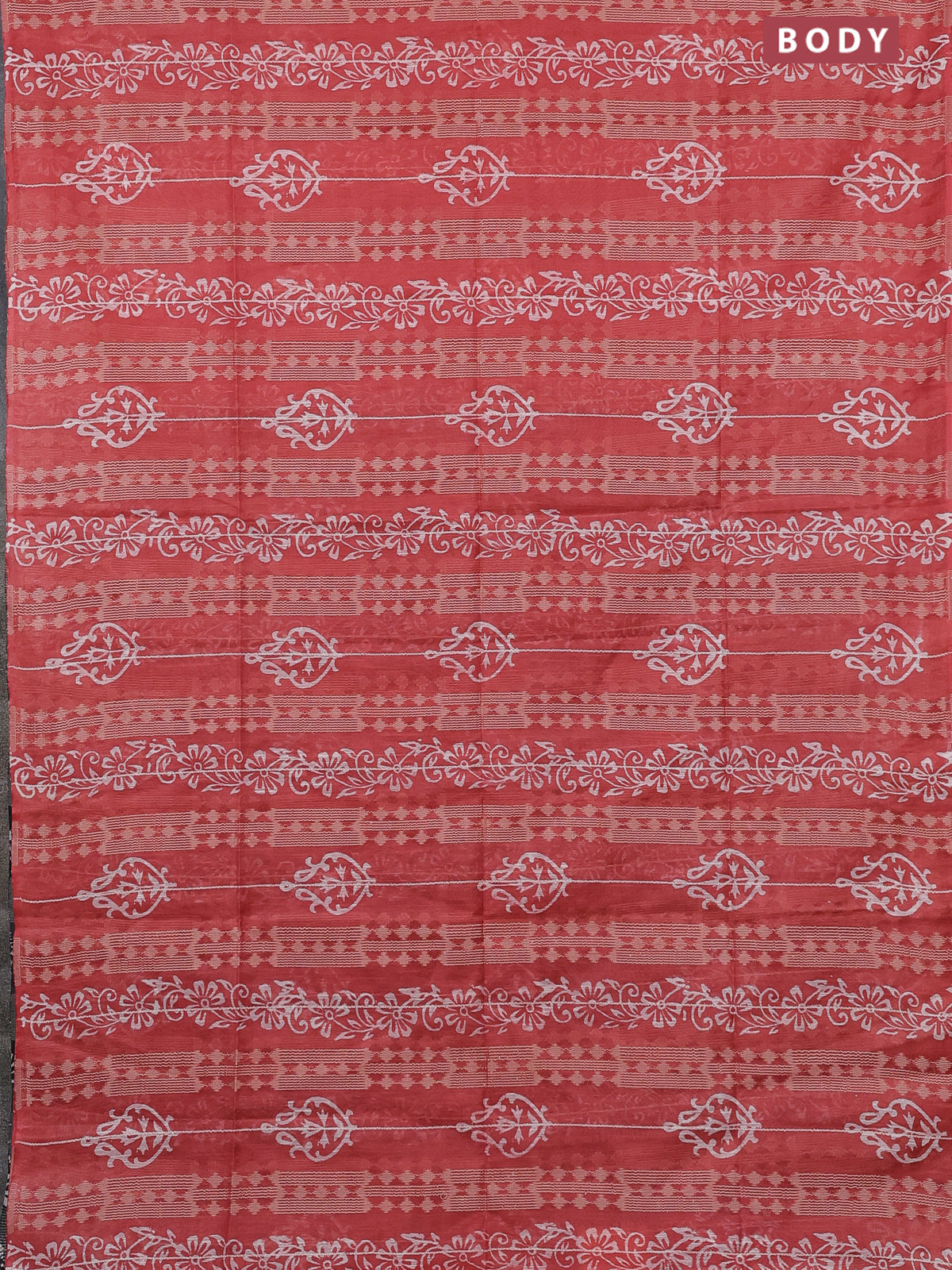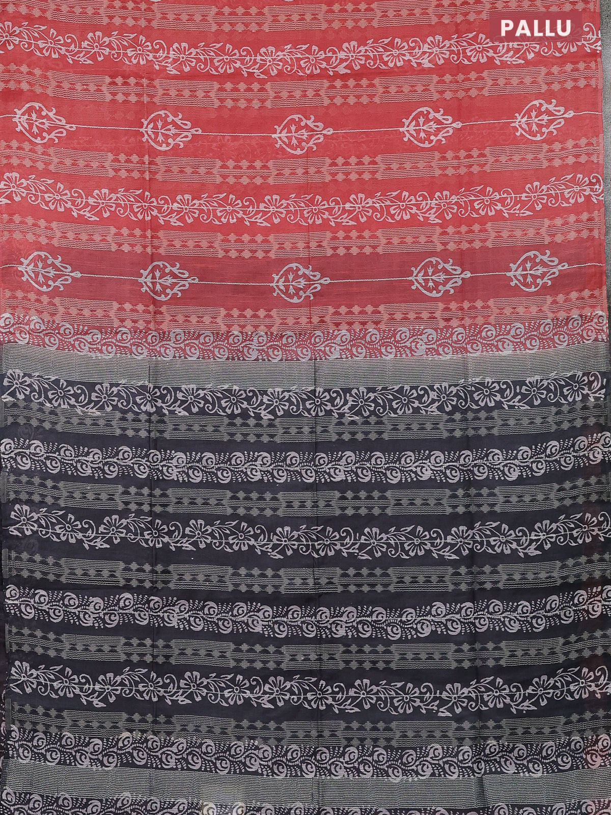 Semi bamboo saree peach orange and elephant grey with allover thread weaves & prints in borderless style