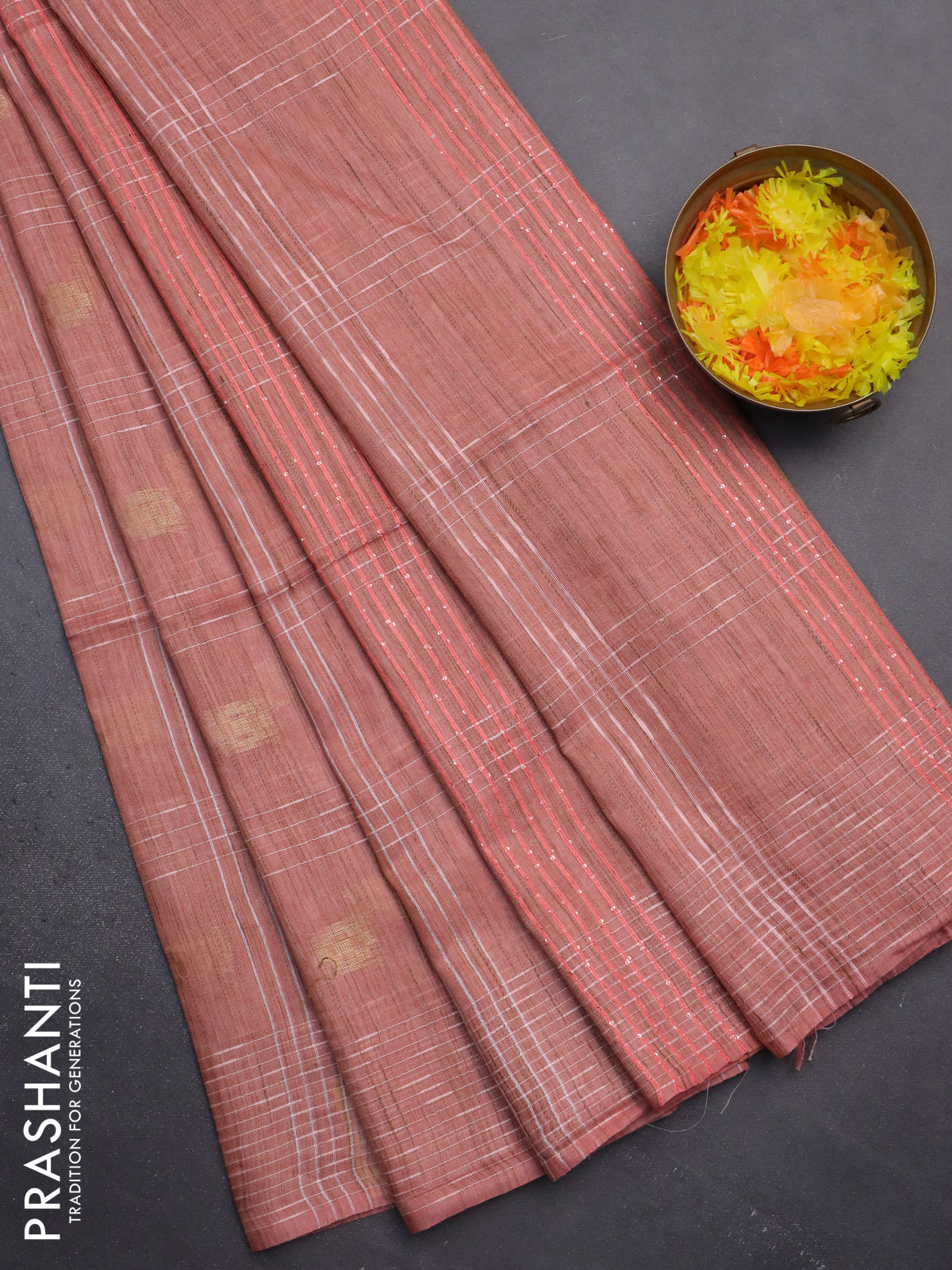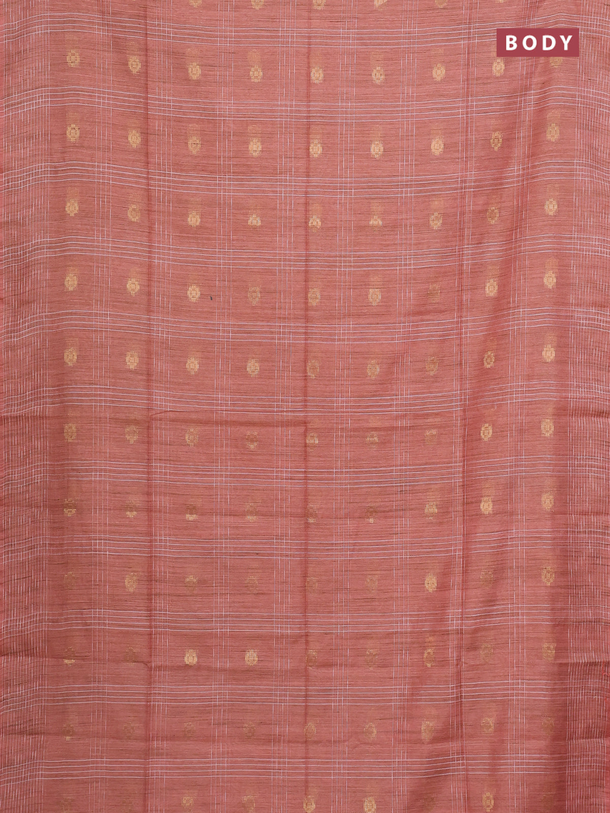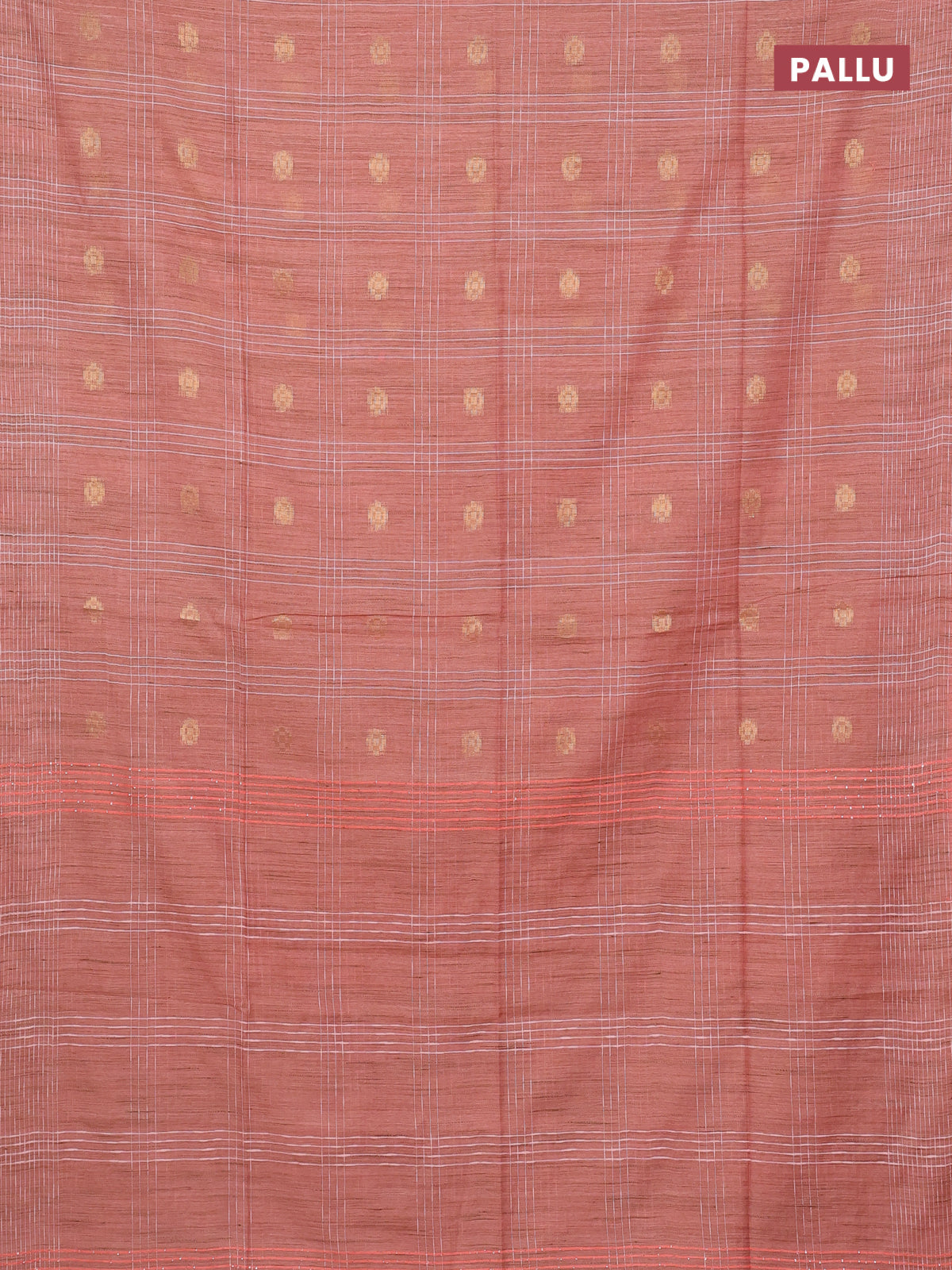 Semi bamboo saree peach orange with allover thread weaves & zari buttas and woven border