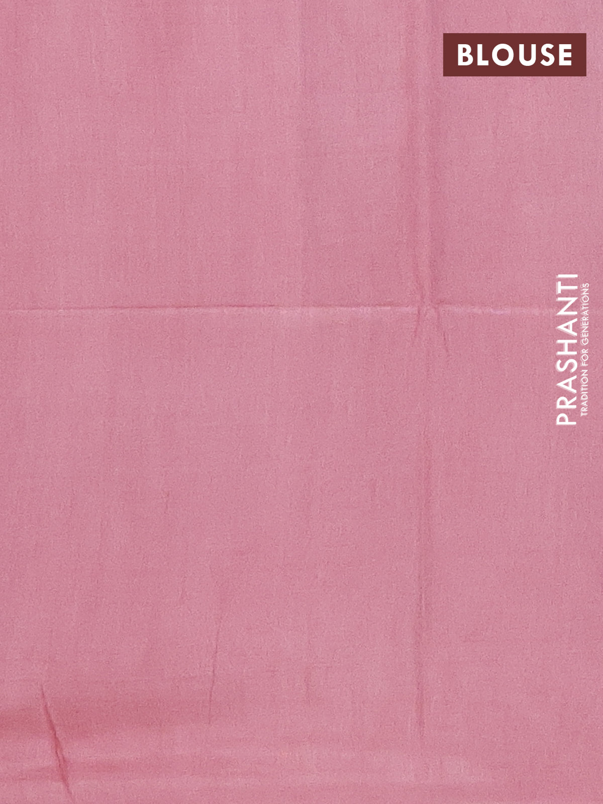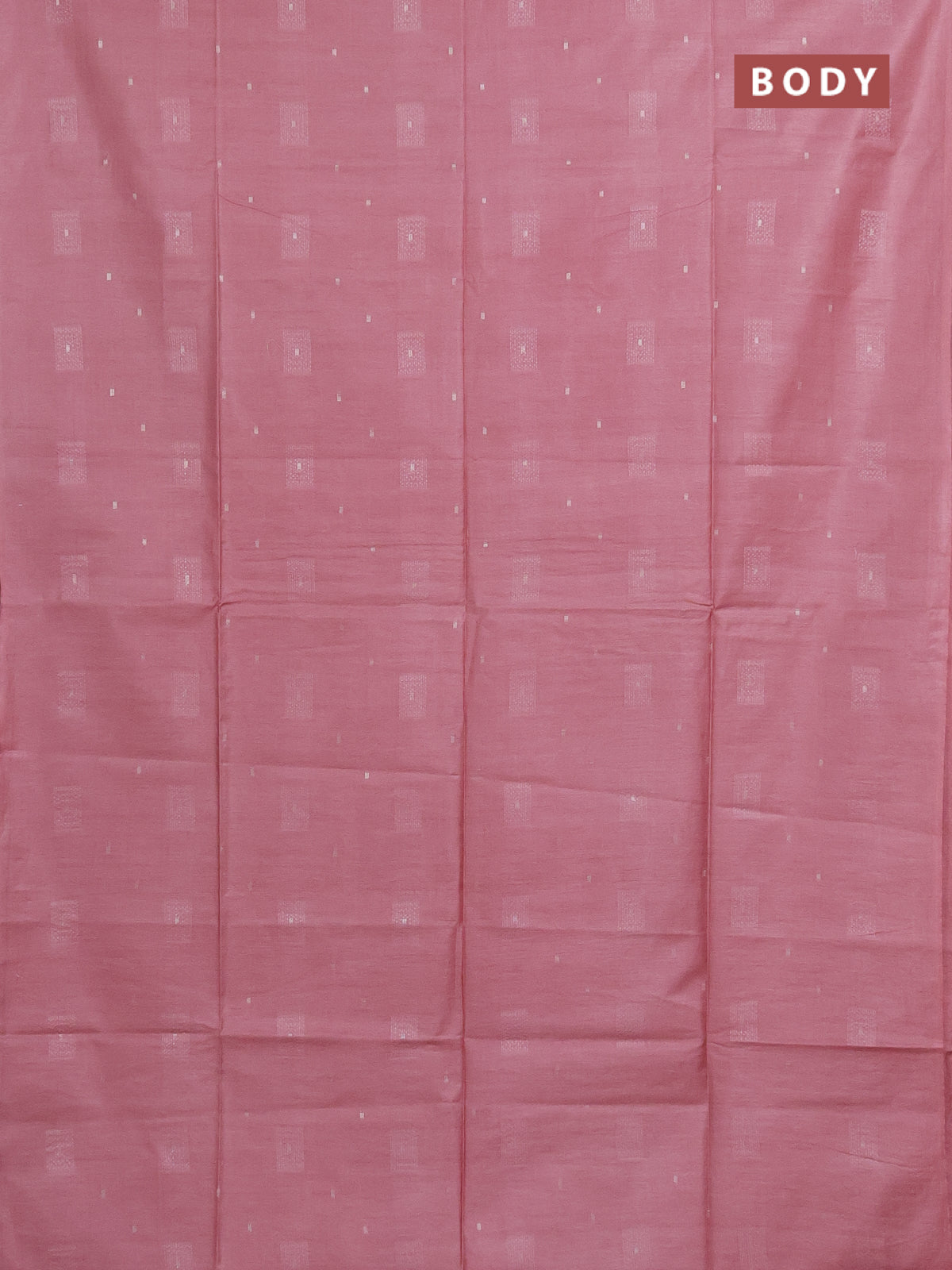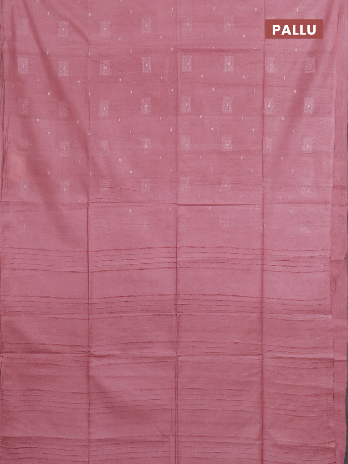 Semi bamboo saree peach pink with woven buttas in borderless style
