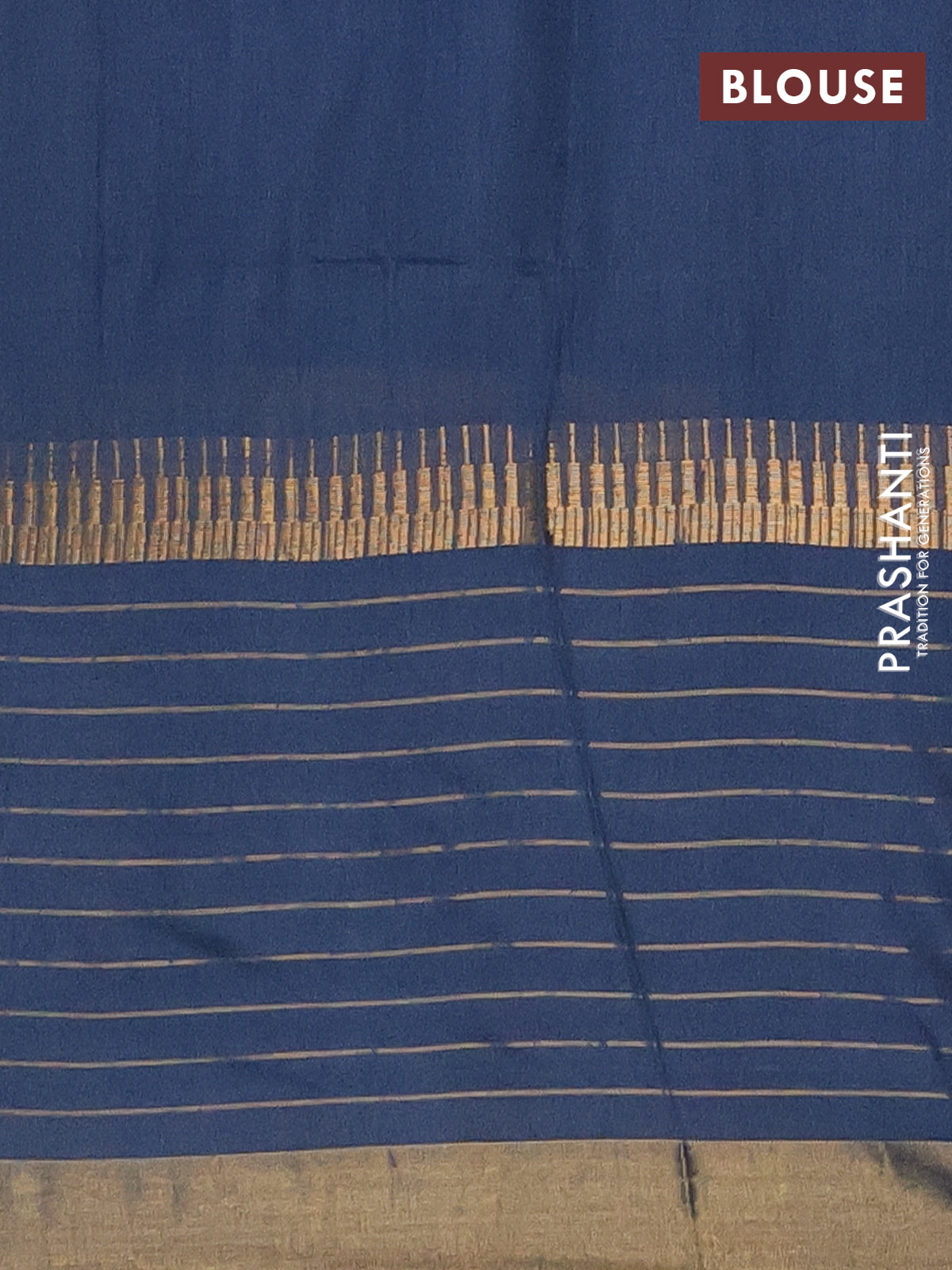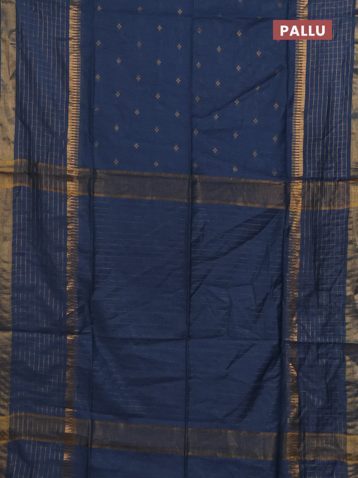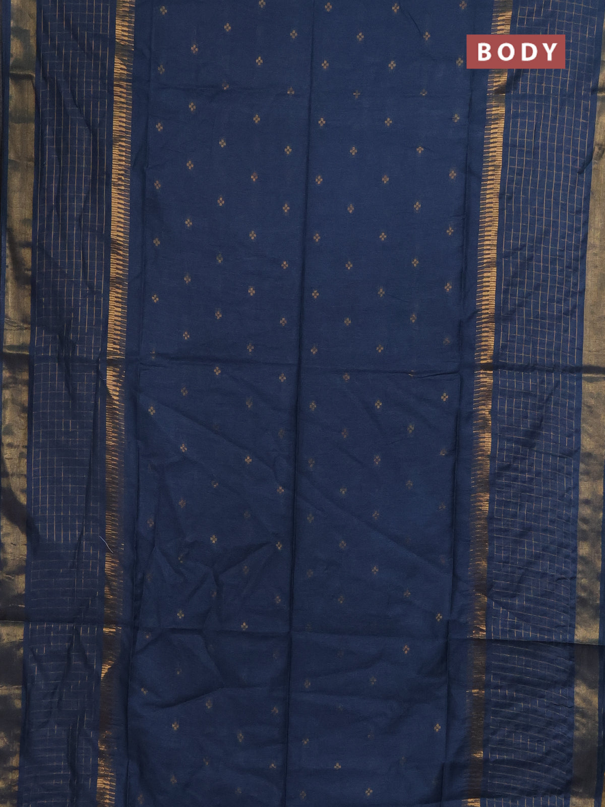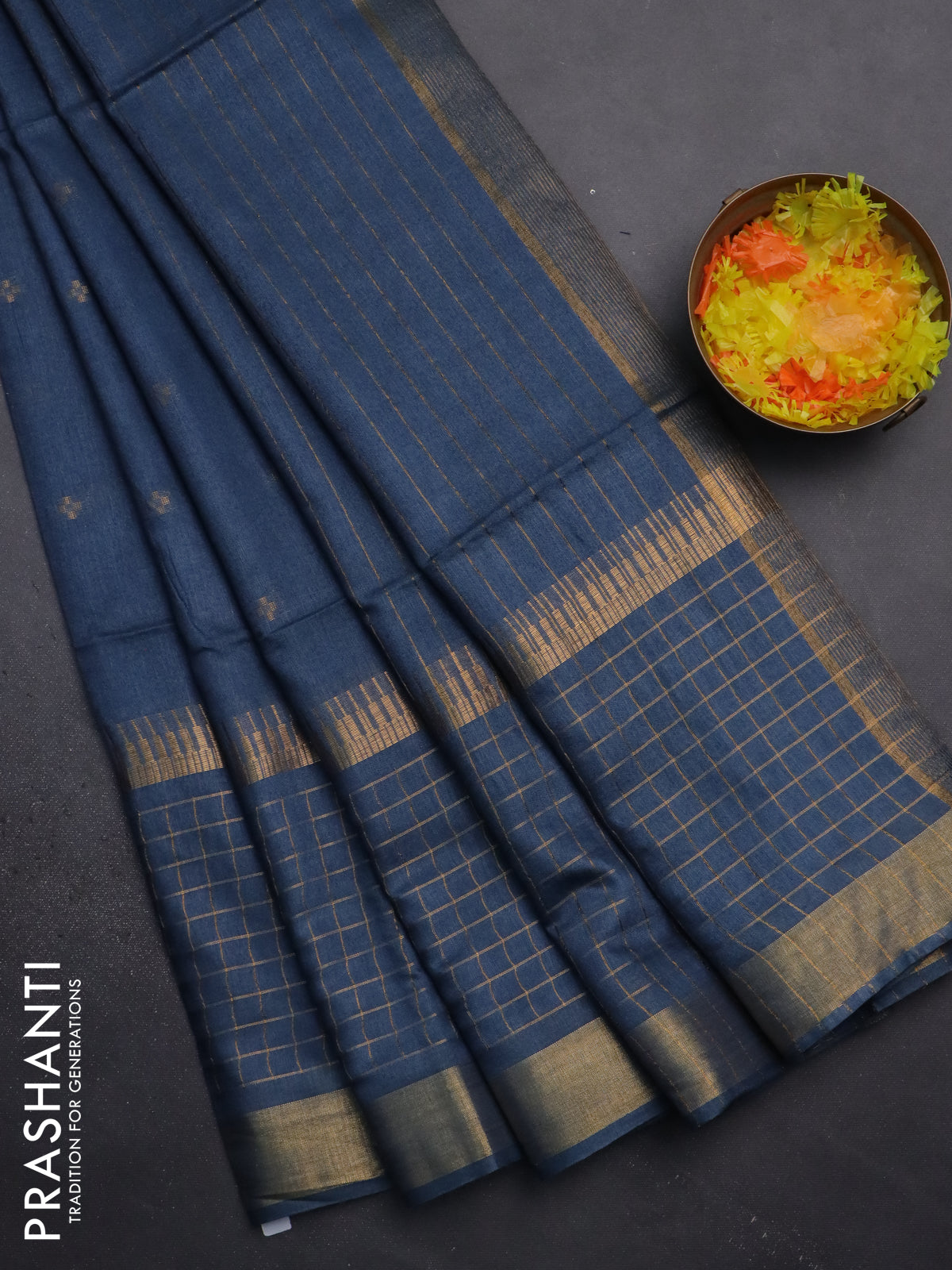 Semi bamboo saree peacock blue with zari woven buttas and long zari checked border