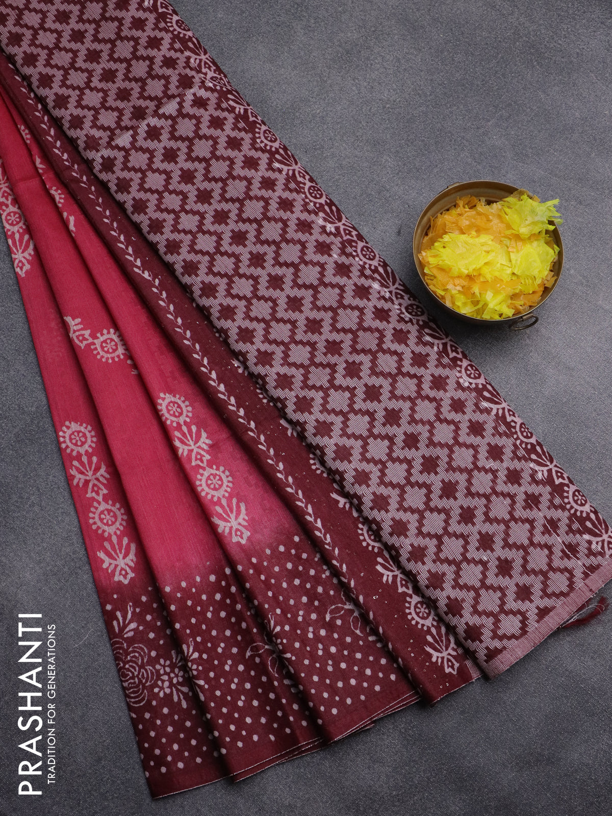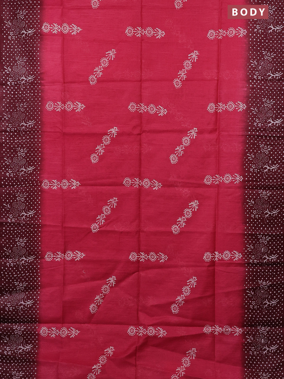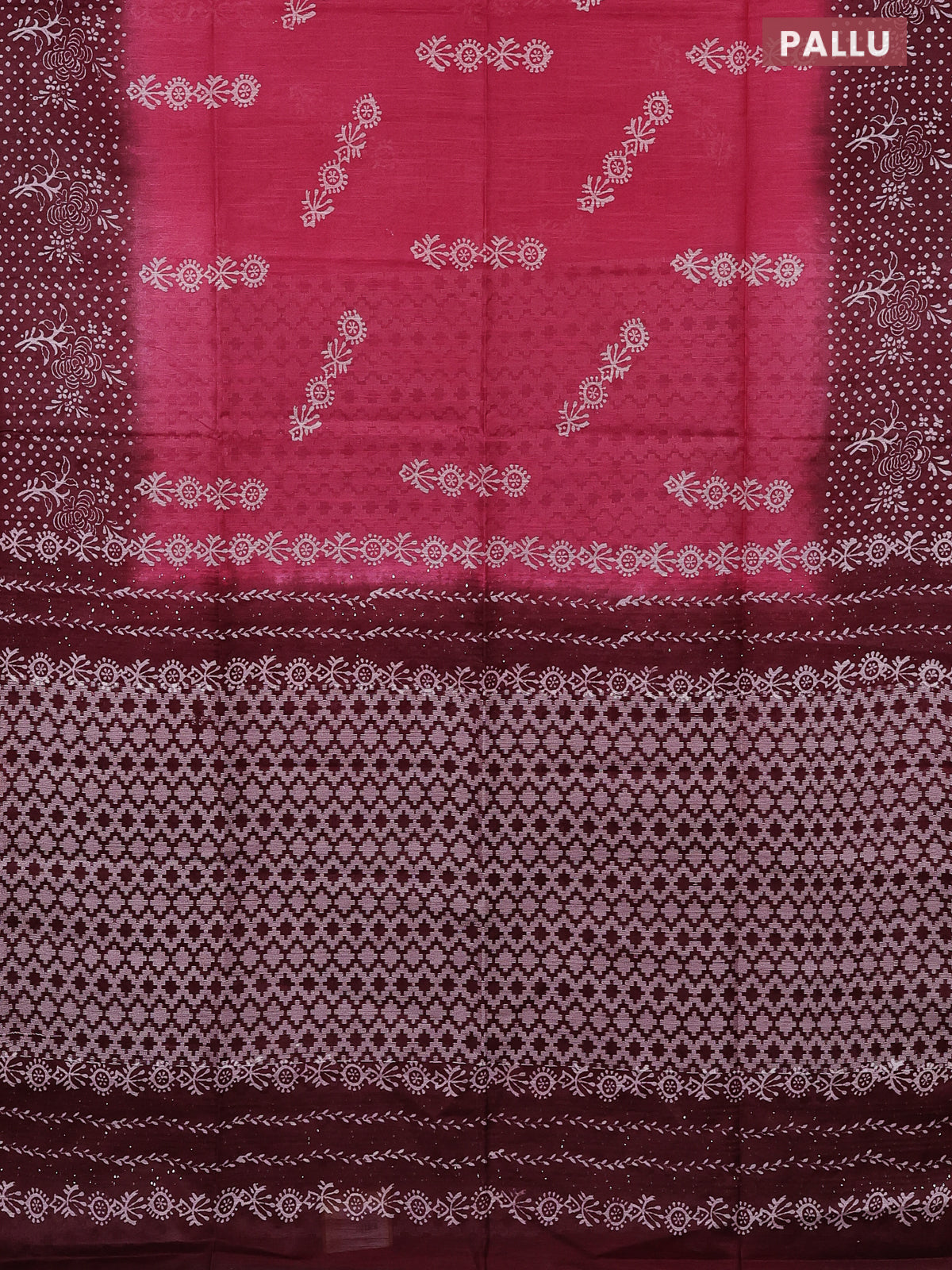 Semi bamboo saree pink and maroon with allover thread weaves & prints and printed border