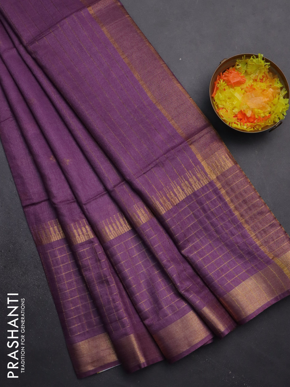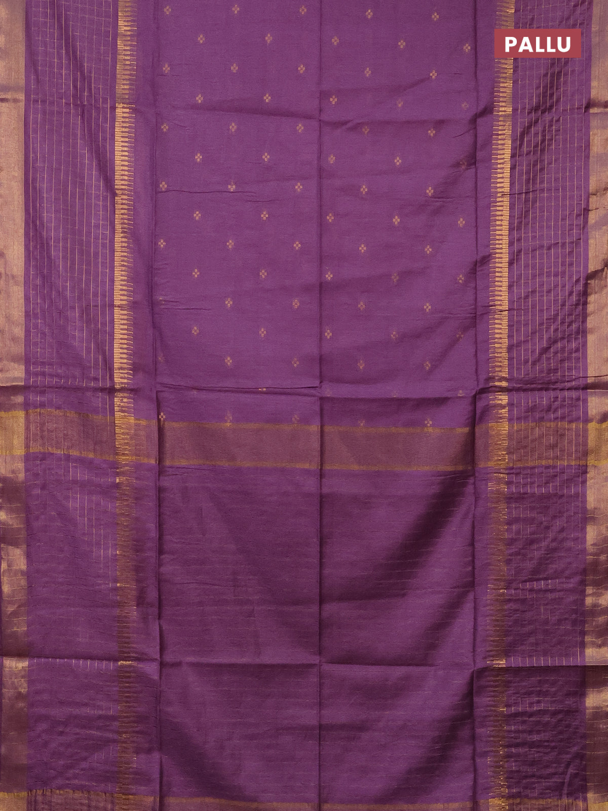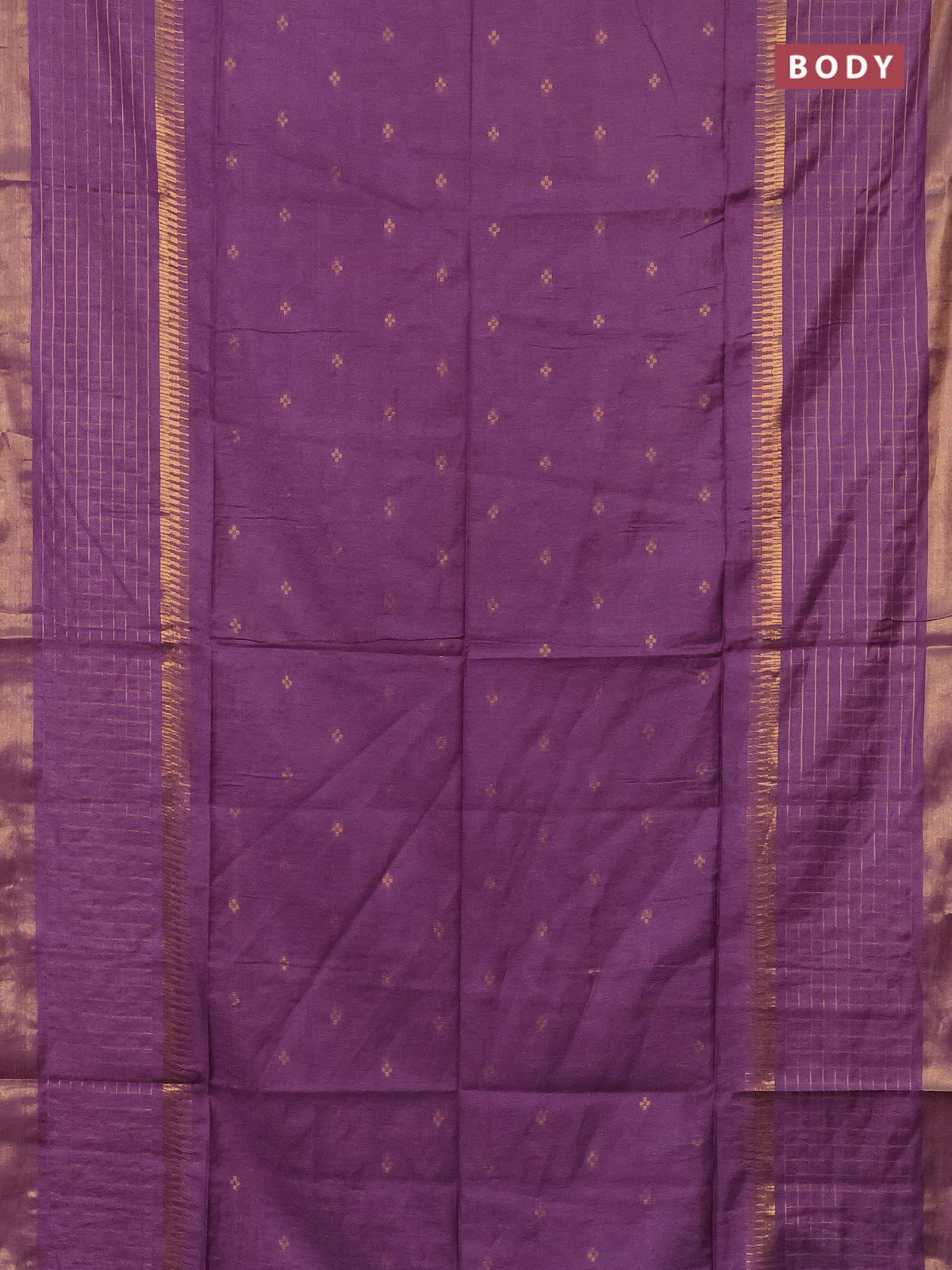 Semi bamboo saree purple with zari woven buttas and long zari checked border