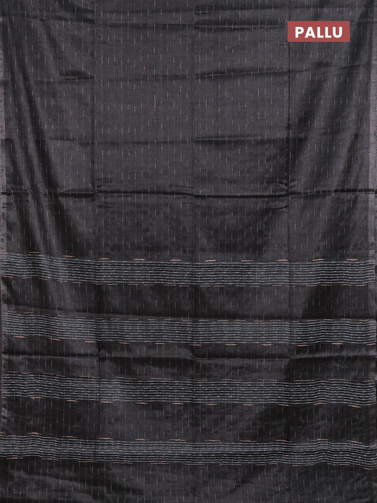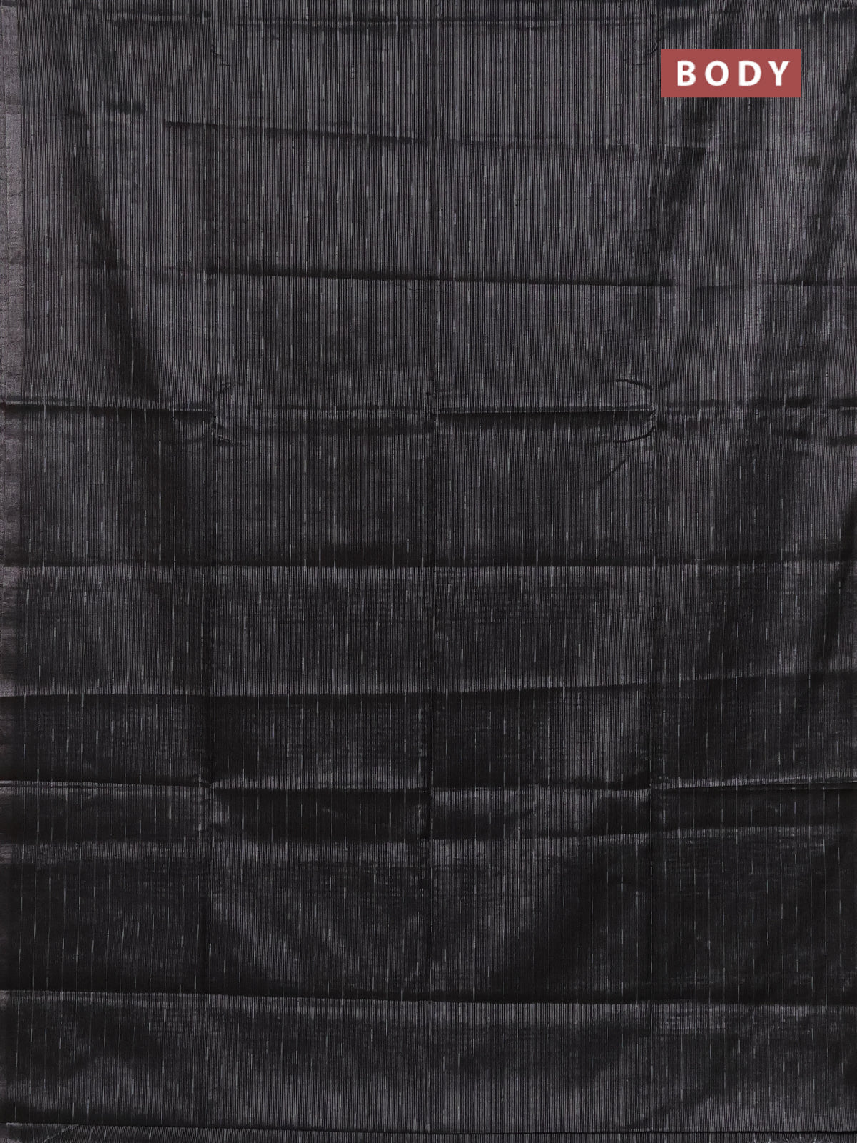Semi bamboo tissue saree black with allover thread weaves in borderless style