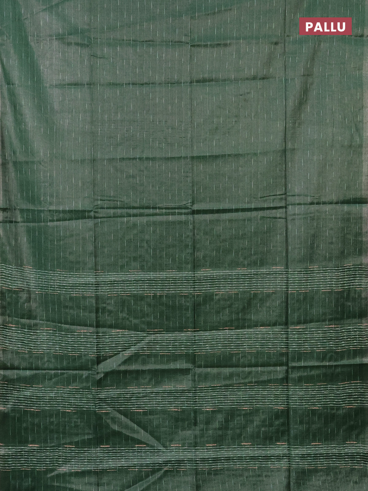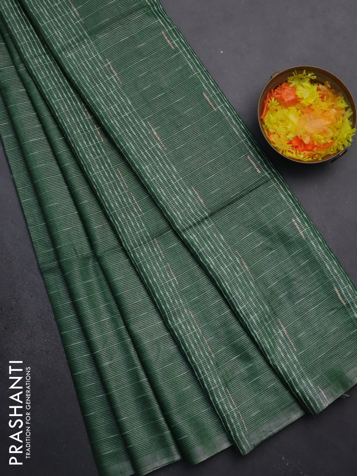 Semi bamboo tissue saree green with allover thread weaves in borderless style