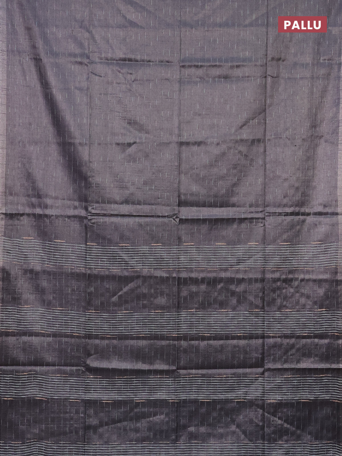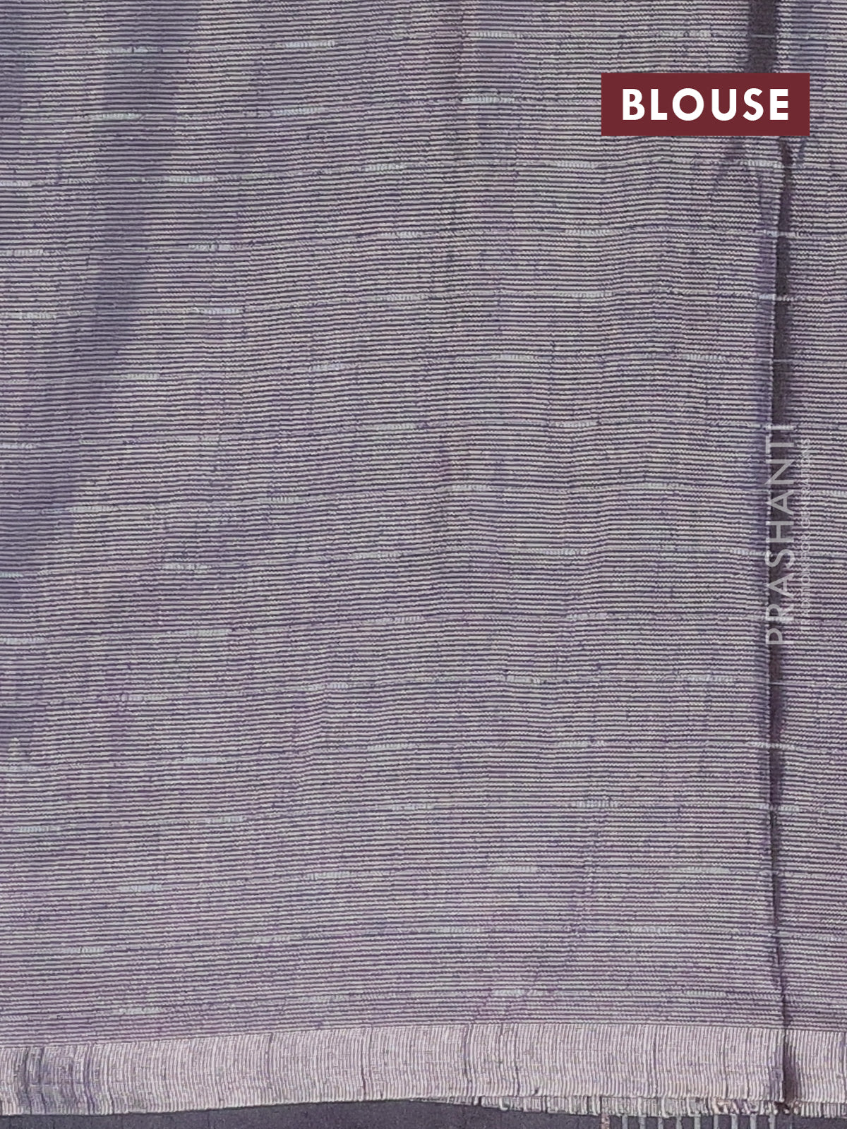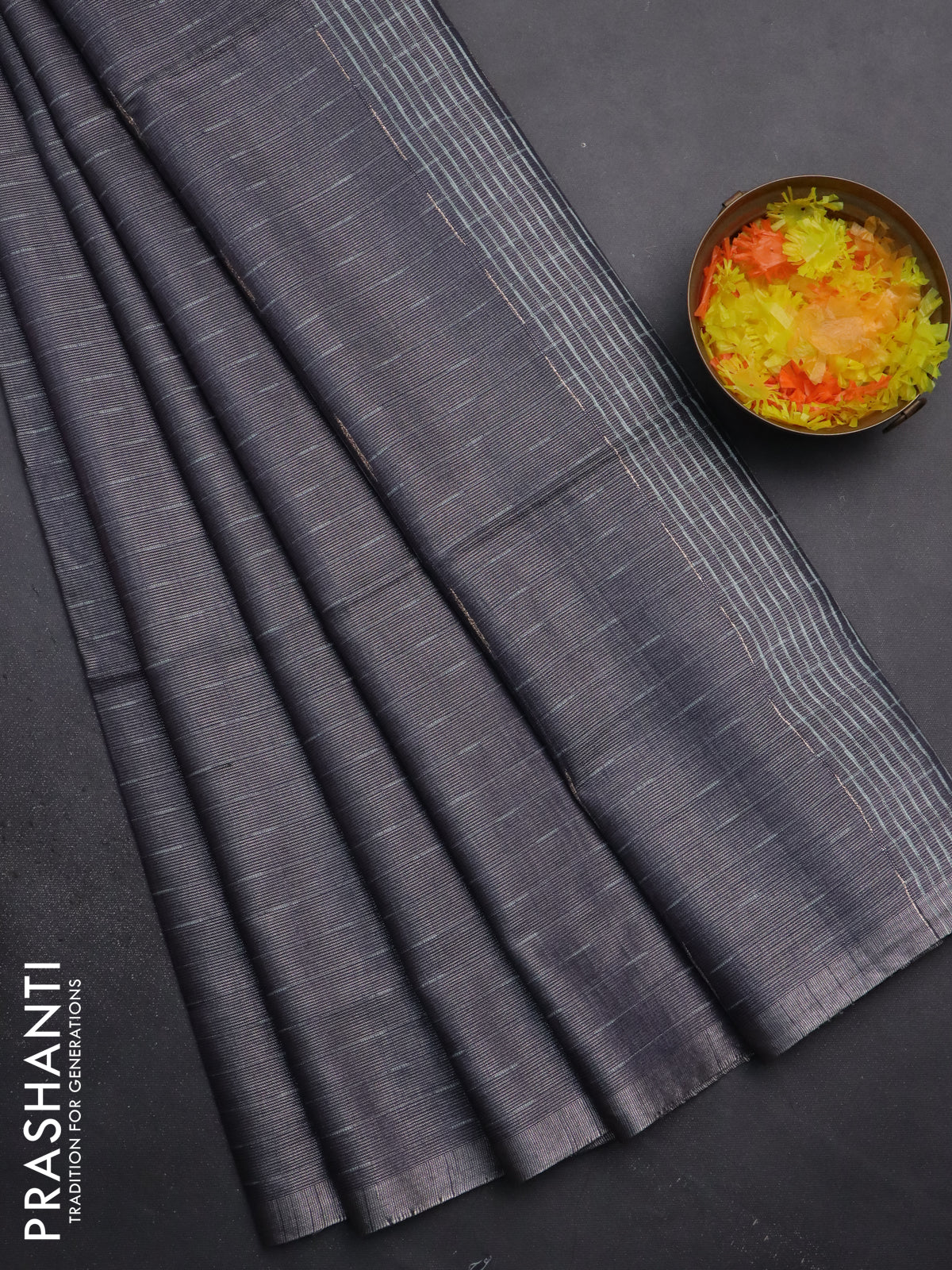 Semi bamboo tissue saree grey with allover thread weaves in borderless style