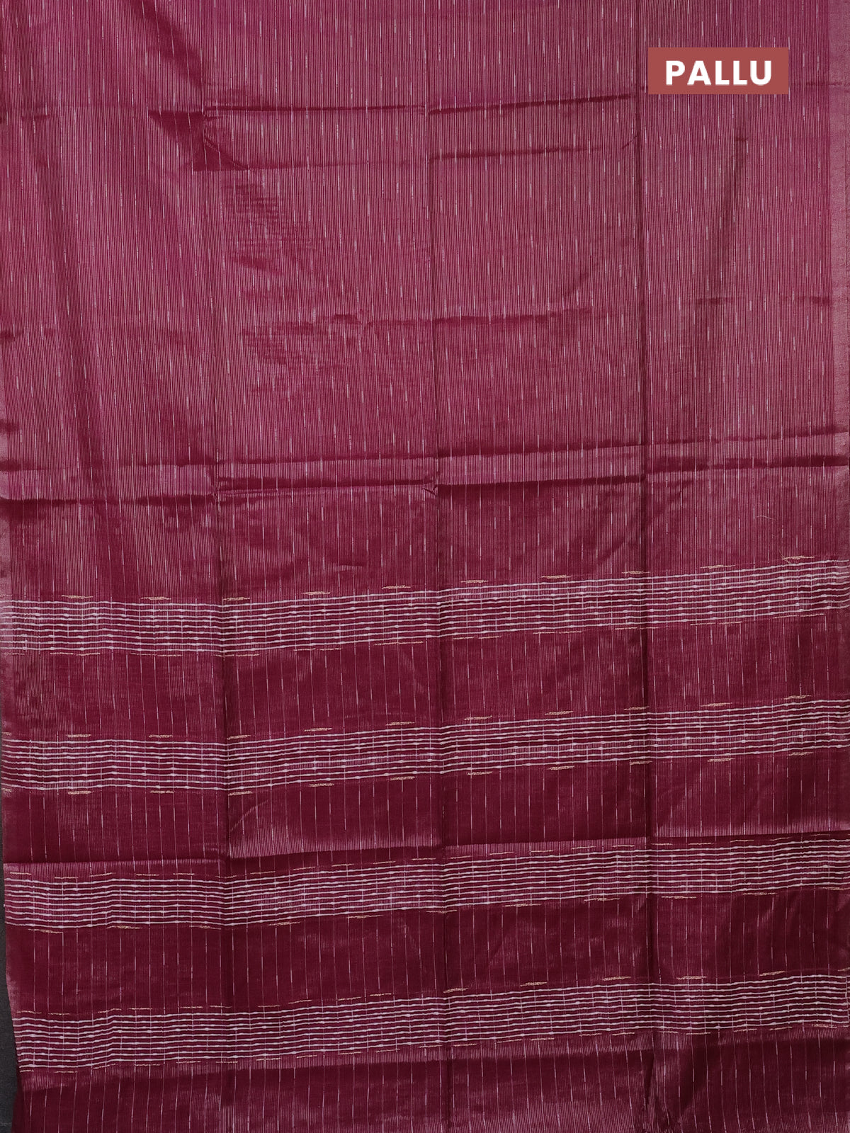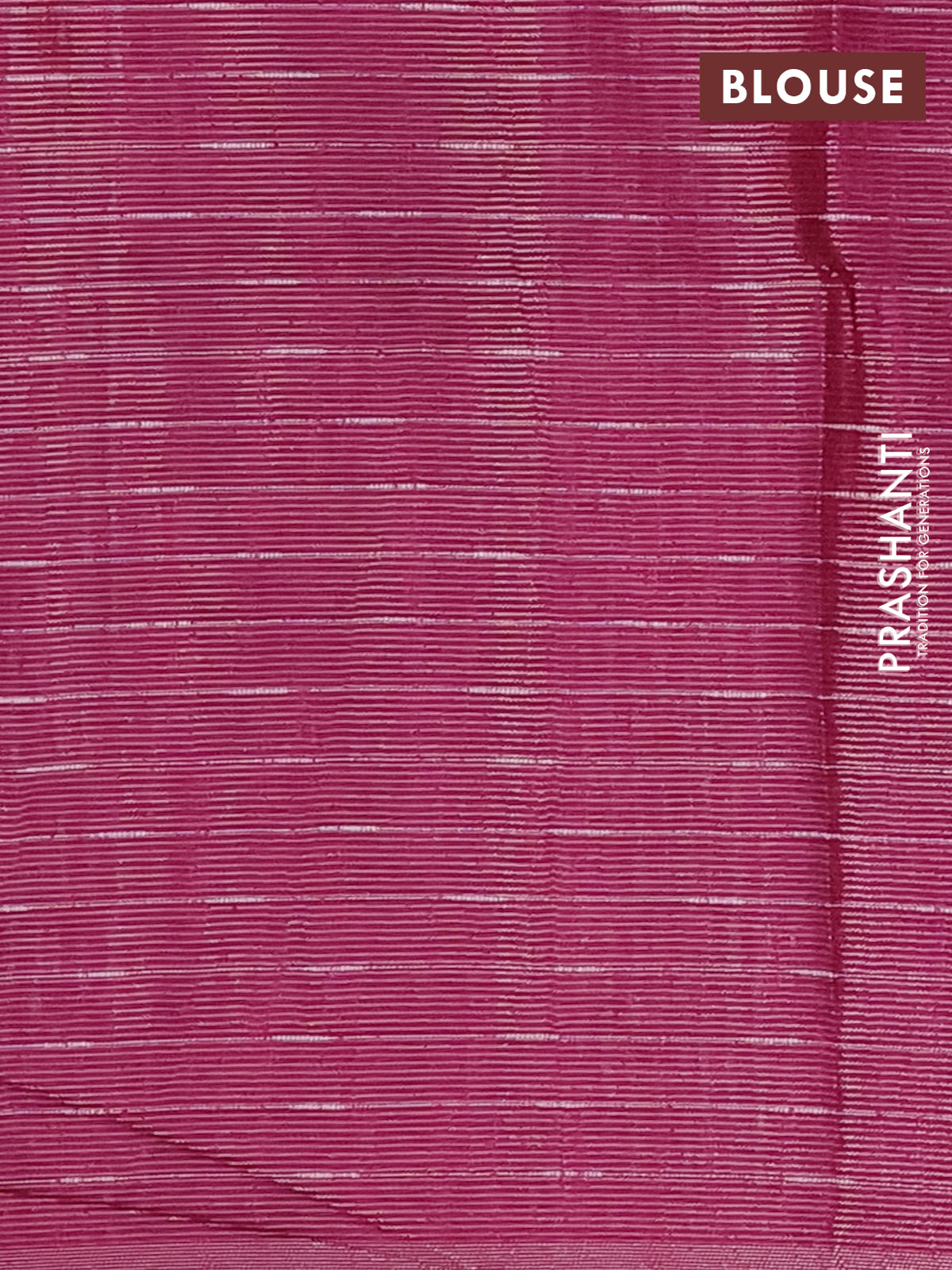 Semi bamboo tissue saree magenta pink with allover thread weaves in borderless style