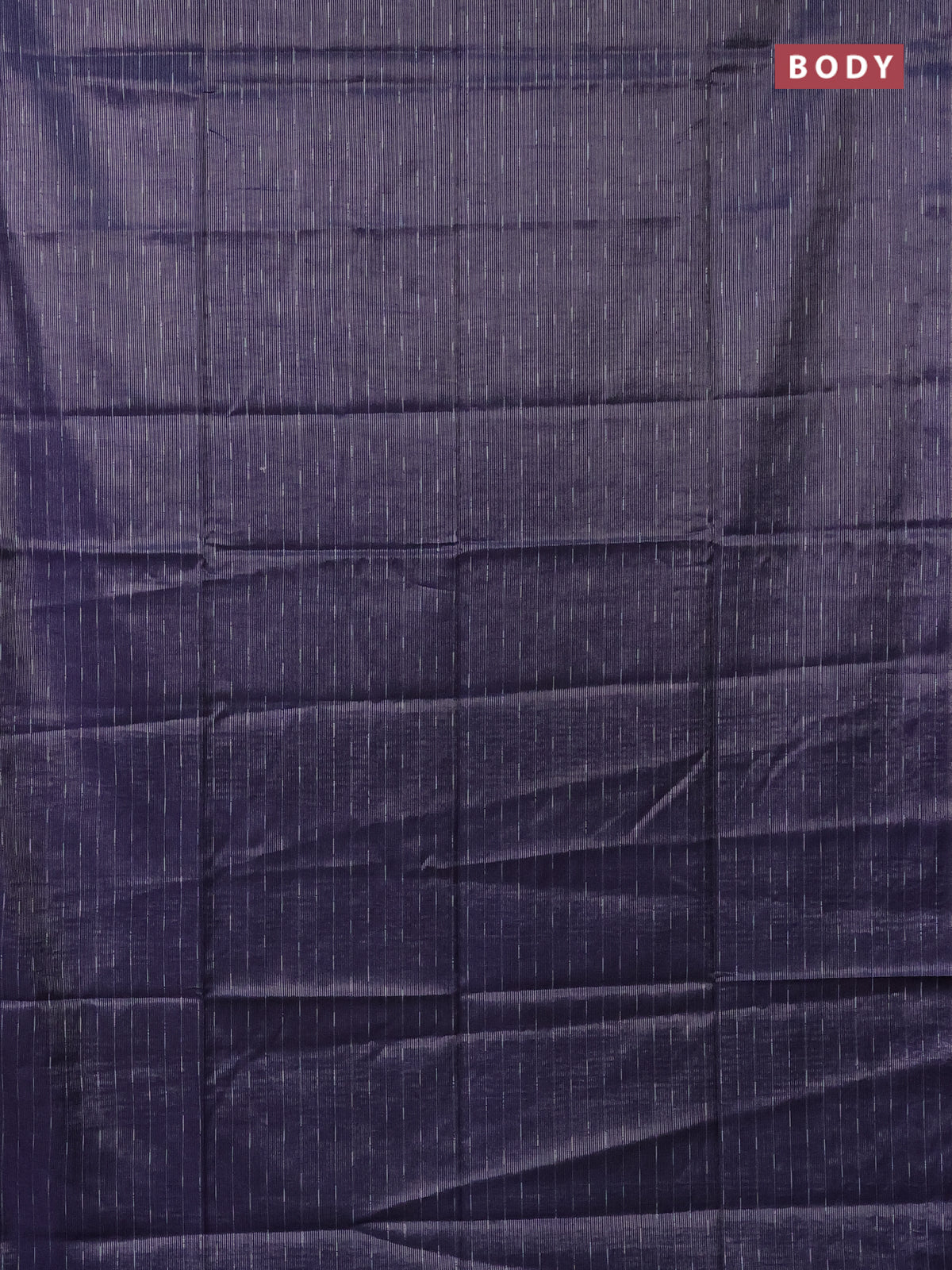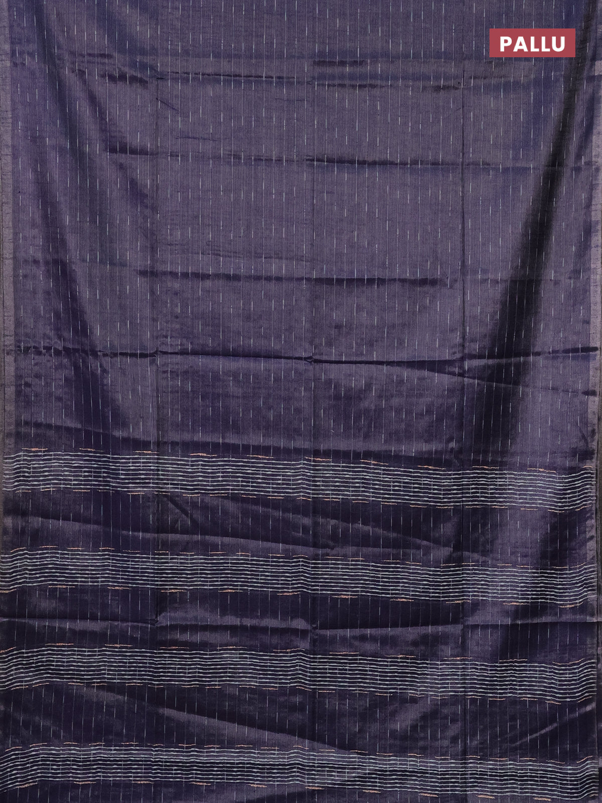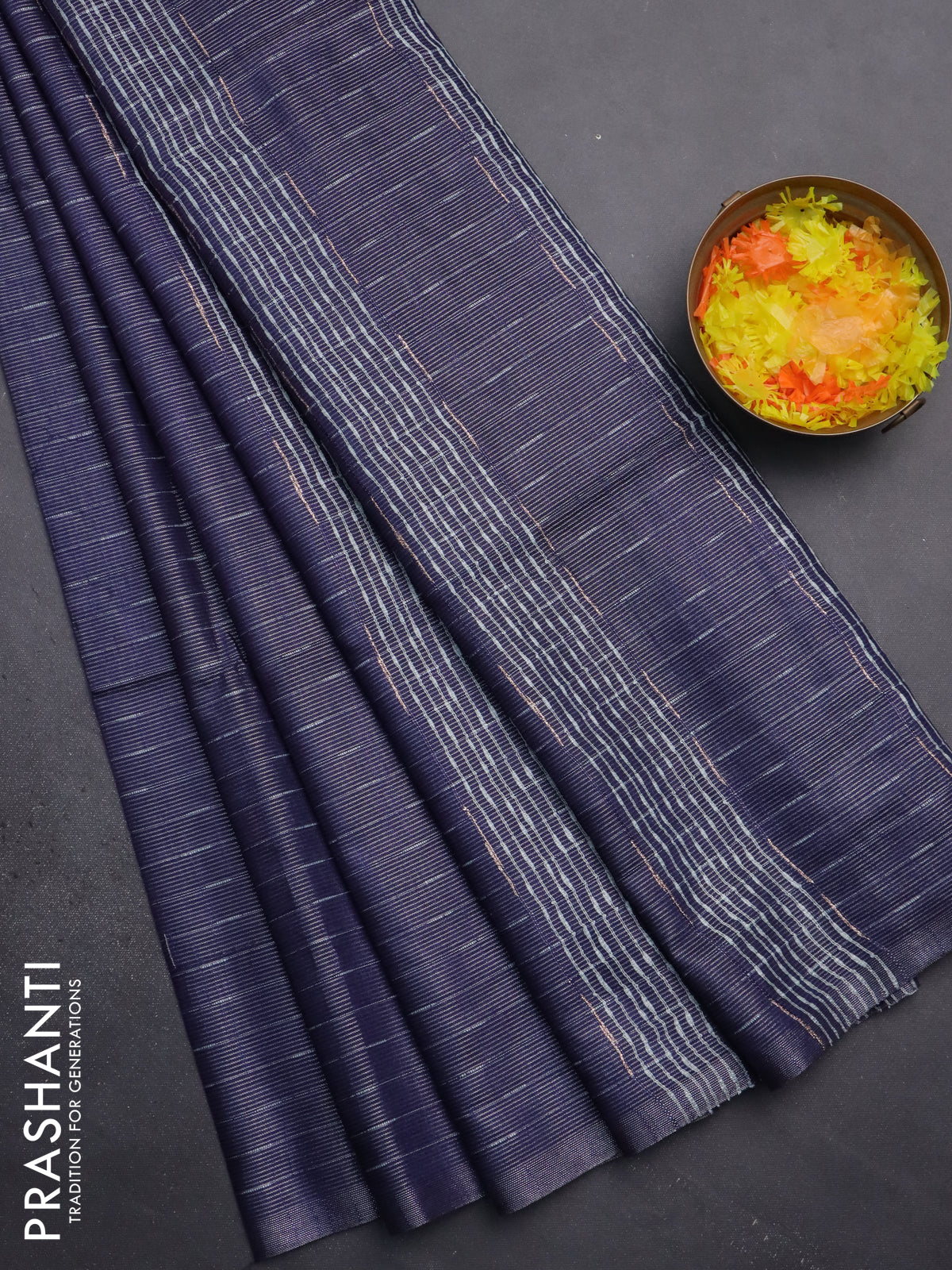 Semi bamboo tissue saree navy blue with allover thread weaves in borderless style