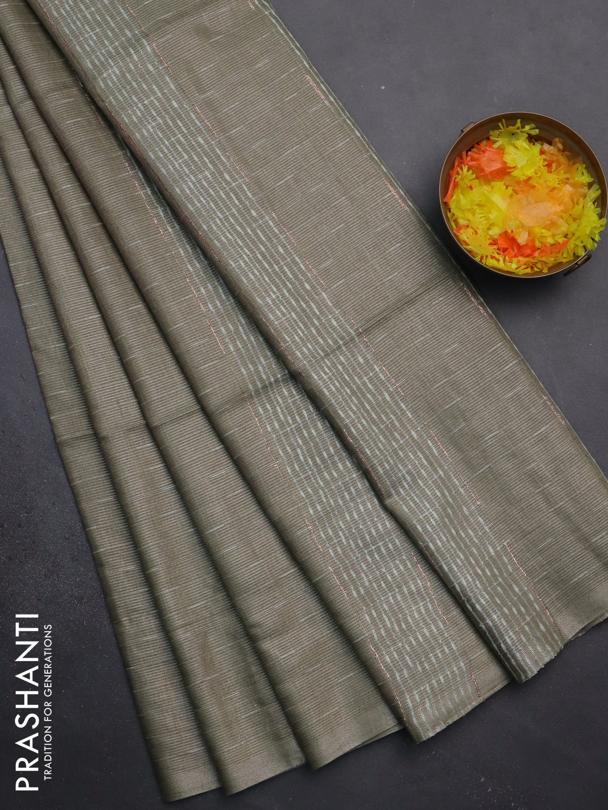 Semi bamboo tissue saree pastel green with allover thread weaves in borderless style