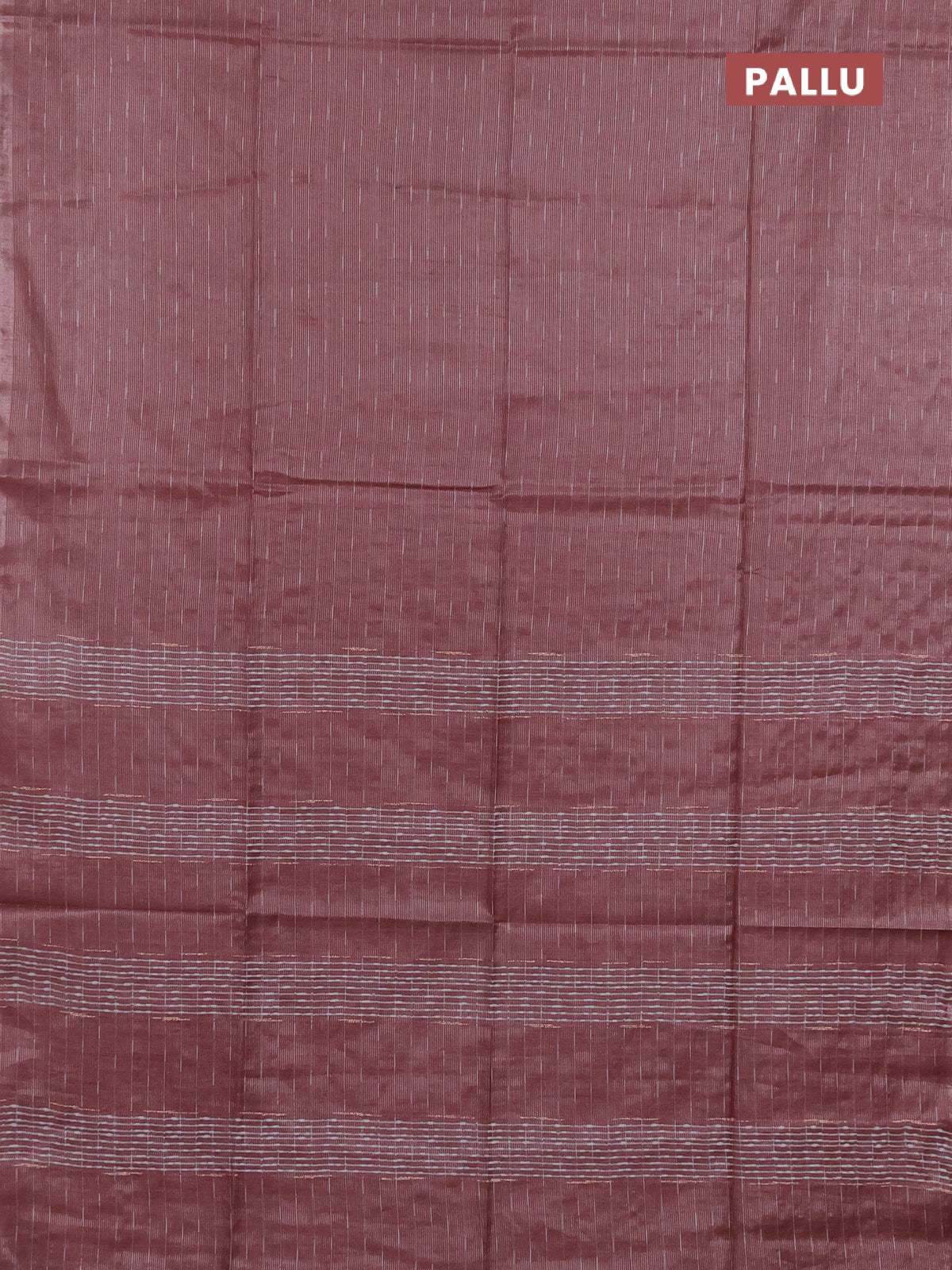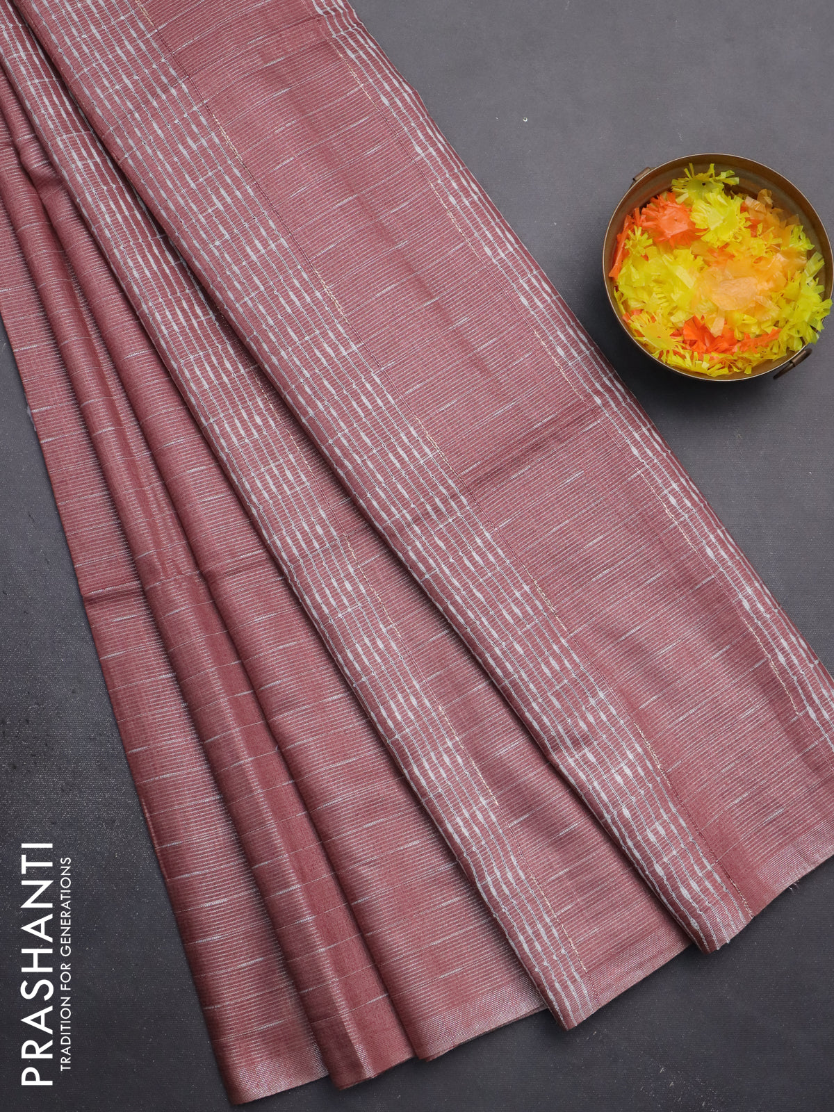 Semi bamboo tissue saree peach shade with allover thread weaves in borderless style
