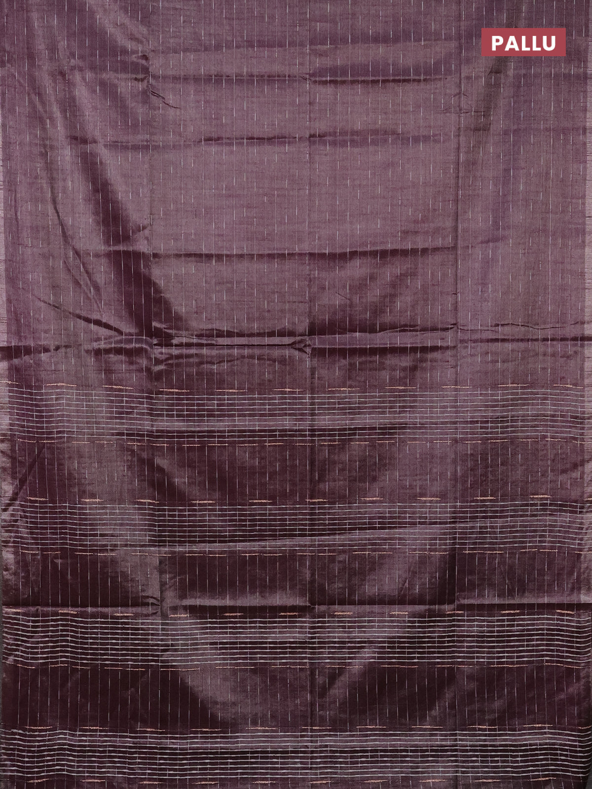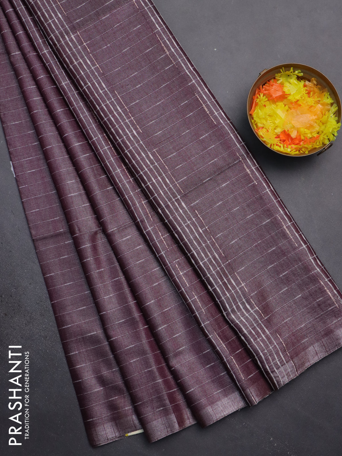 Semi bamboo tissue saree wine shade with allover thread weaves in borderless style