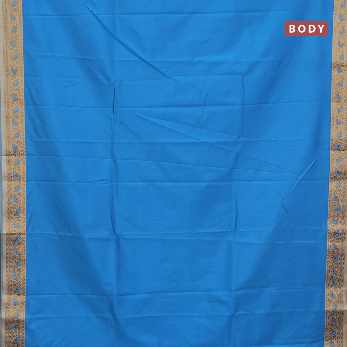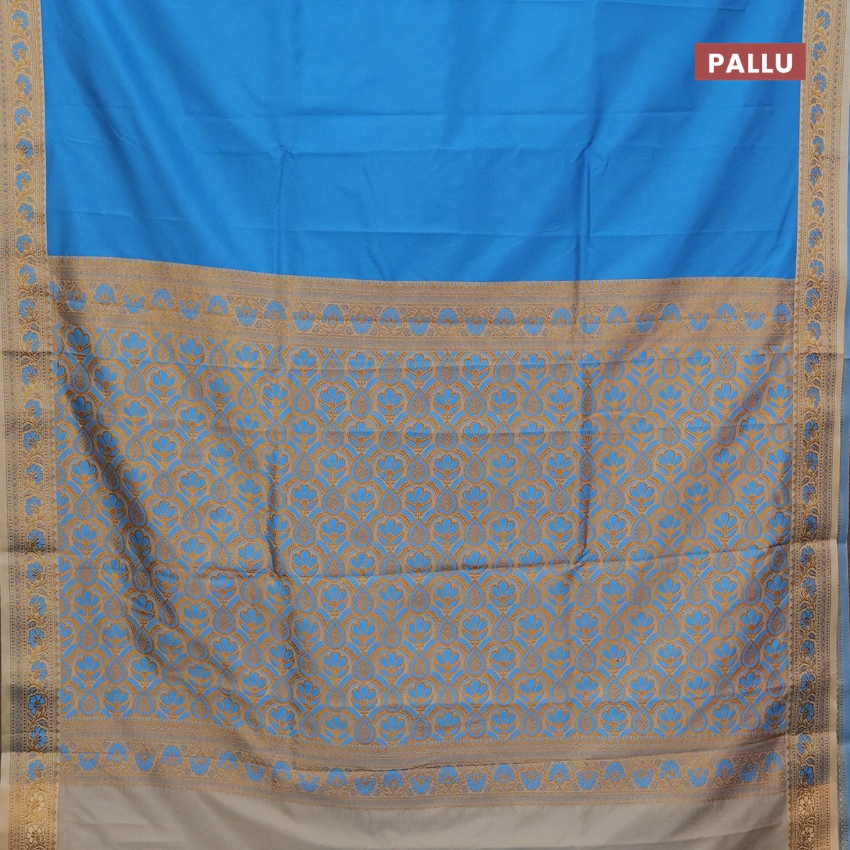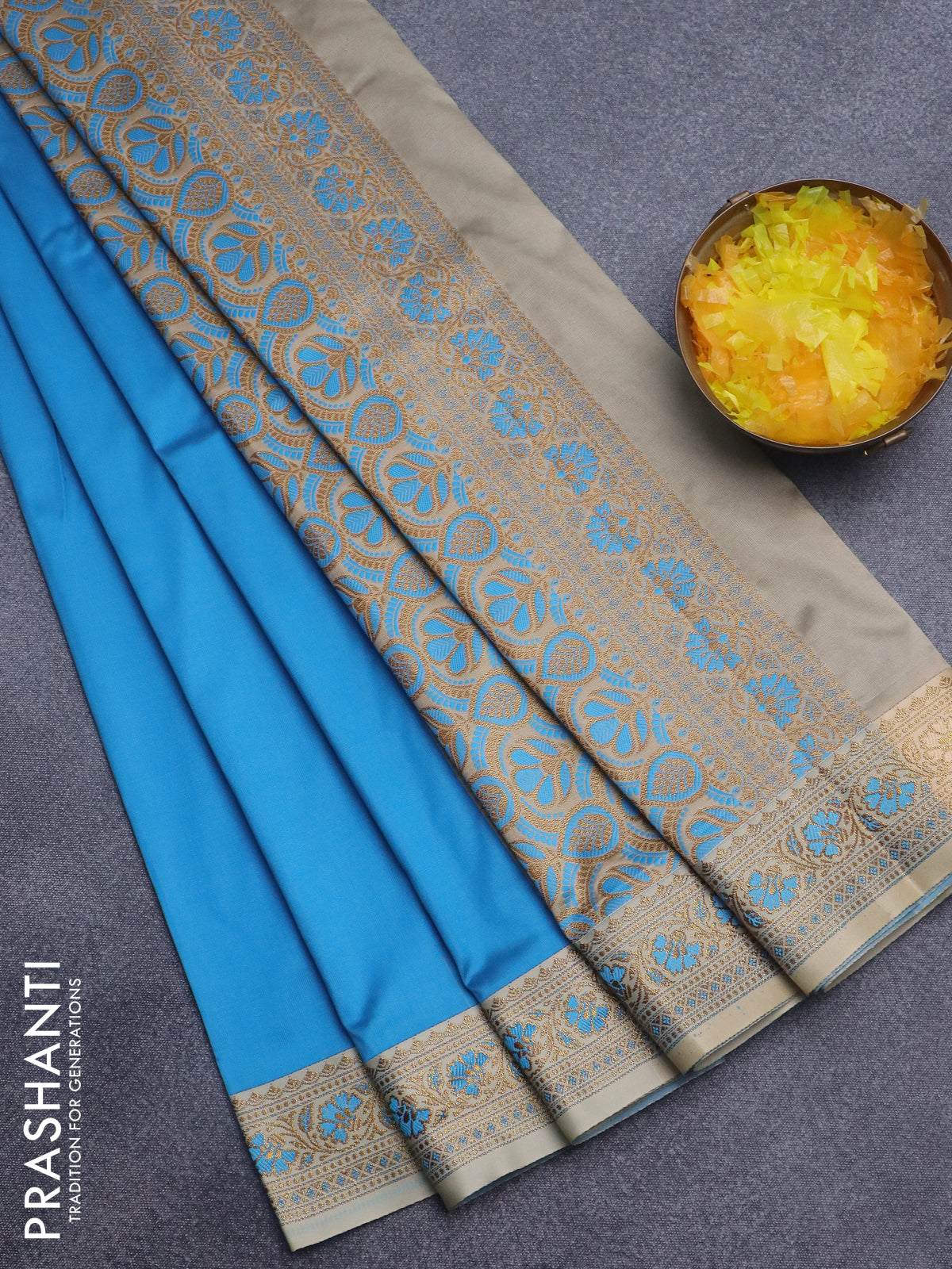 Semi banarasi katan saree cs blue and cream with plain body and zari woven border