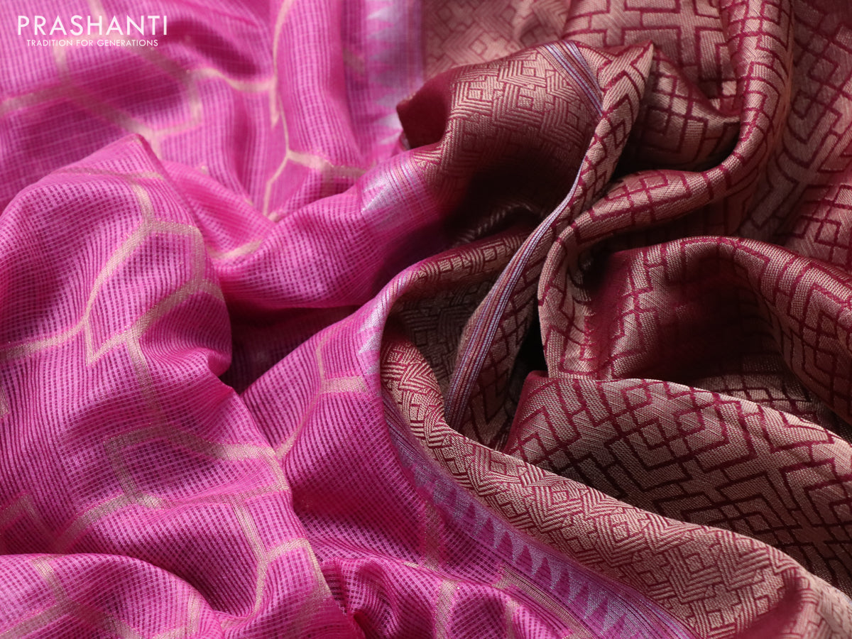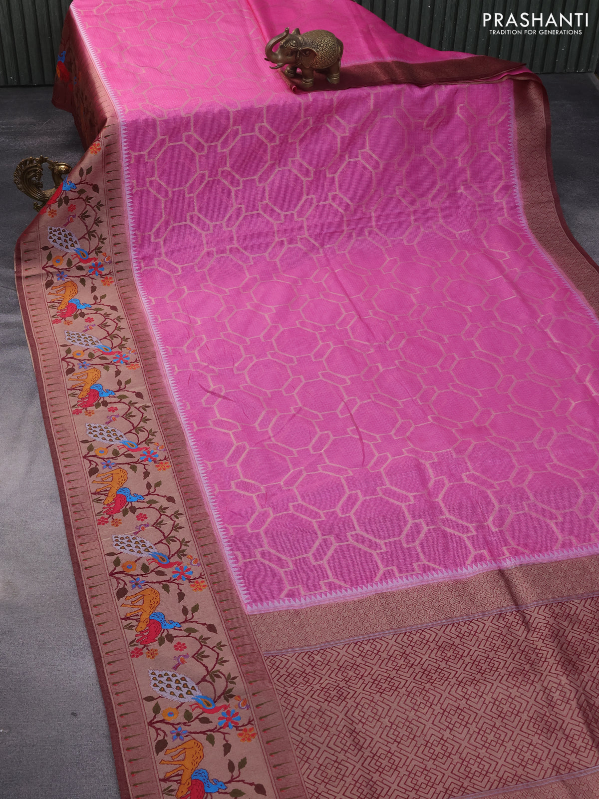 Semi banarasi kota saree light pink and wine shade with allover zari weaves and zari woven paithani border