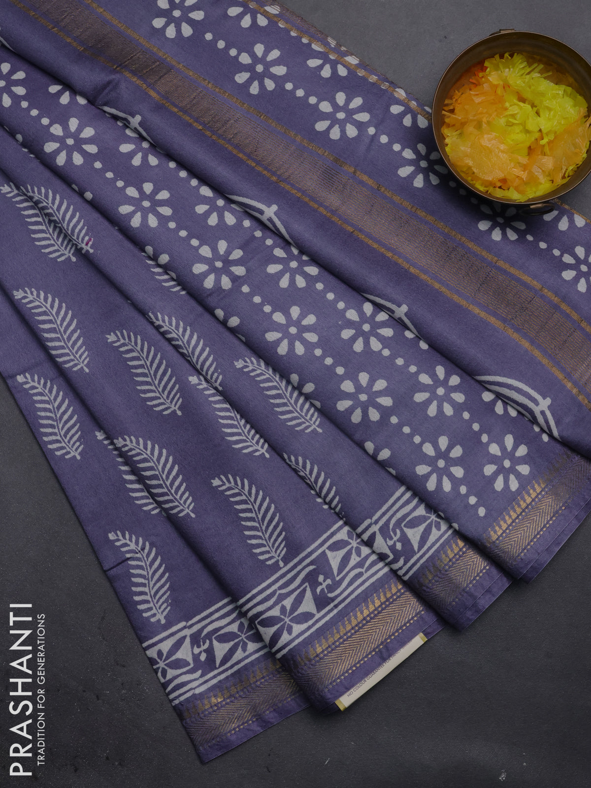 Semi bhagalpuri saree grey with allover prints and zari woven border
