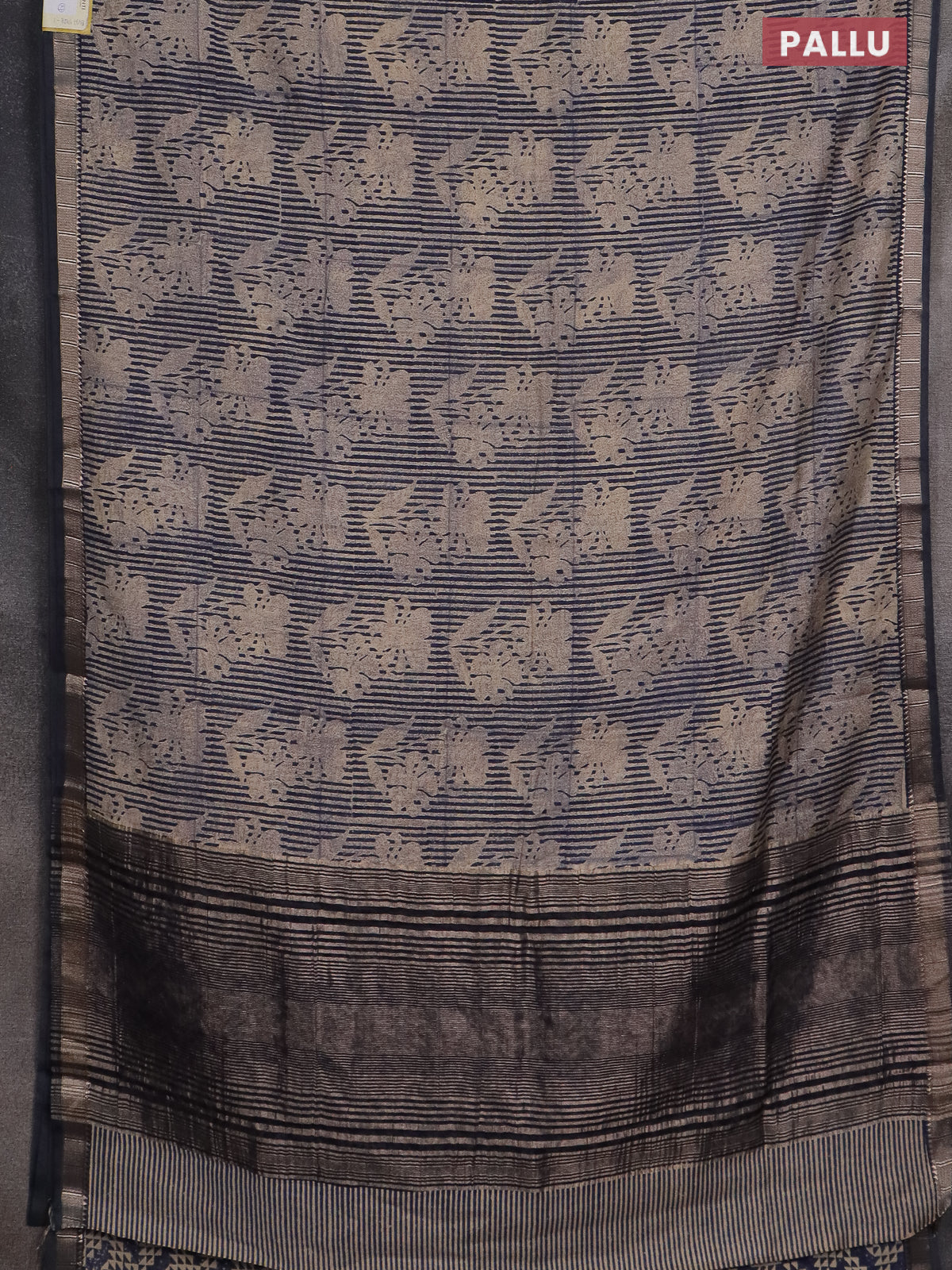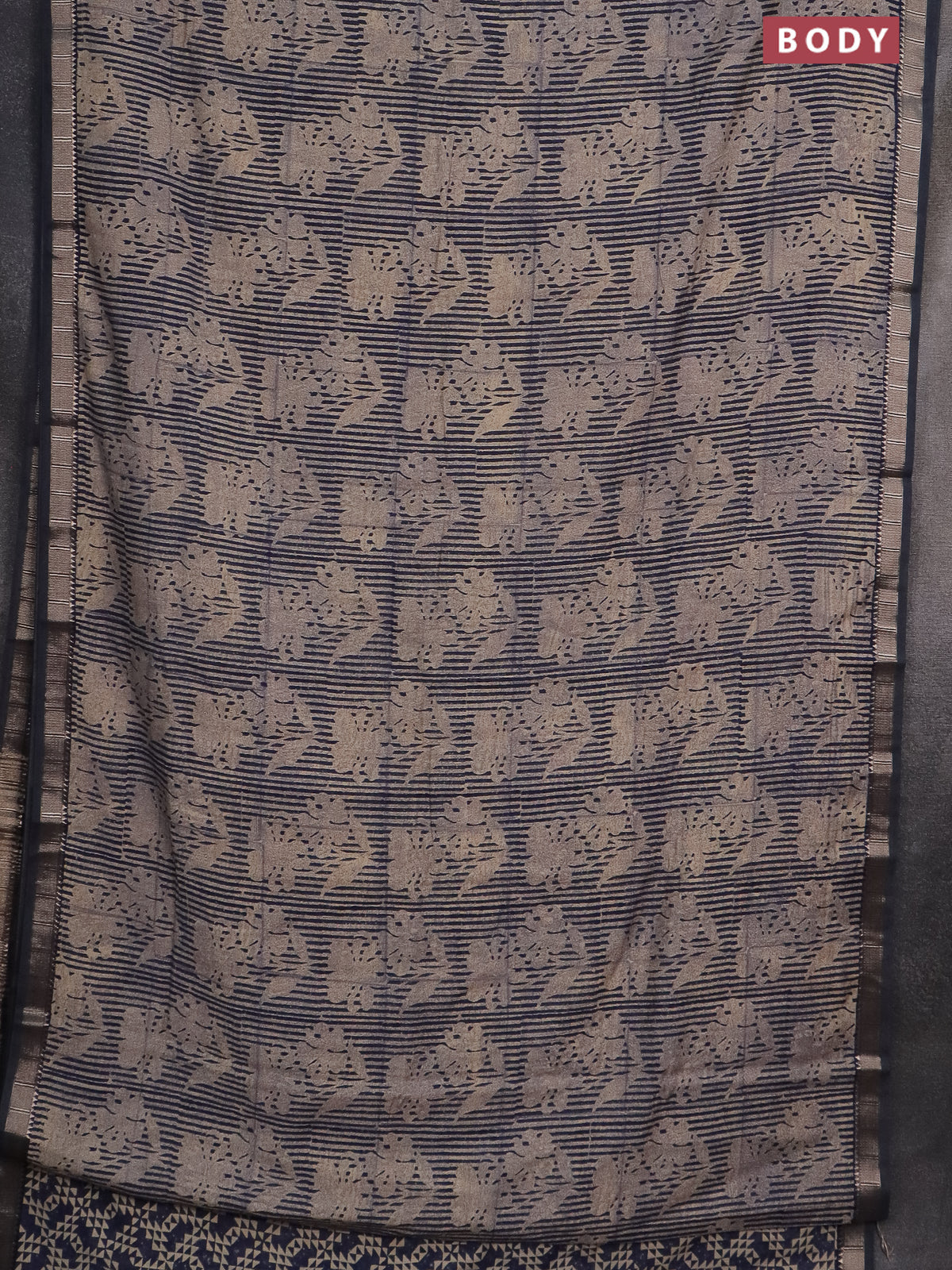 Semi chanderi saree beige and blue with allover floral prints and zari woven border