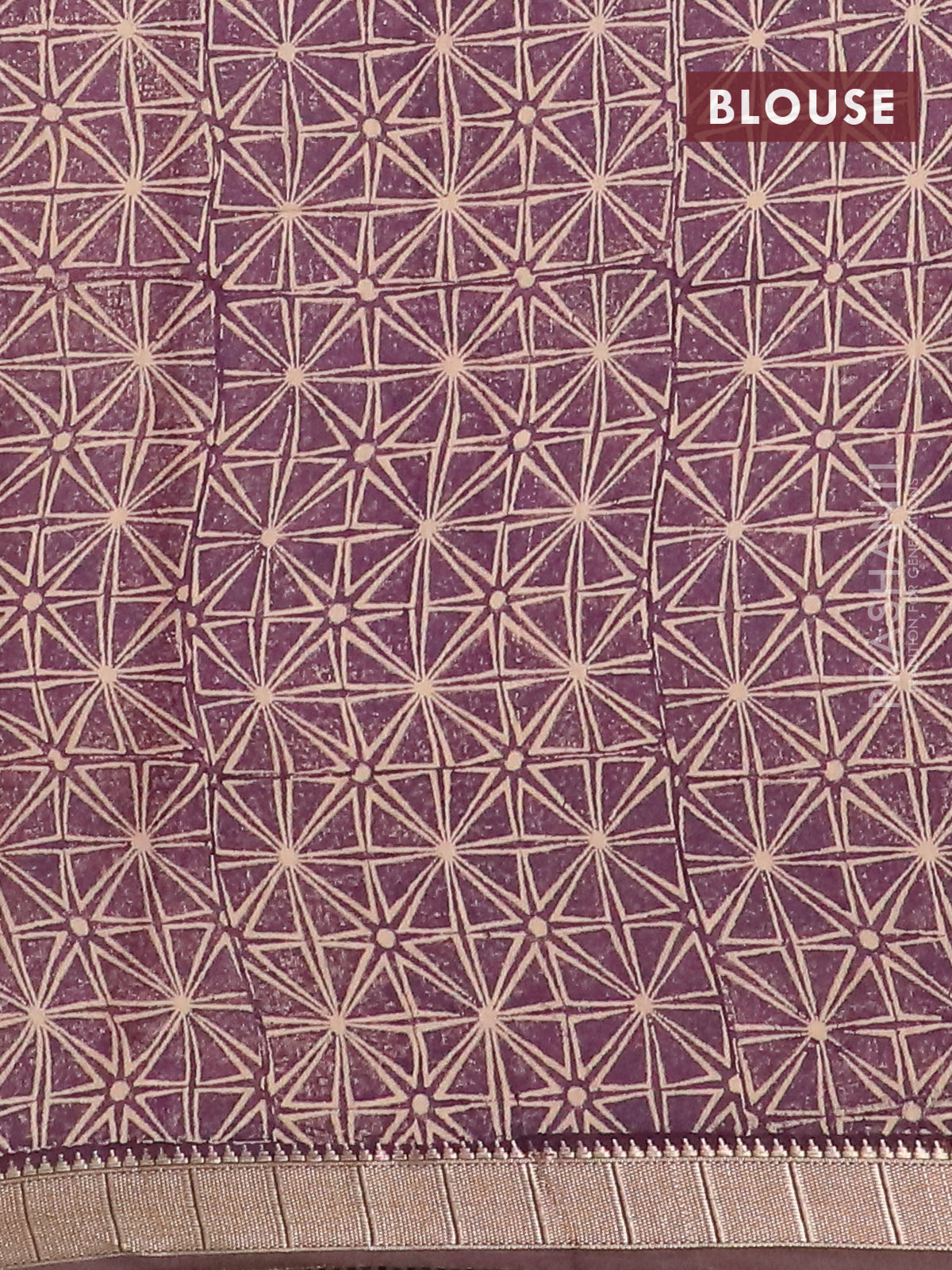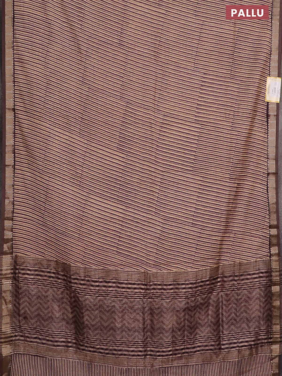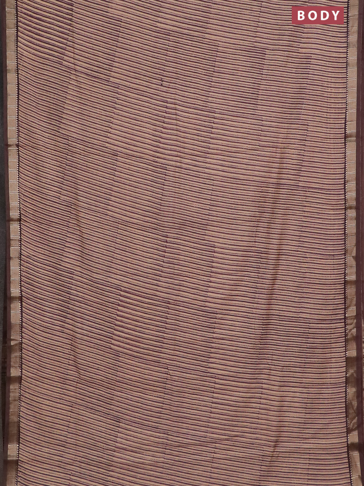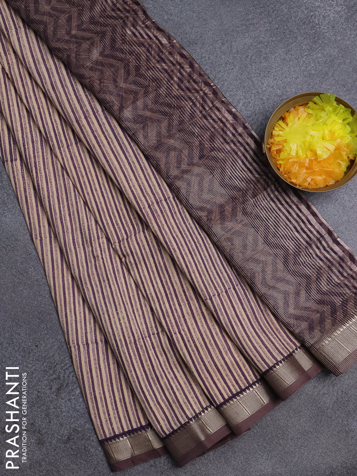 Semi chanderi saree beige and pastel purple with allover stripe pattern and zari woven border