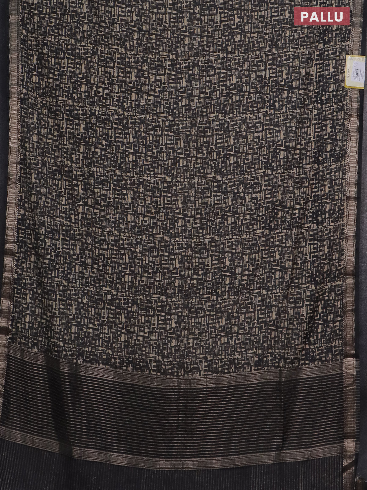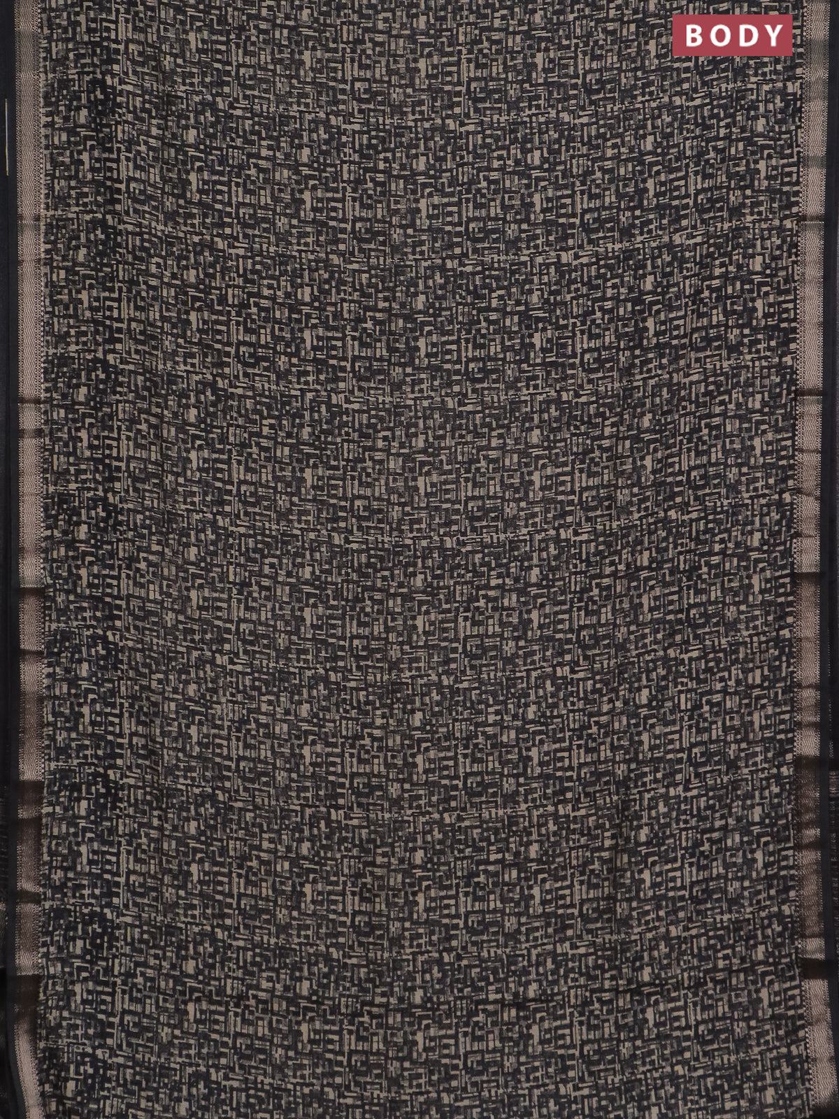 Semi chanderi saree black and sandal with allover prints and zari woven border