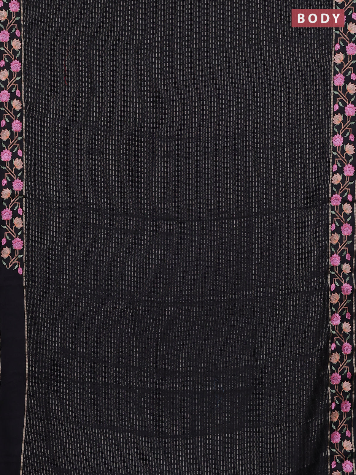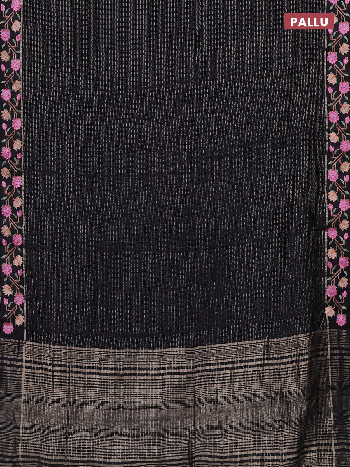 Semi chanderi saree black with allover zari weaves and floral embroidery border