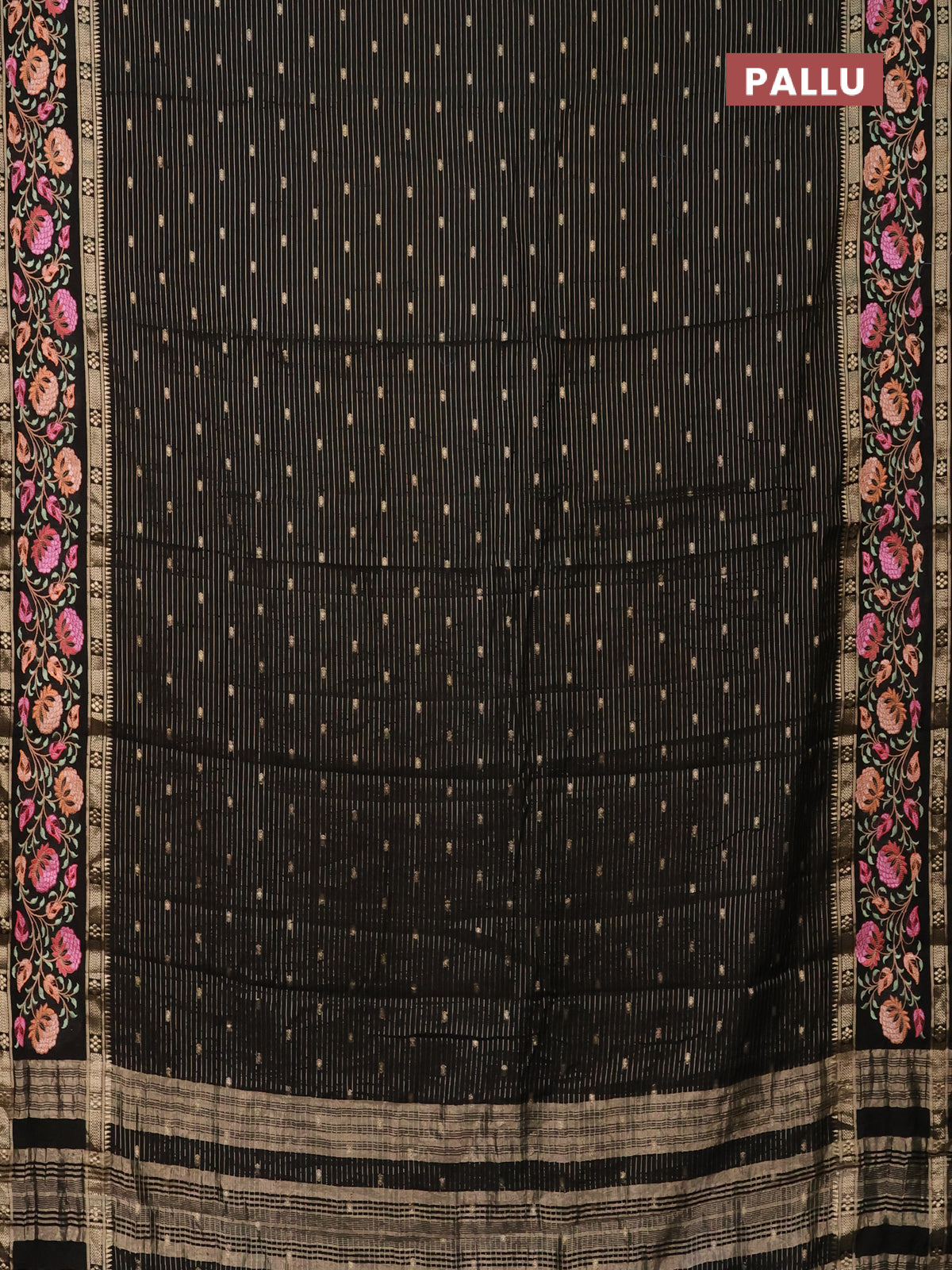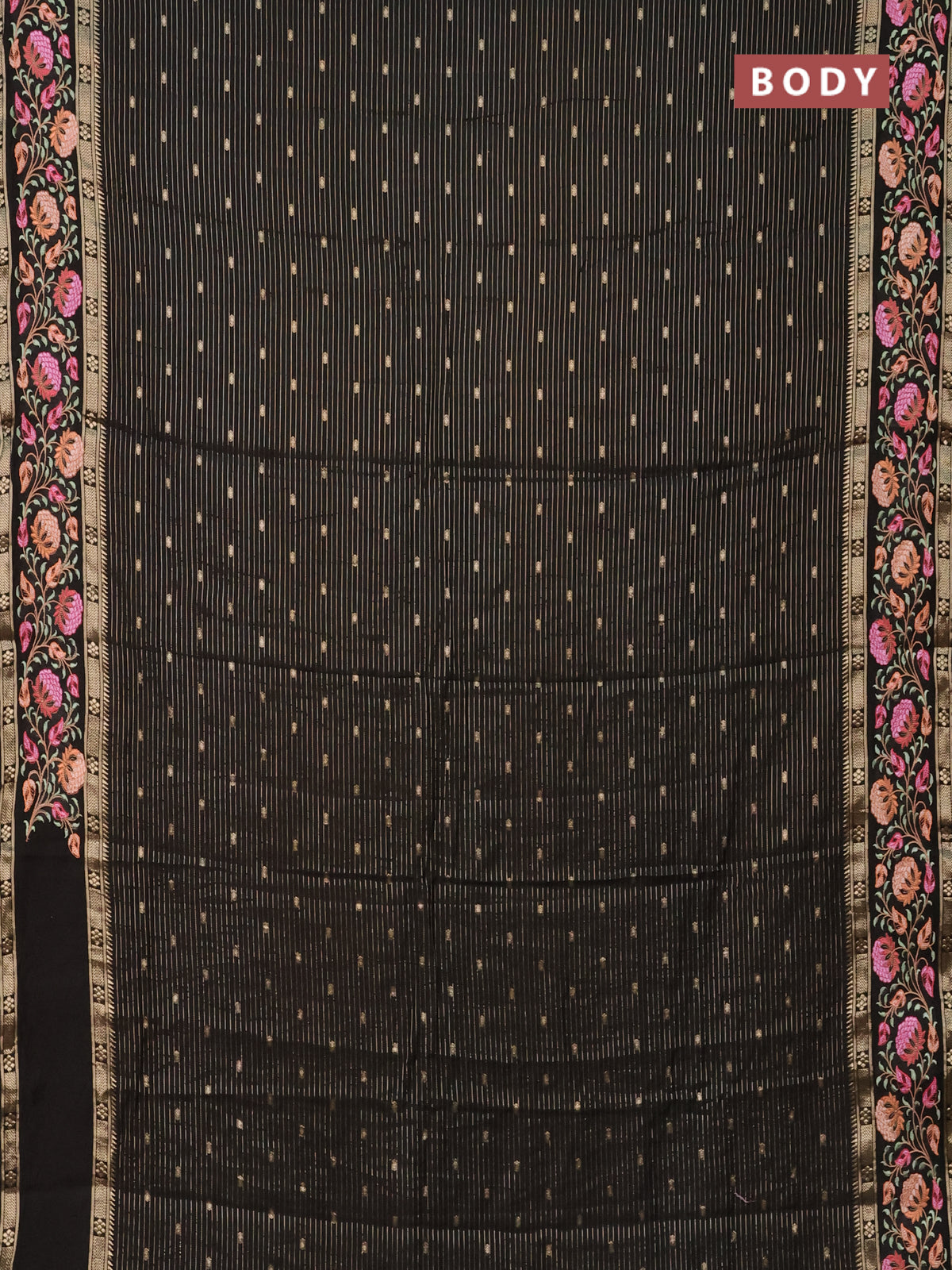 Semi chanderi saree black with allover zari weaves & buttas and floral embroidery border