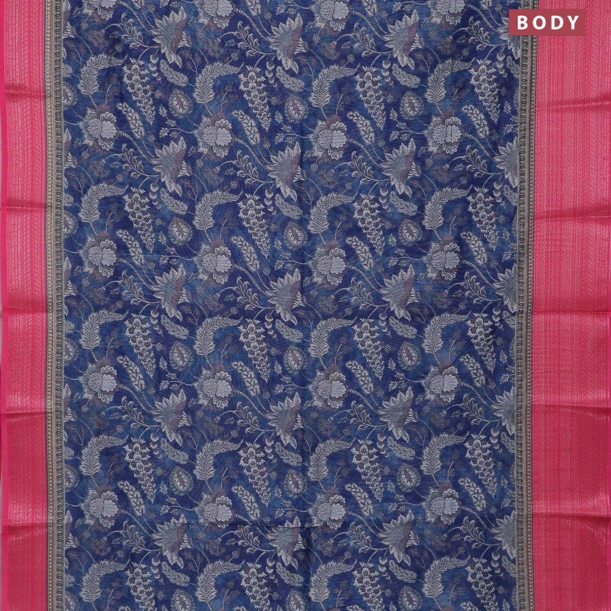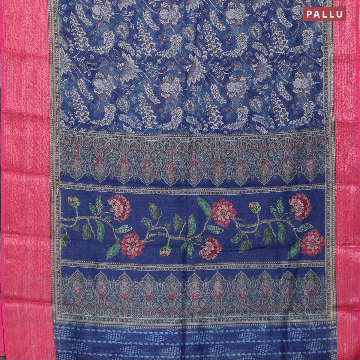 Semi chanderi saree blue and pink with allover prints and banarasi style border -