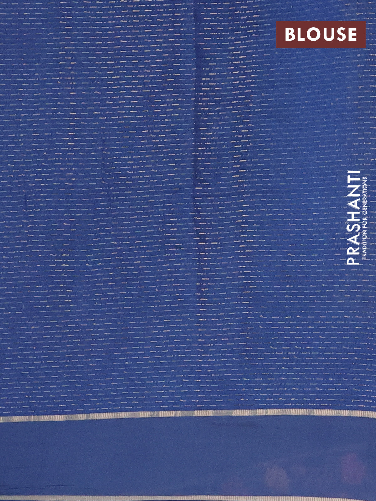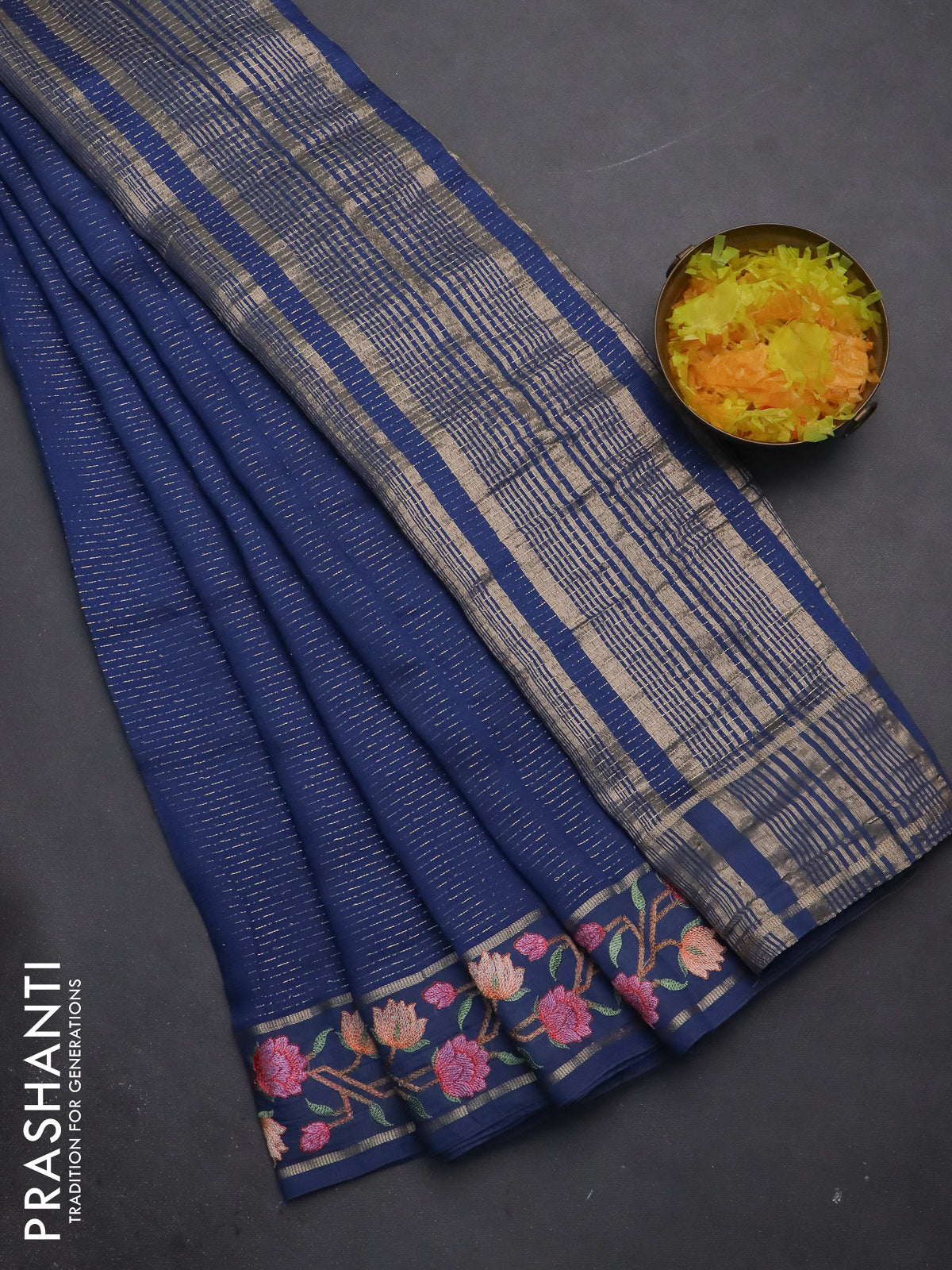 Semi chanderi saree blue with allover zari weaves and floral embroidery border