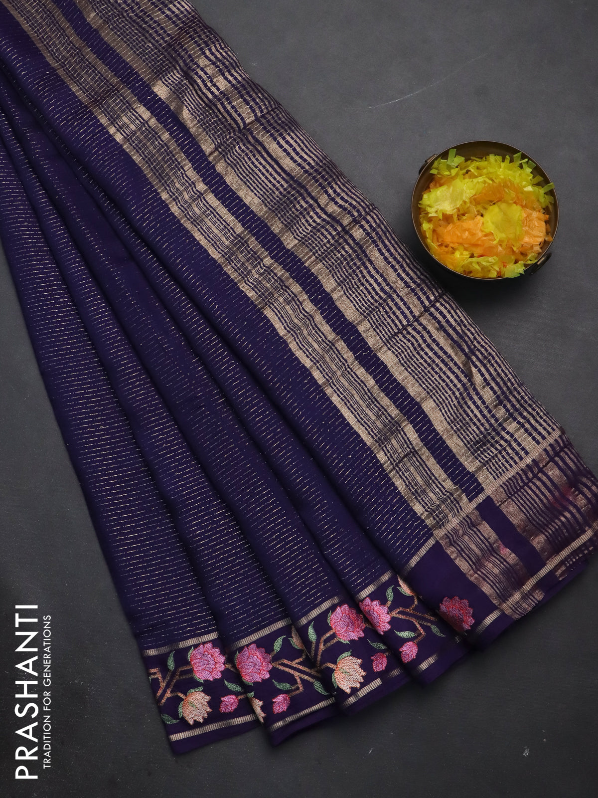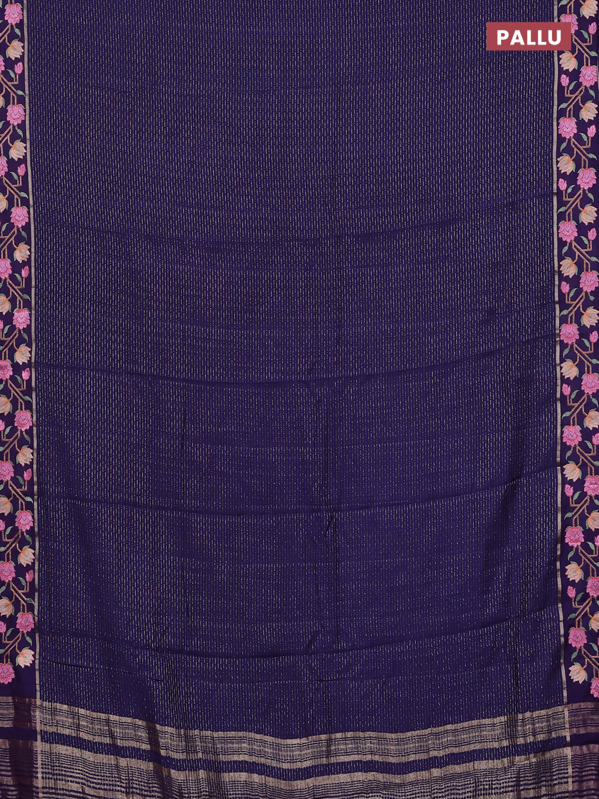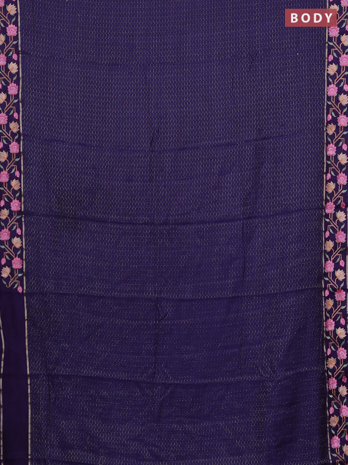 Semi chanderi saree blue with allover zari weaves and floral embroidery border