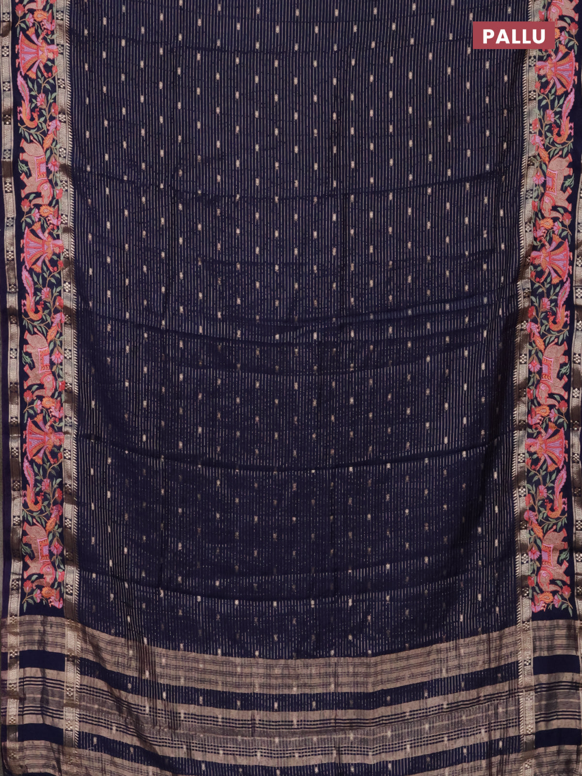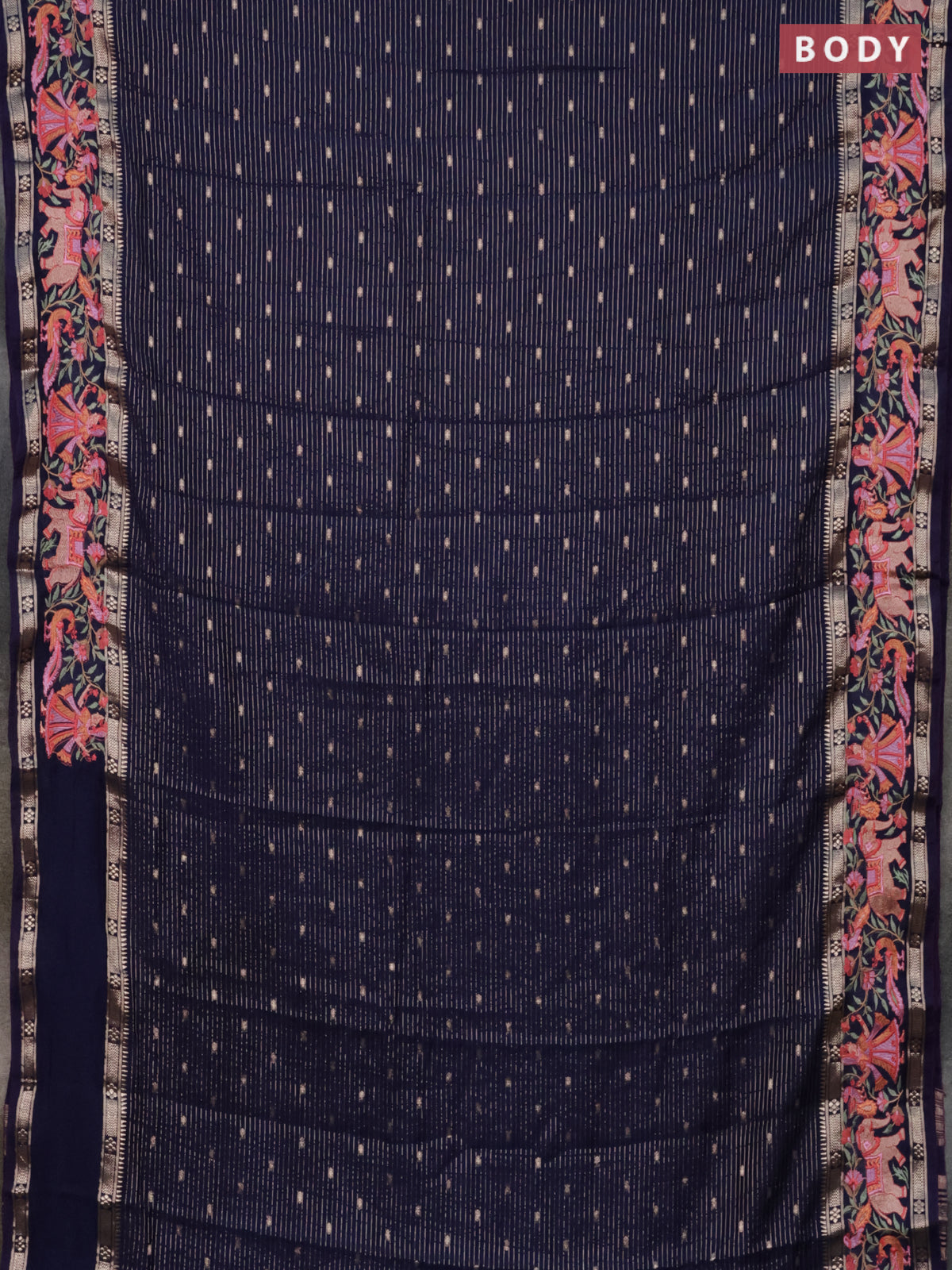 Semi chanderi saree blue with allover zari weaves & buttas and embroidery border