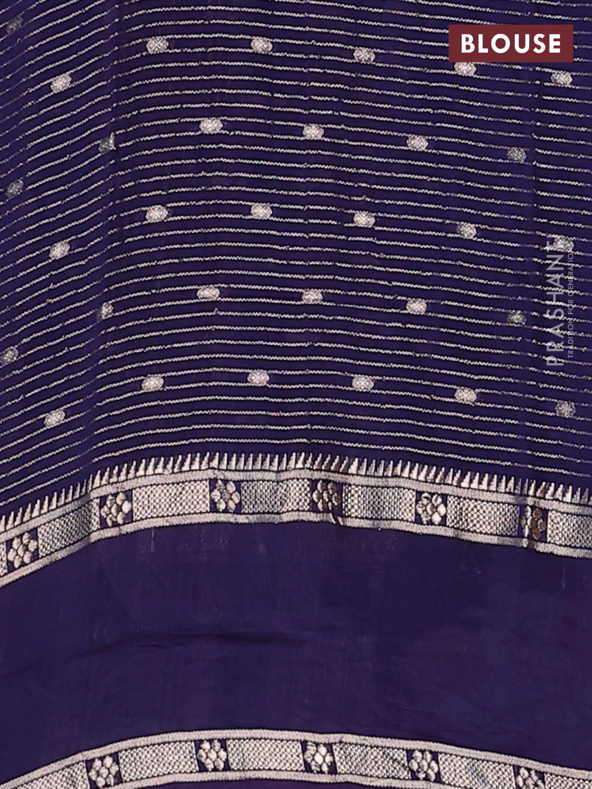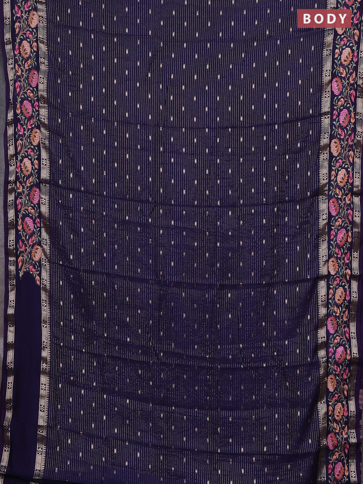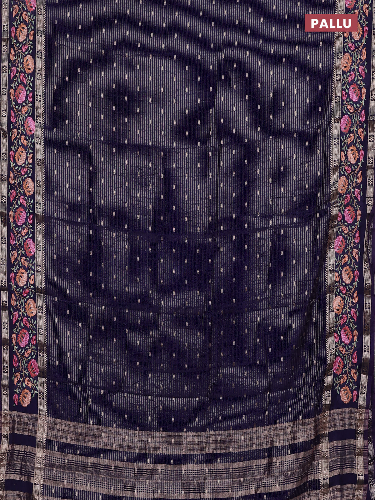 Semi chanderi saree blue with allover zari weaves & buttas and floral embroidery border