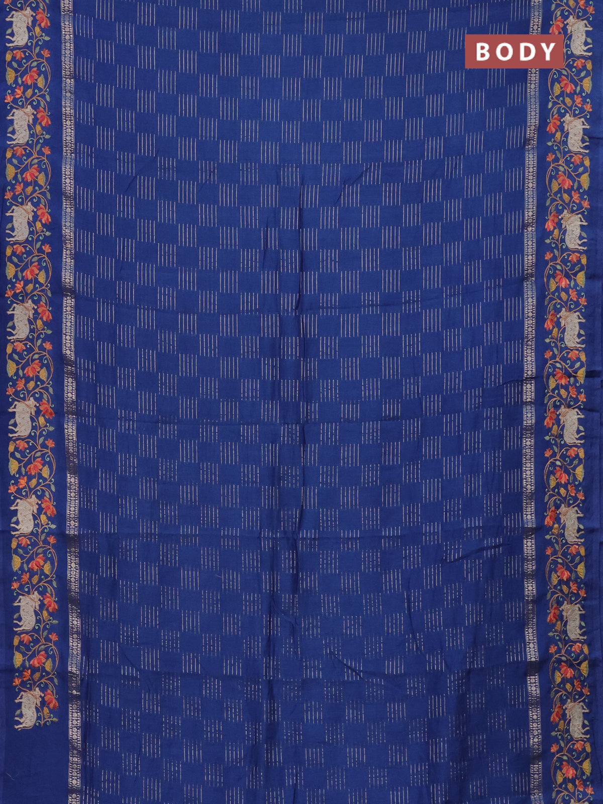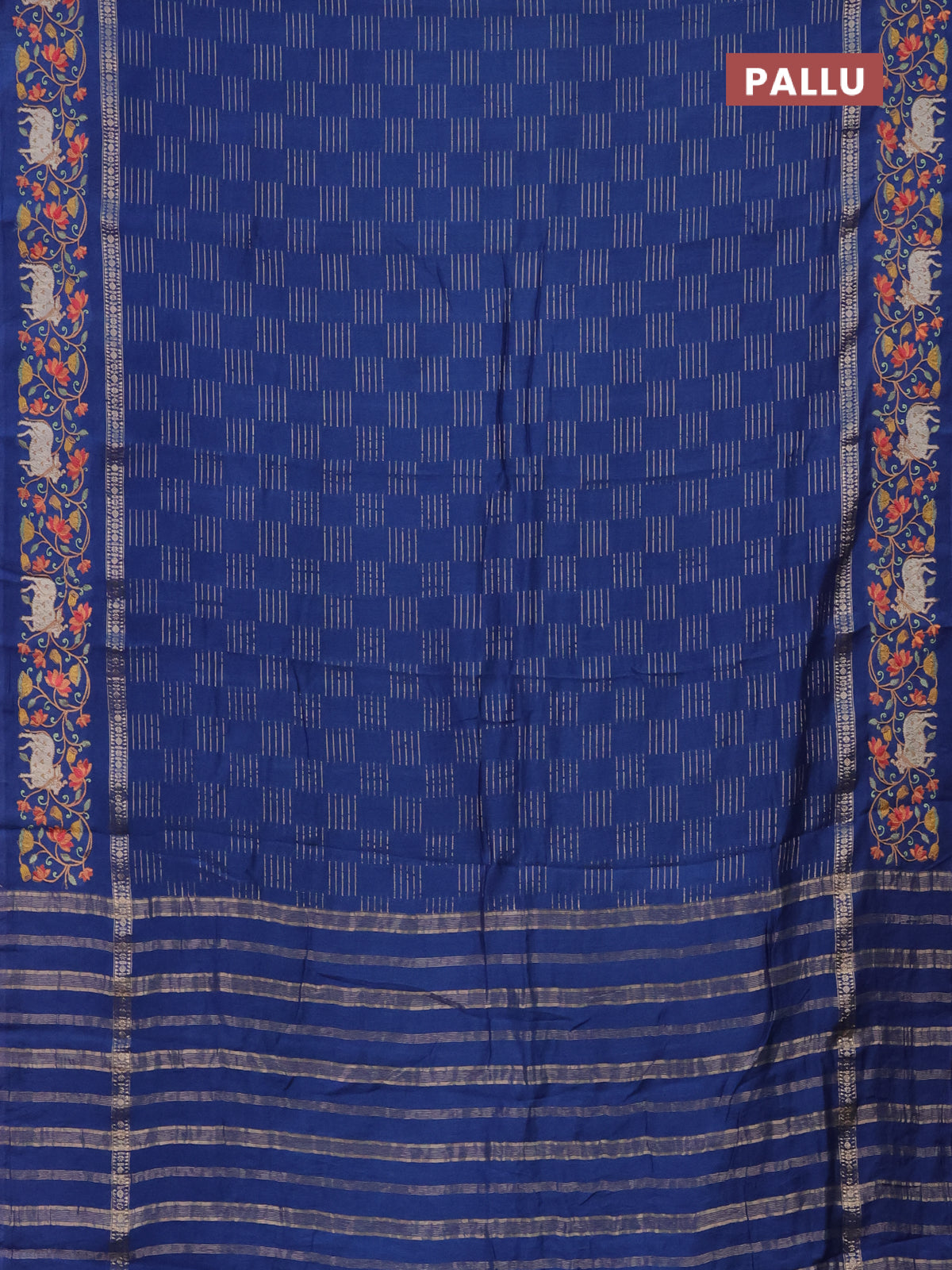 Semi chanderi saree blue with allover zari woven geometric weaves and pichwai embroidery border