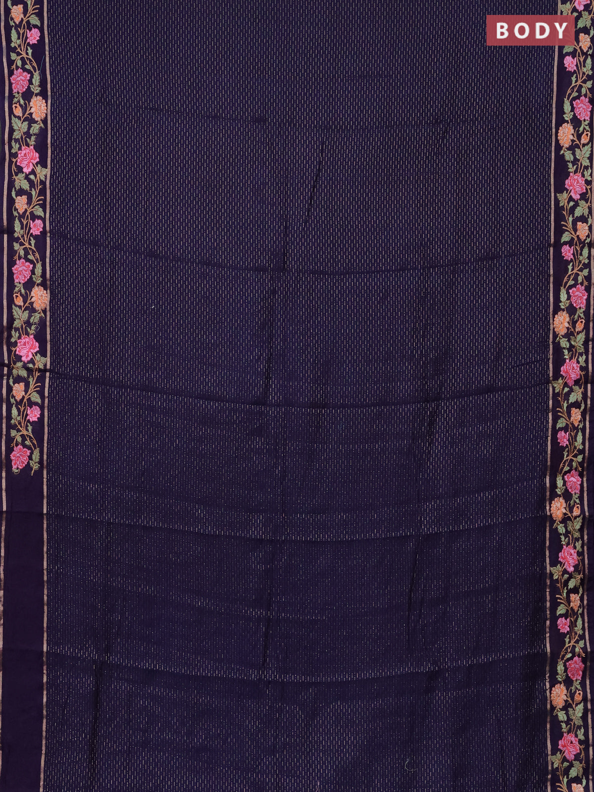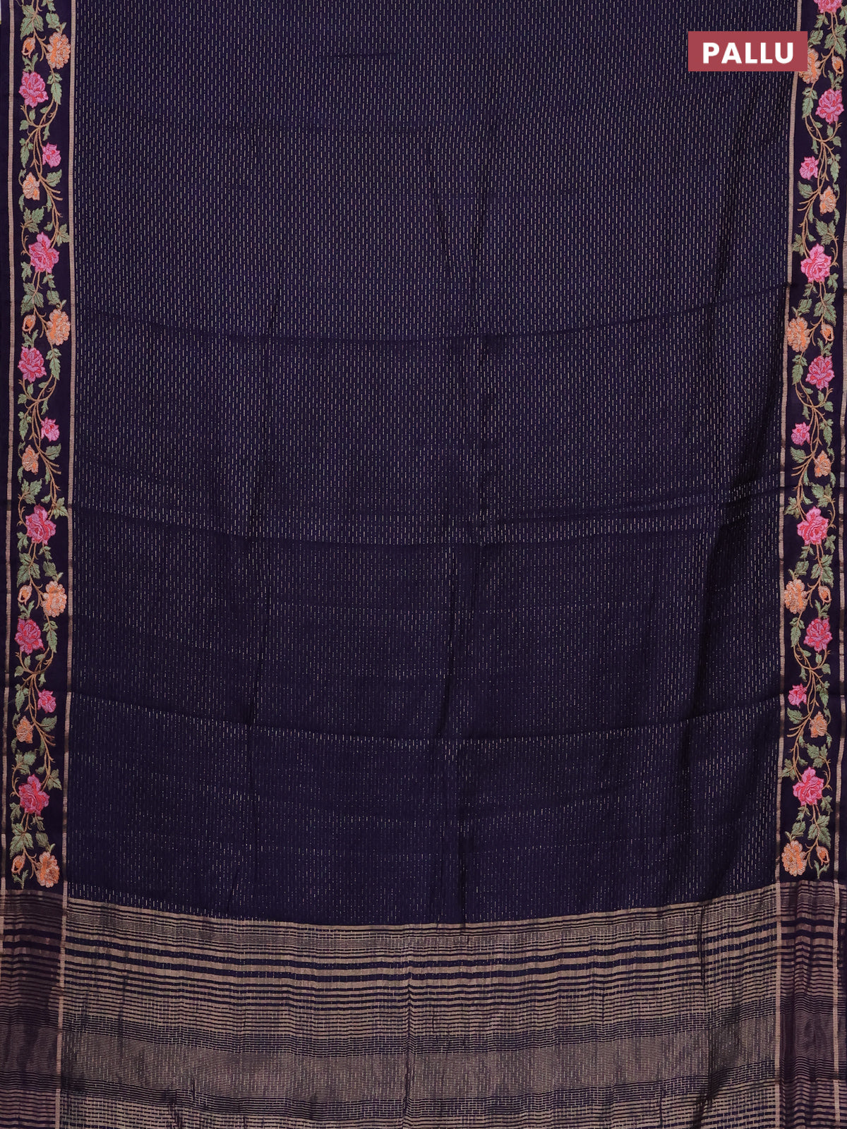 Semi chanderi saree dark blue with allover zari weaves and floral embroidery border
