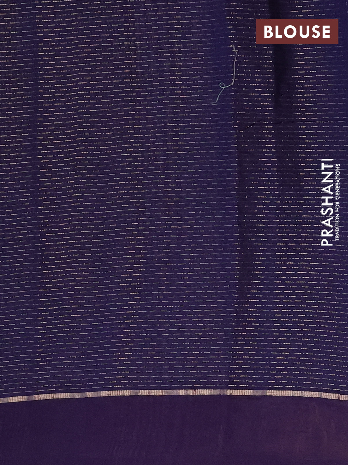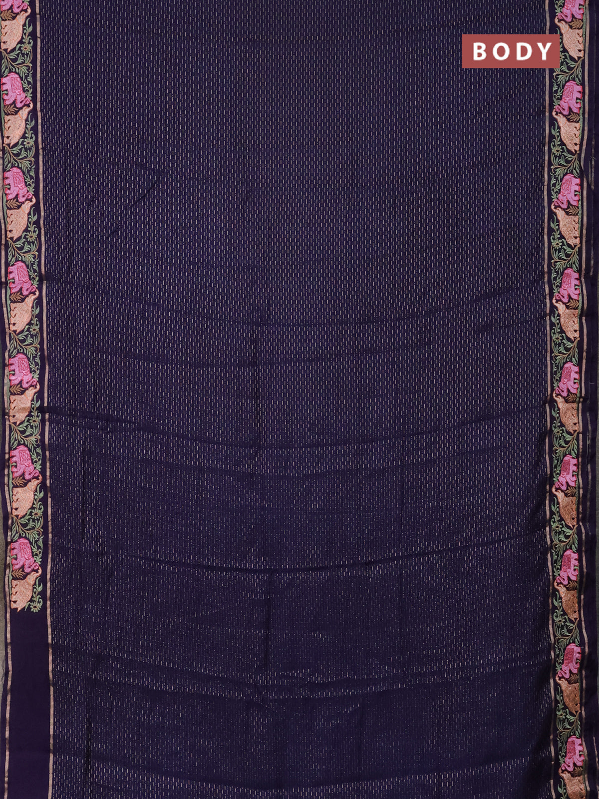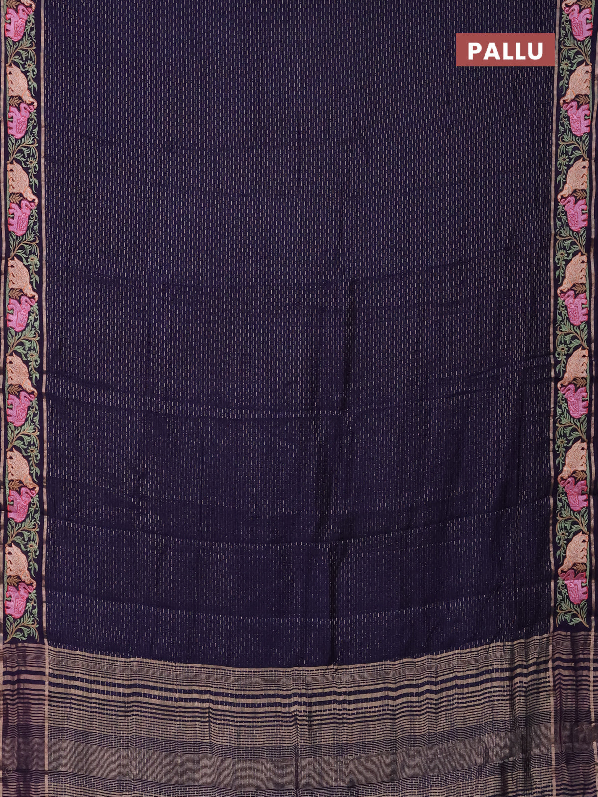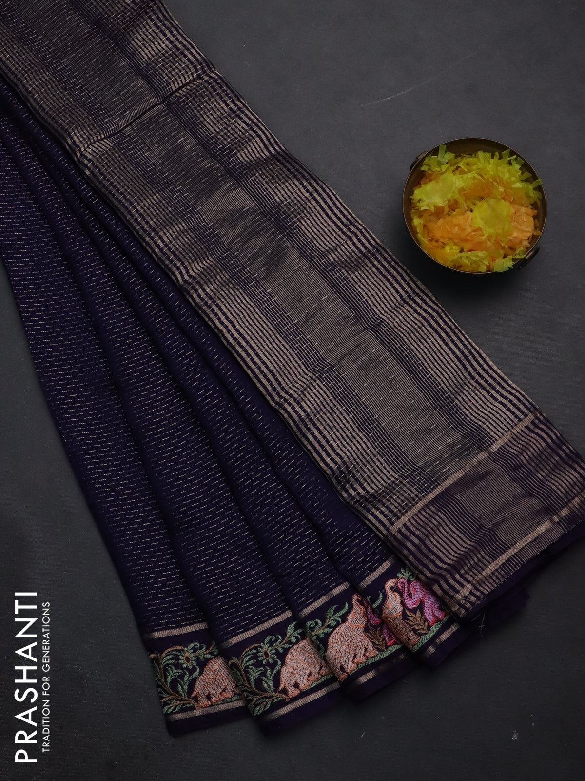 Semi chanderi saree dark blue with allover zari weaves and floral embroidery border