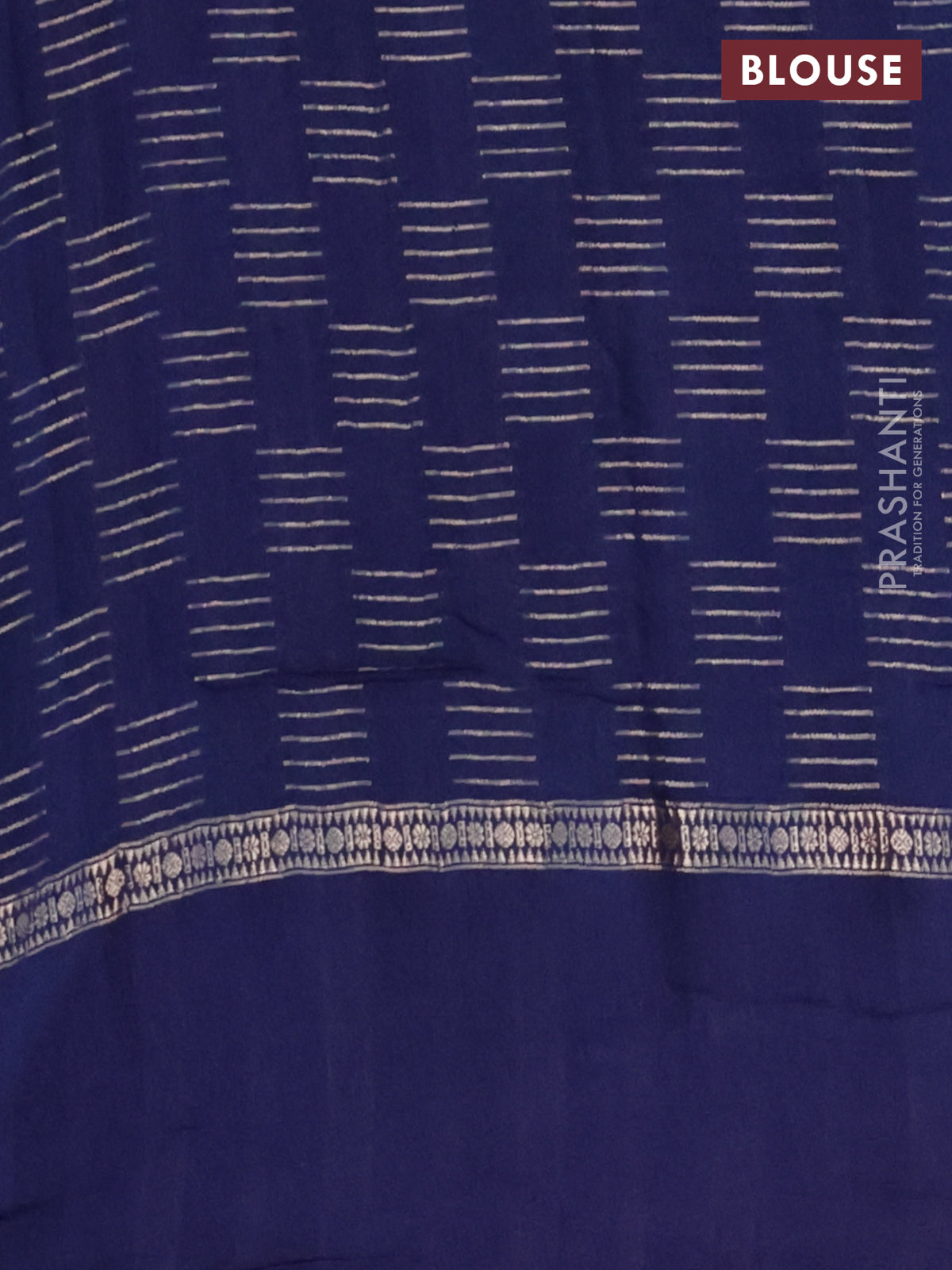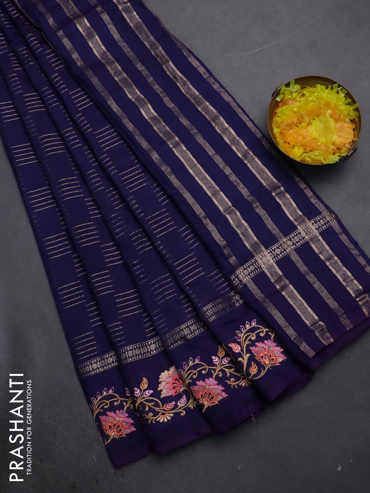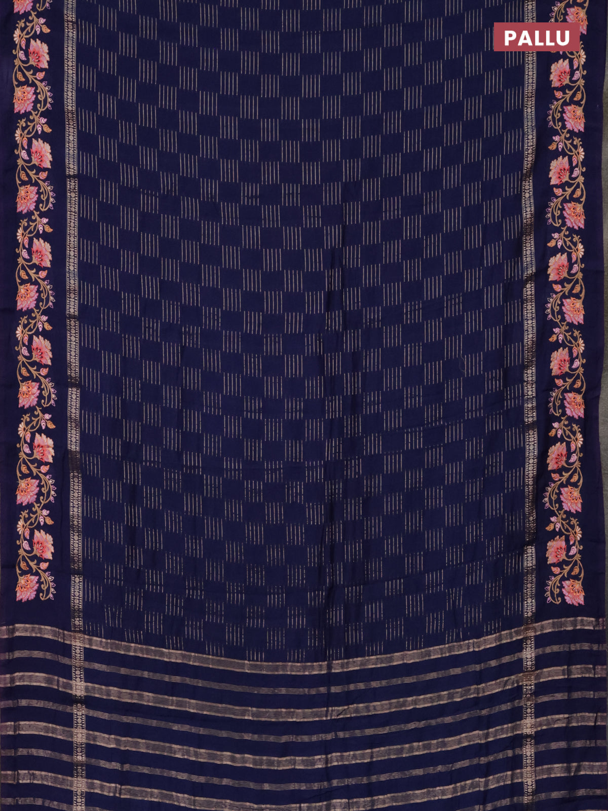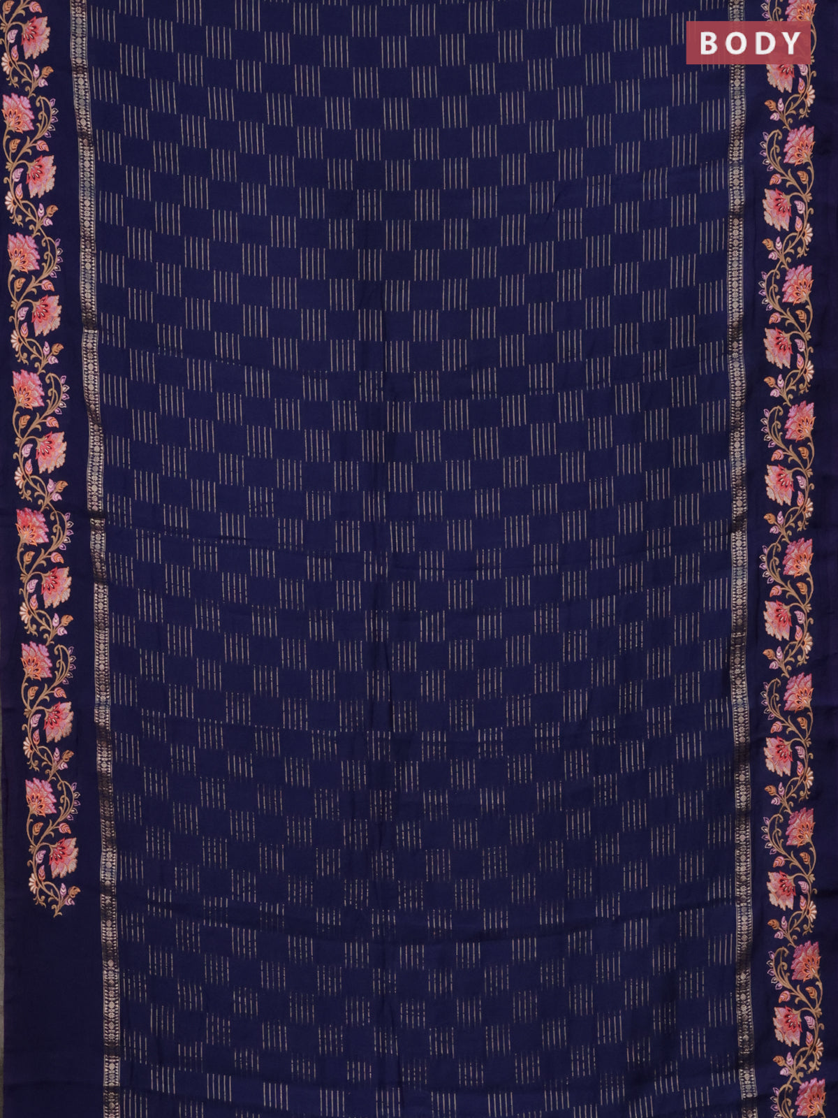 Semi chanderi saree dark blue with allover zari woven geometric weaves and floral embroidery border