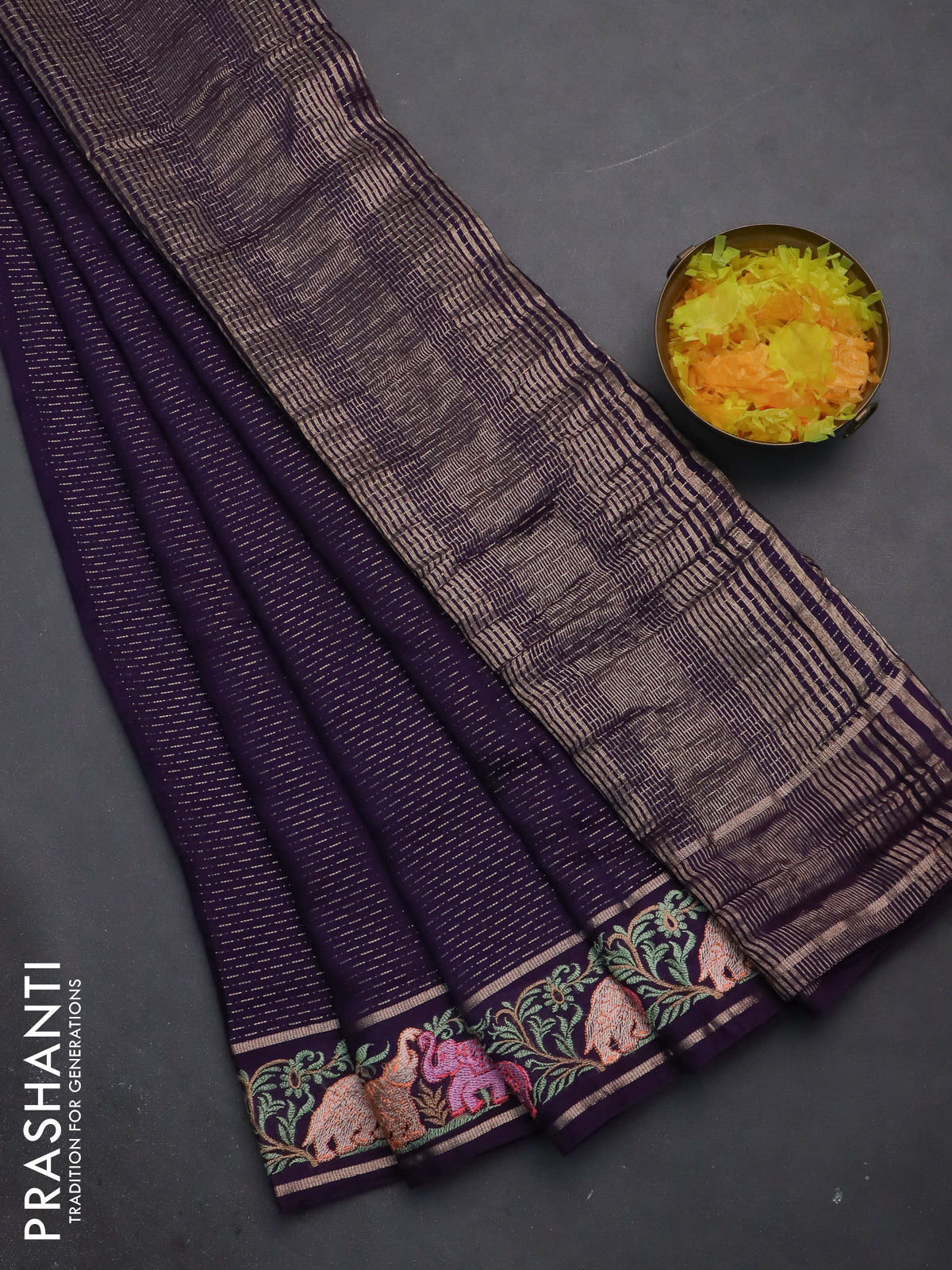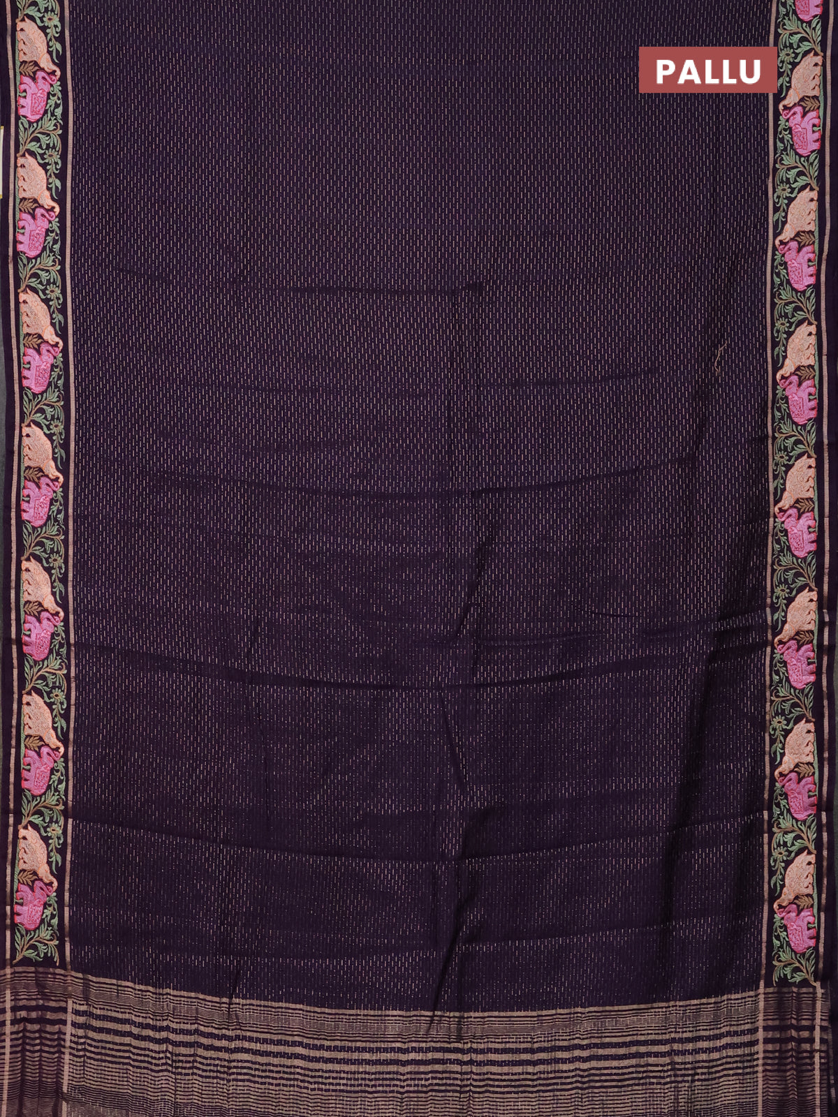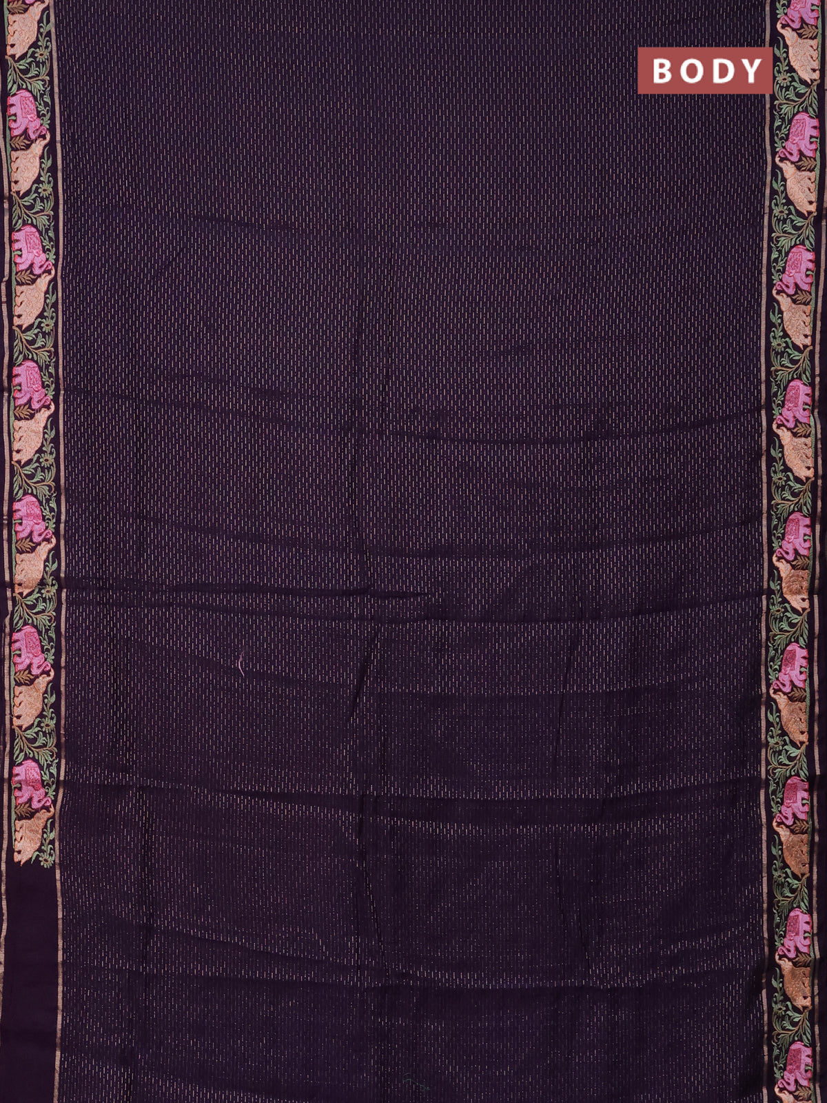 Semi chanderi saree deep violet with allover zari weaves and floral embroidery border