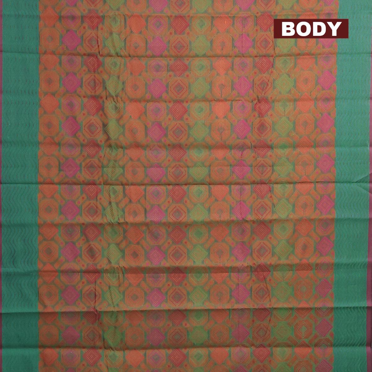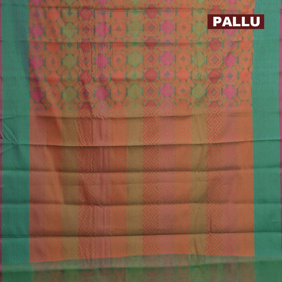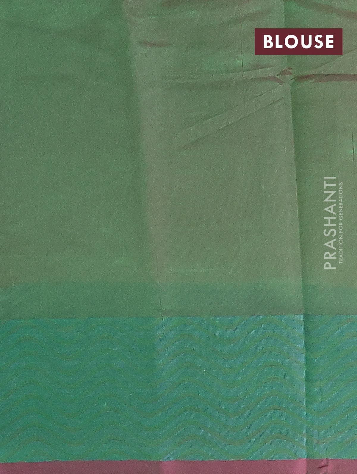 Semi chanderi saree dual shade of green and pink shade with allover thread weaves and woven border
