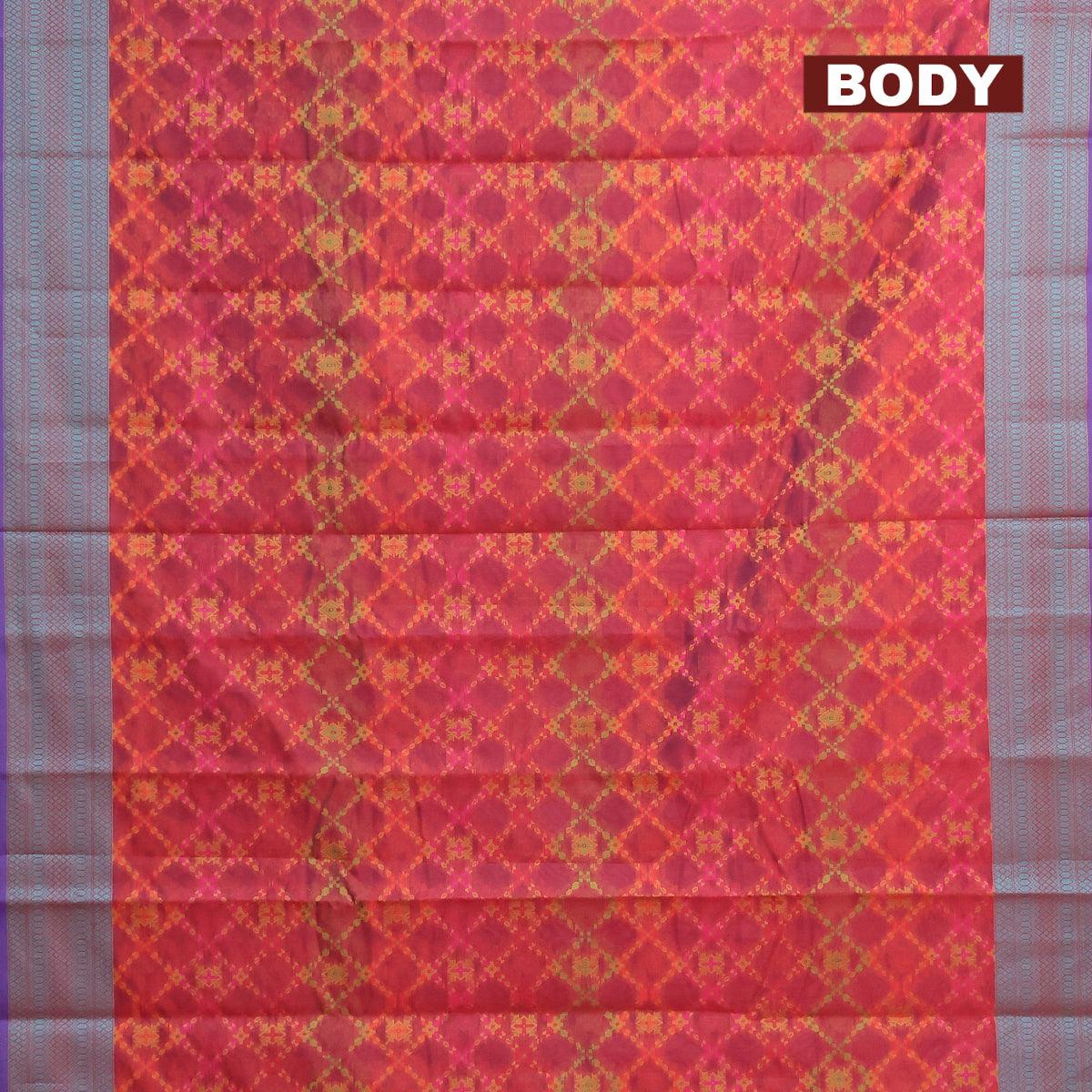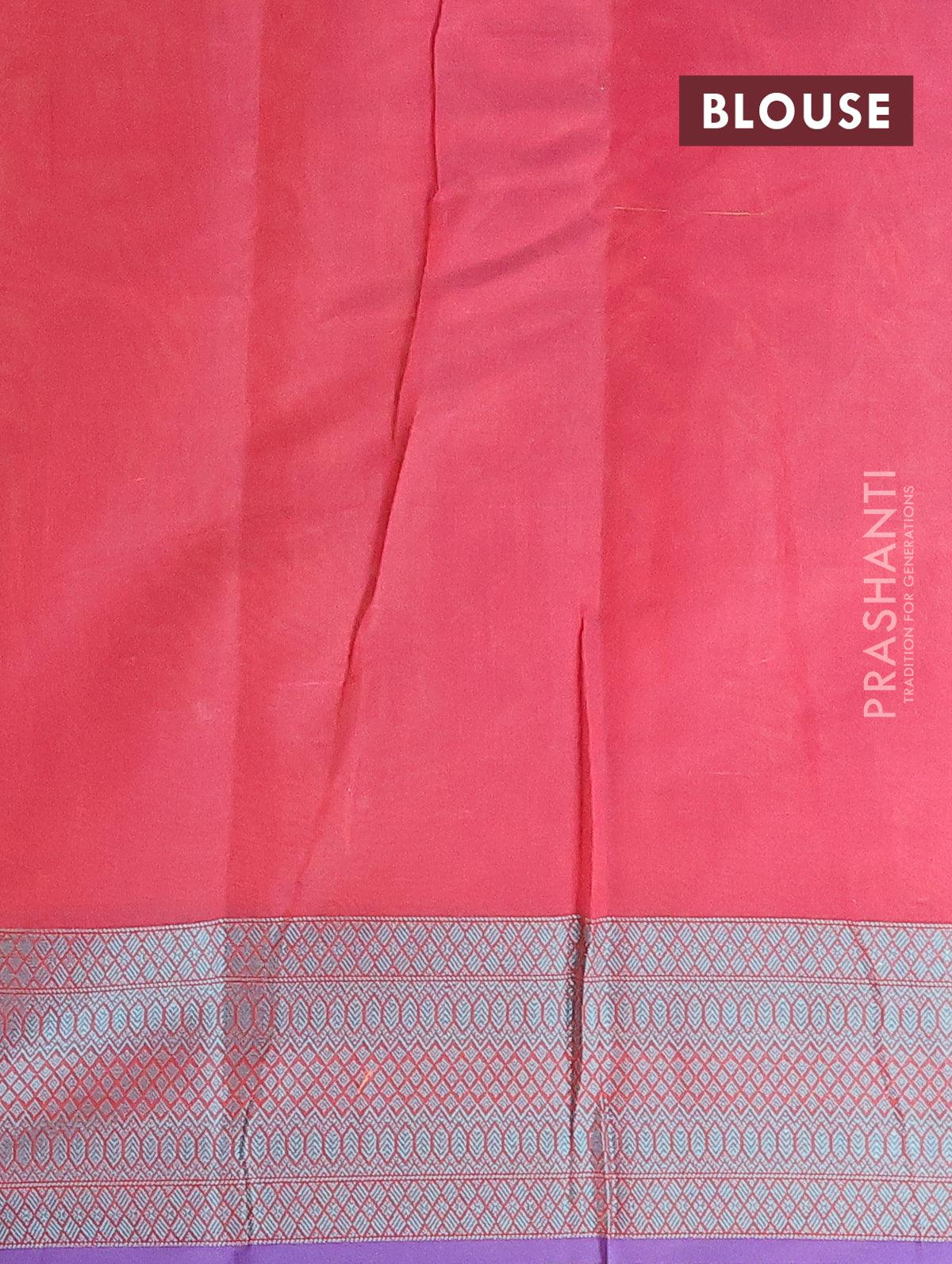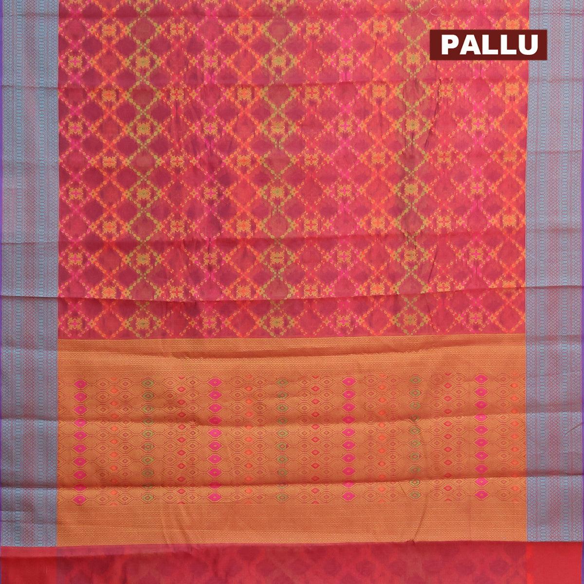 Semi chanderi saree dual shade of maroon and blue with allover thread weaves and woven border