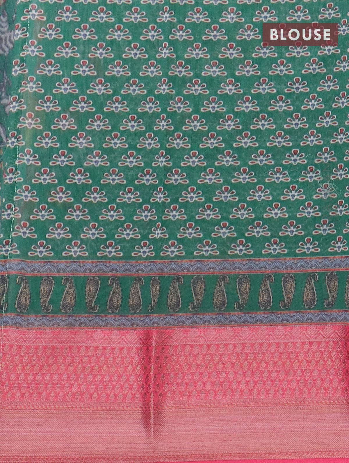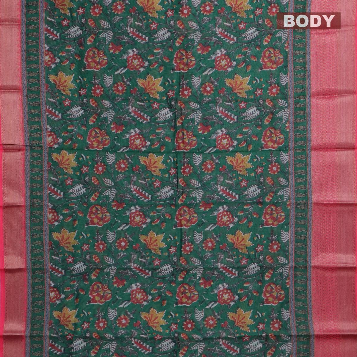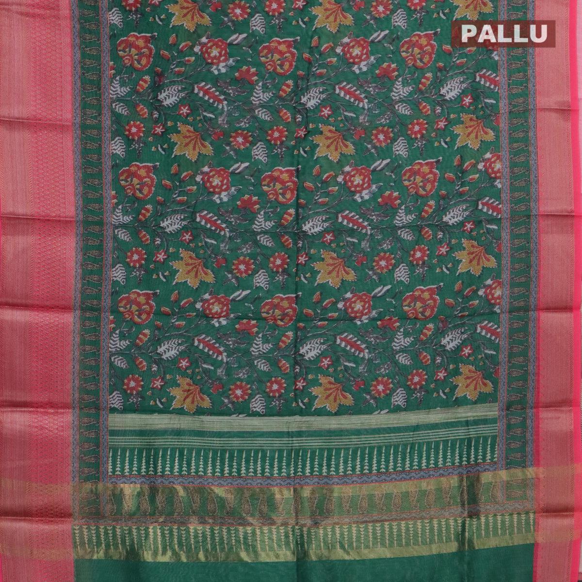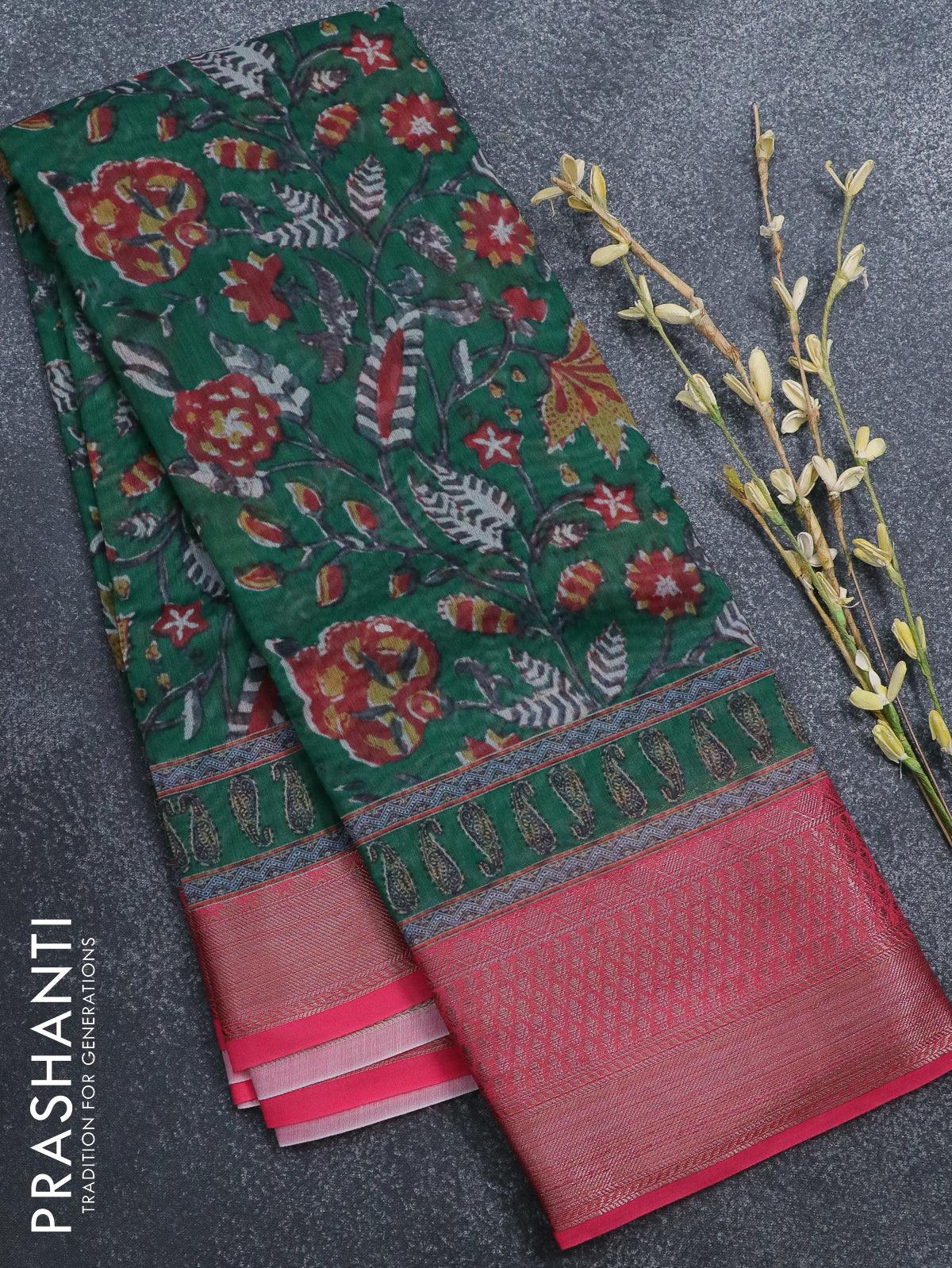 Semi chanderi saree green and pink with allover prints and banarasi style border -