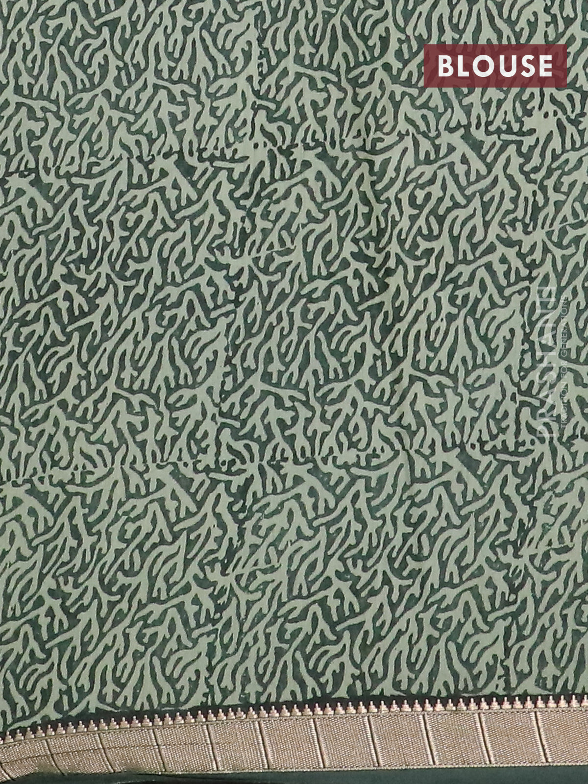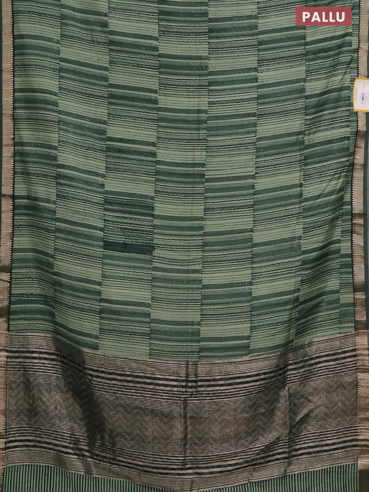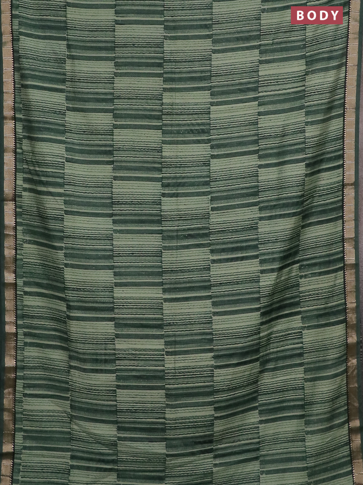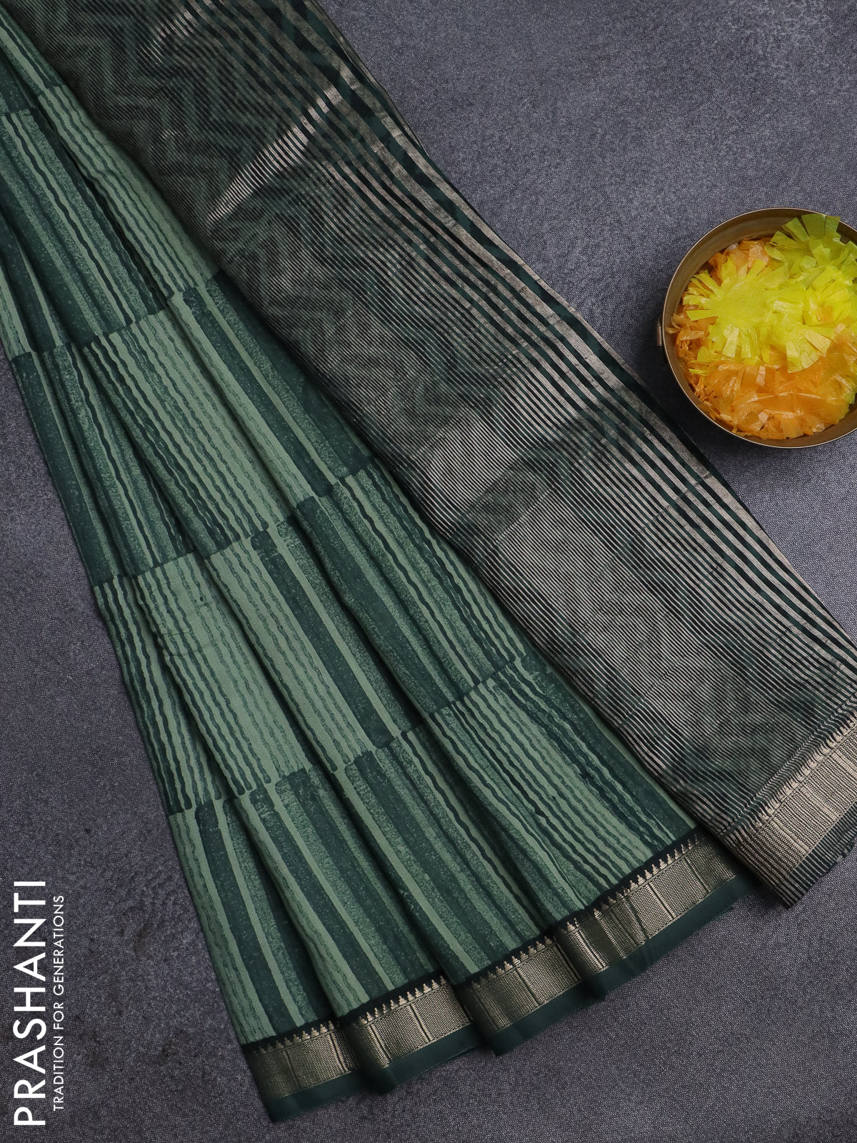 Semi chanderi saree green shade and green with allover stripe pattern and zari woven border