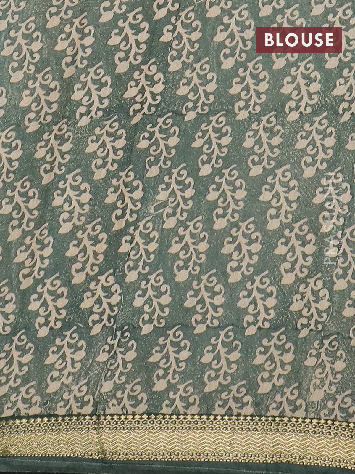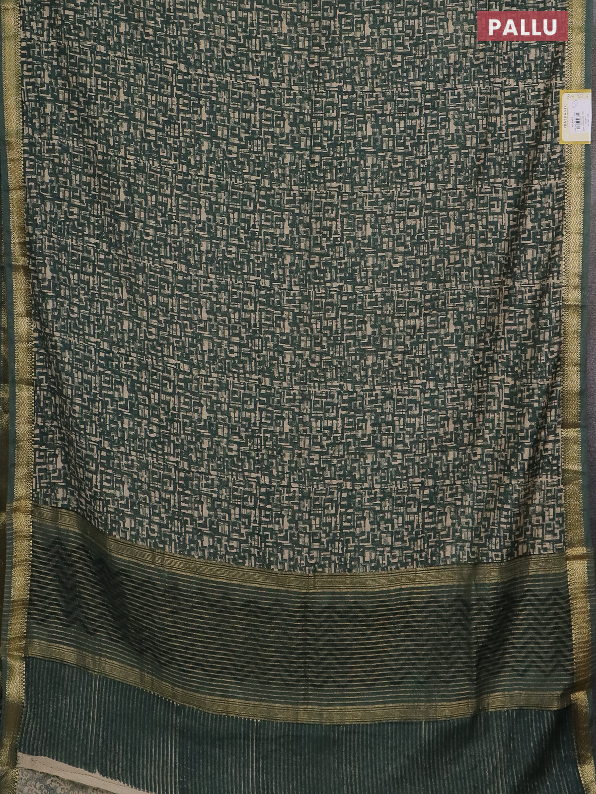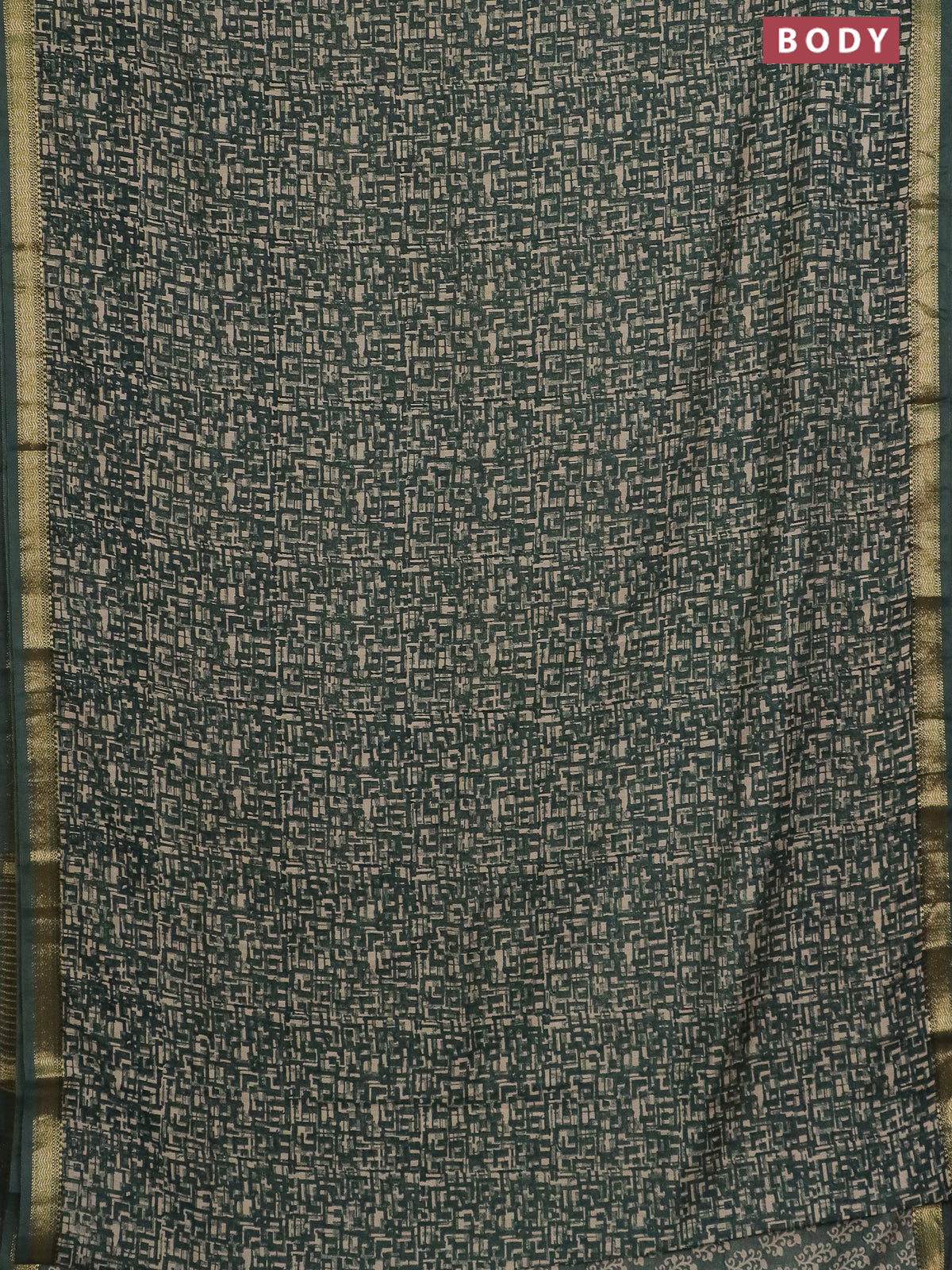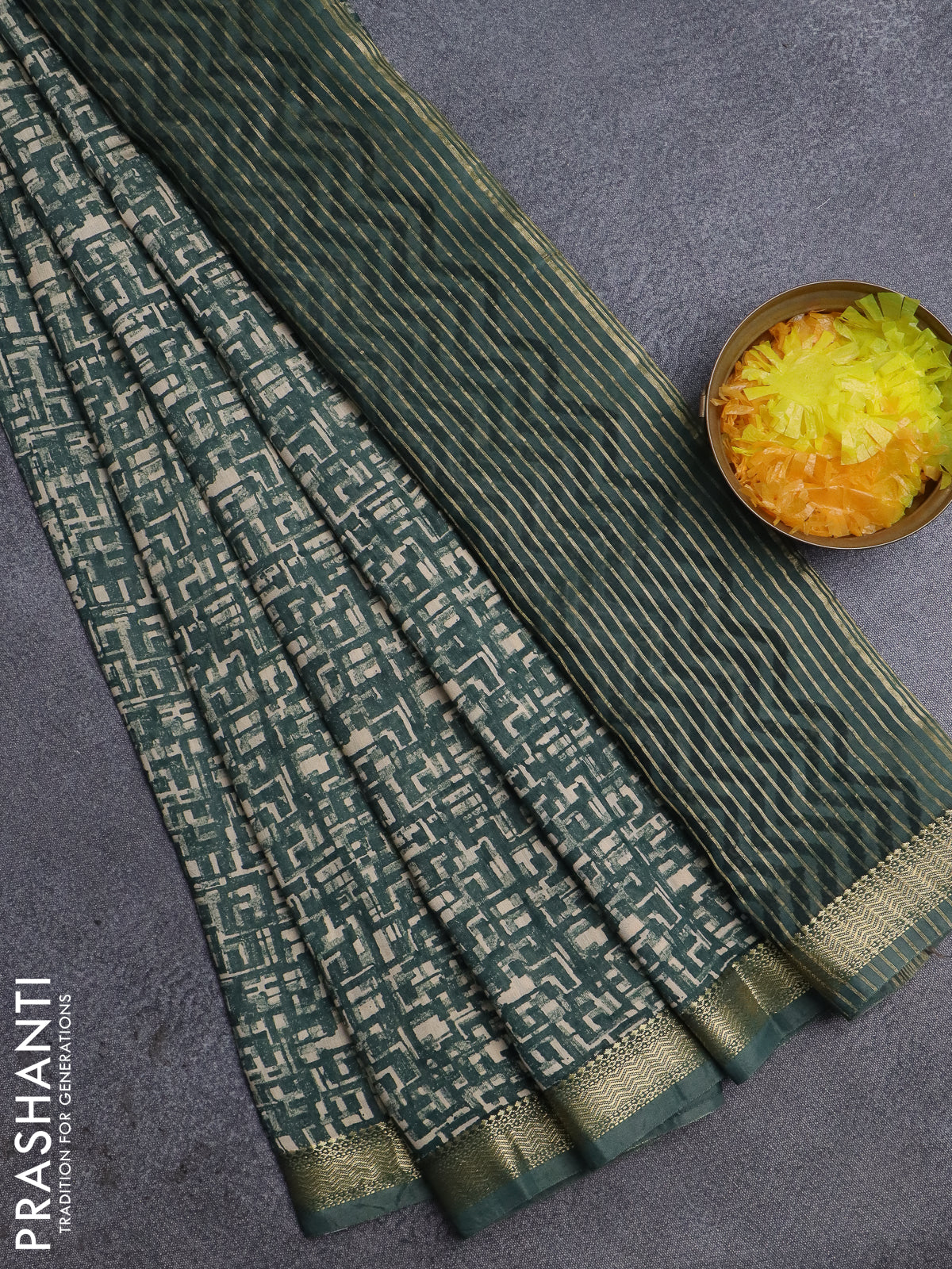 Semi chanderi saree green shade and sandal with allover prints and zari woven border