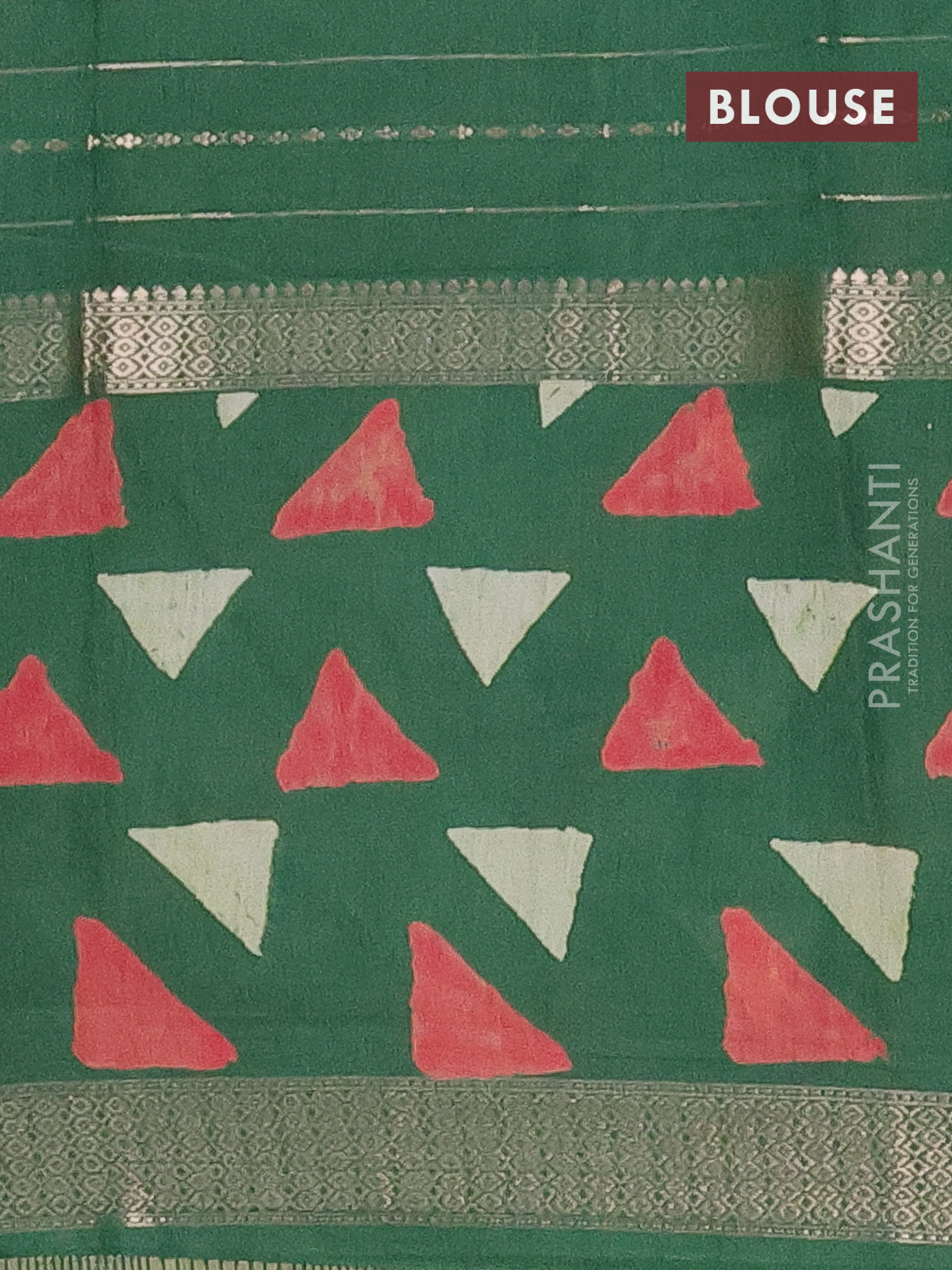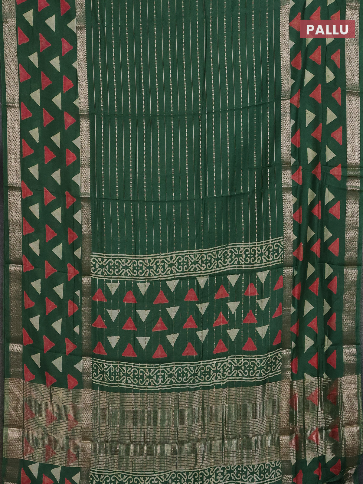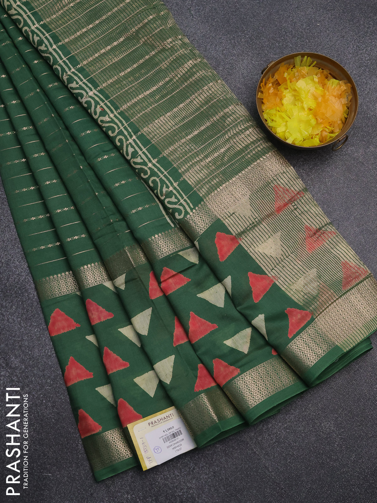 Semi chanderi saree green with allover zari weaves and long printed zari border
