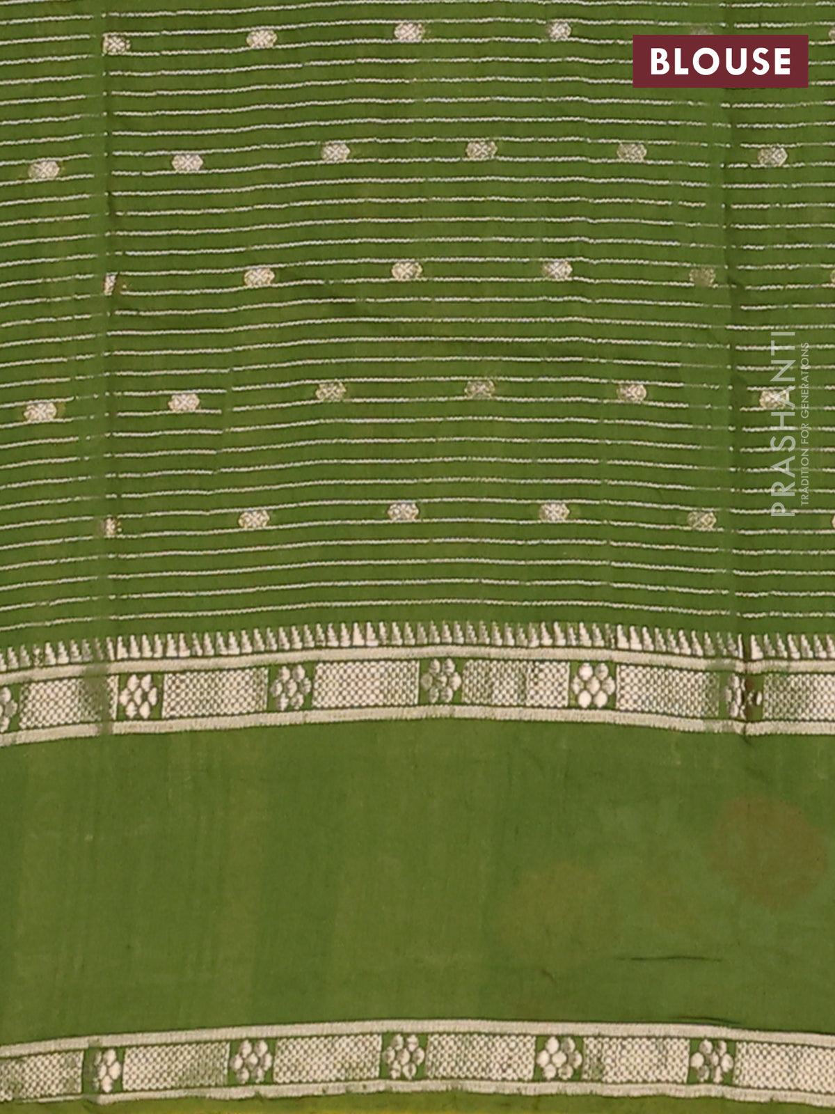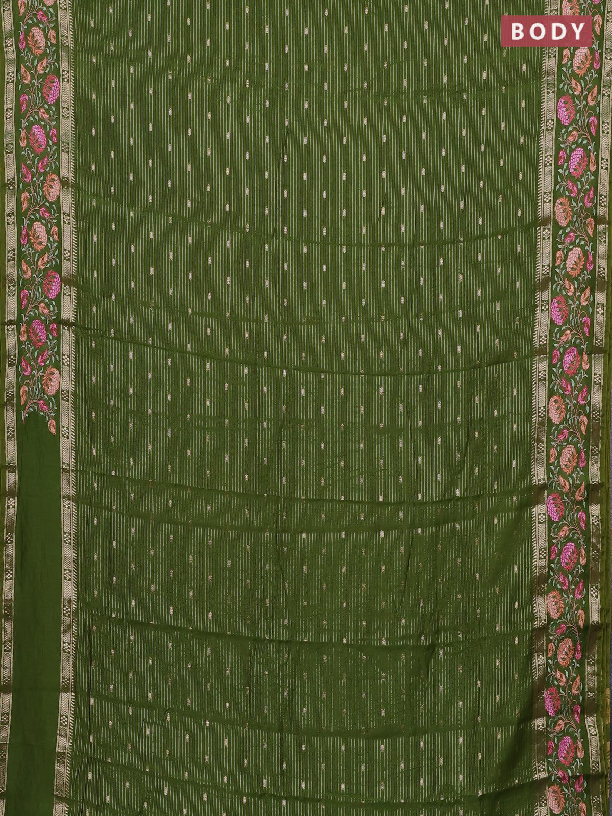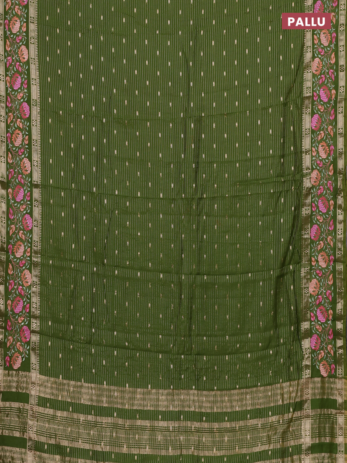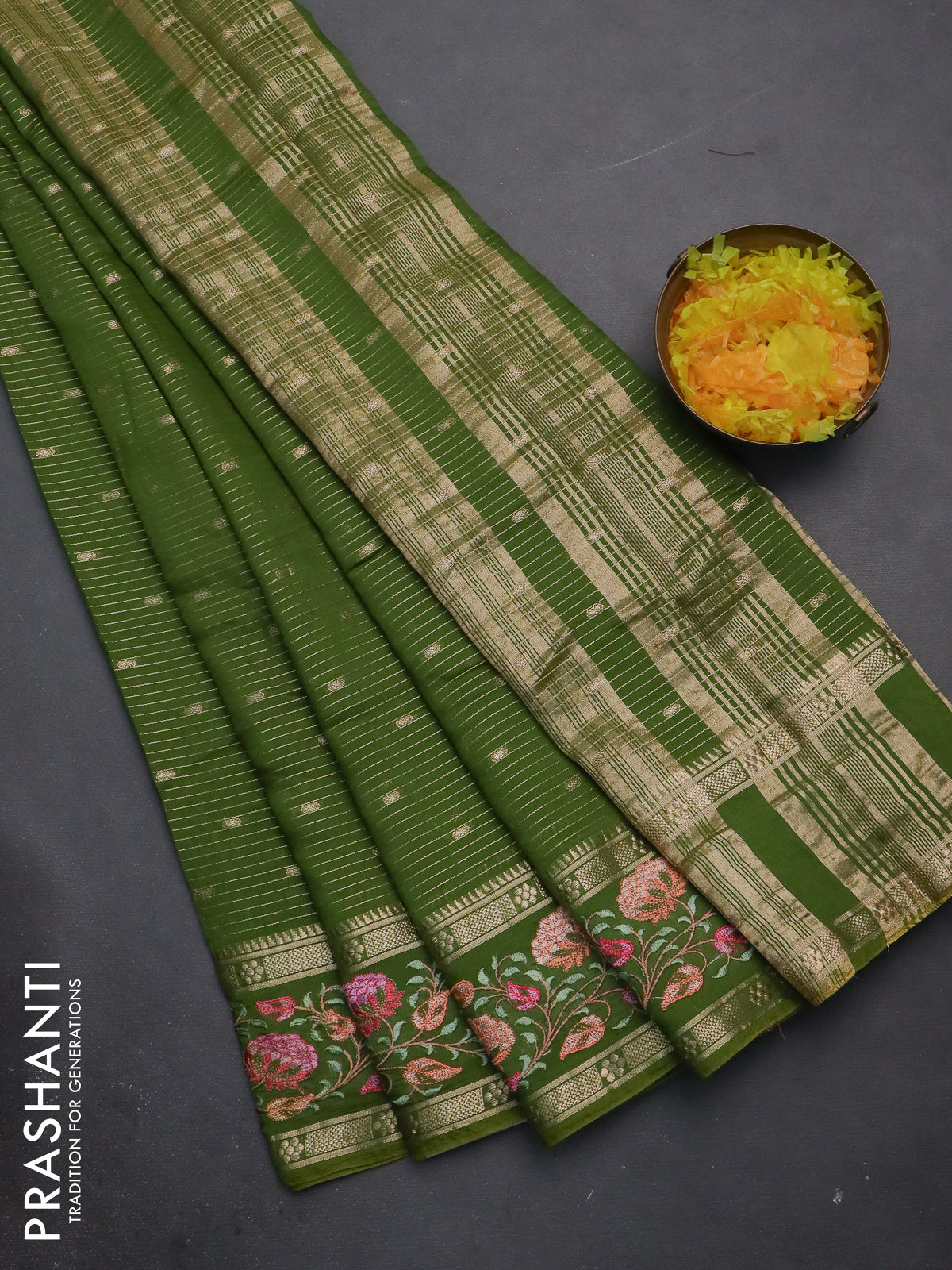 Semi chanderi saree green with allover zari weaves & buttas and floral embroidery border