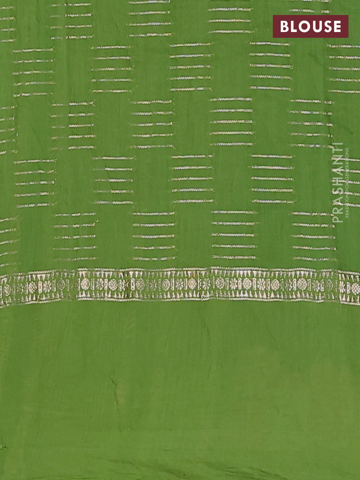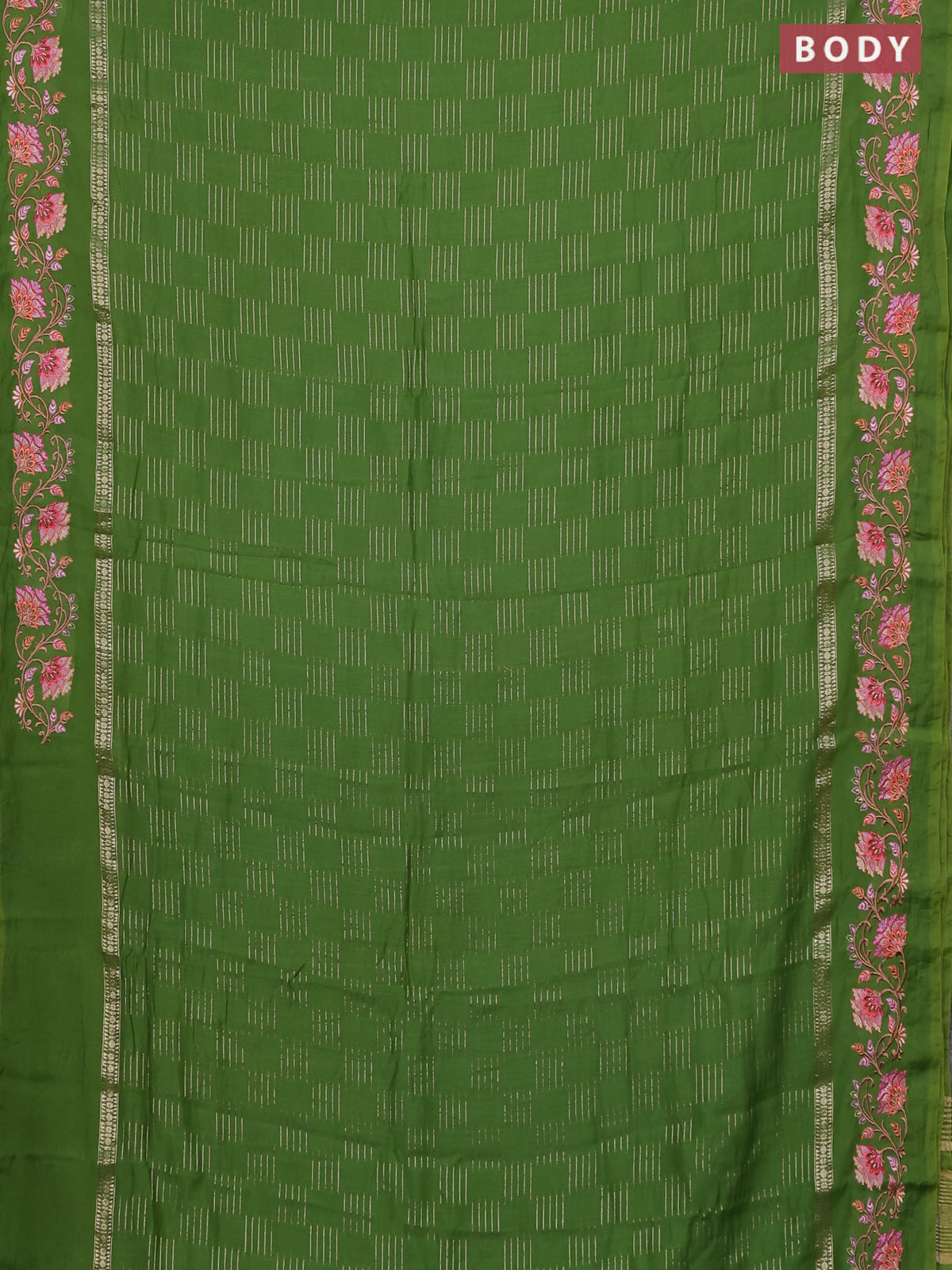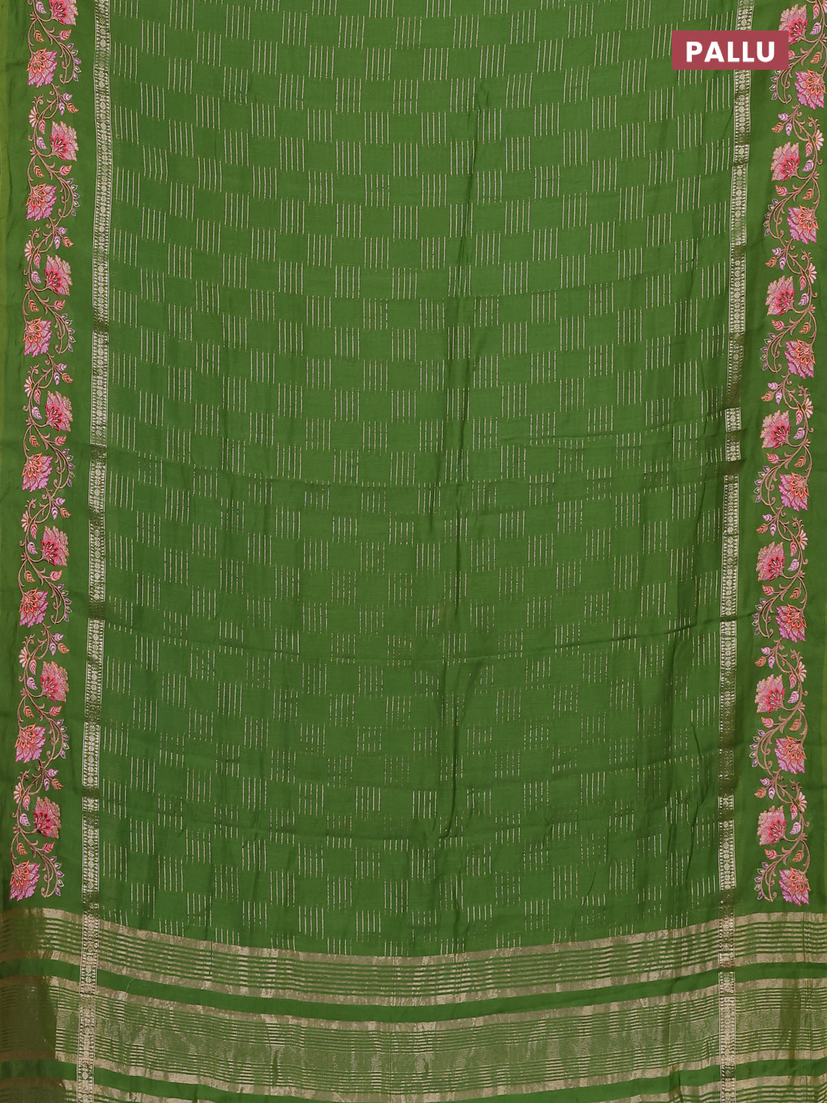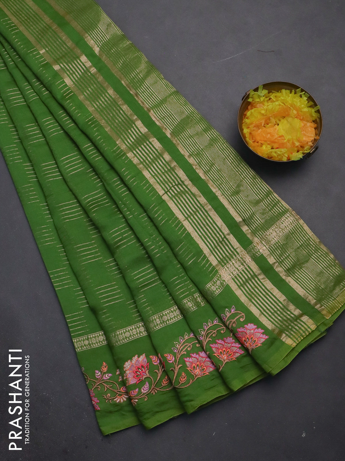 Semi chanderi saree green with allover zari woven geometric weaves and floral embroidery border