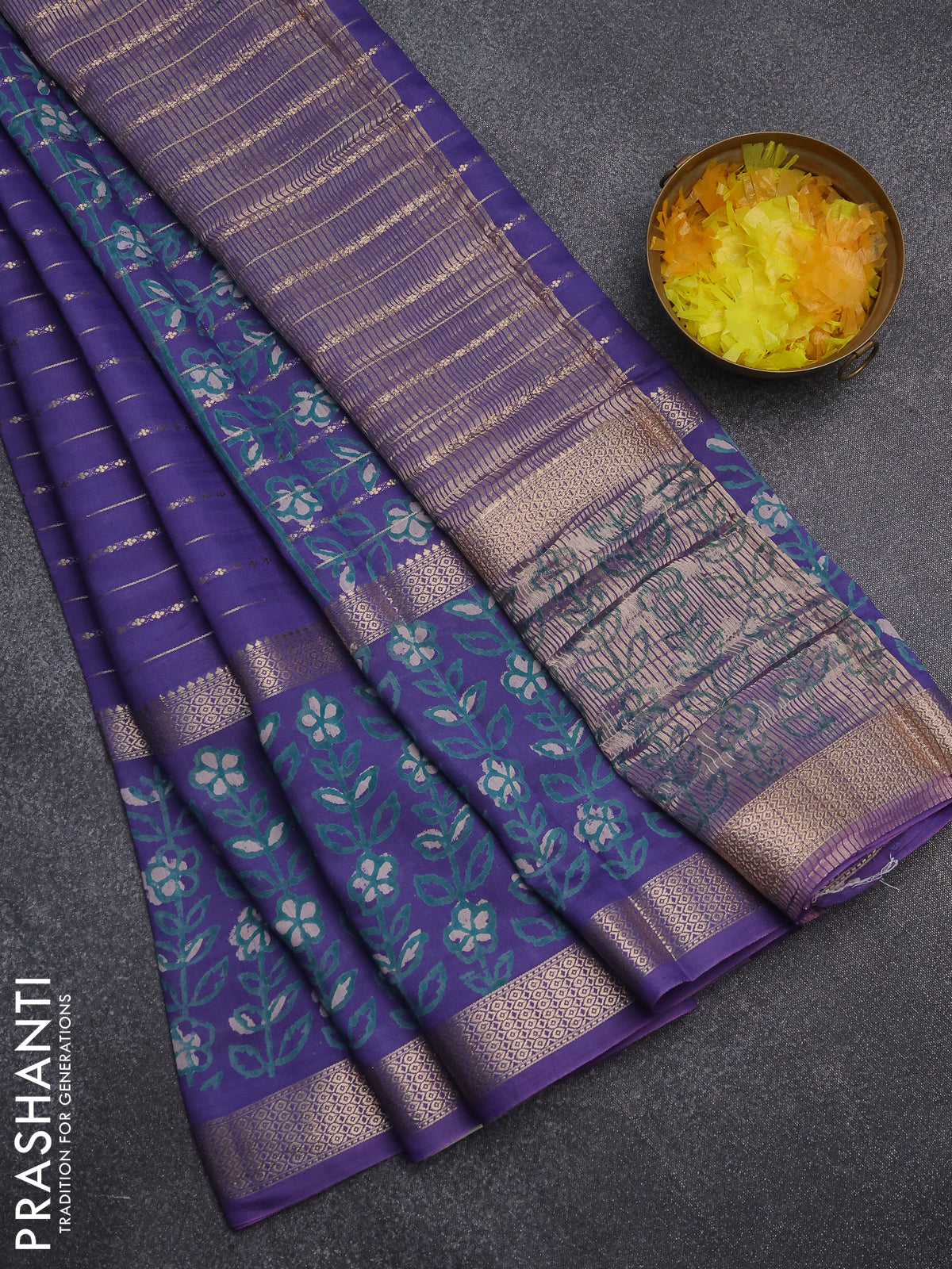 Semi chanderi saree lavender shade with allover zari weaves and long printed zari border