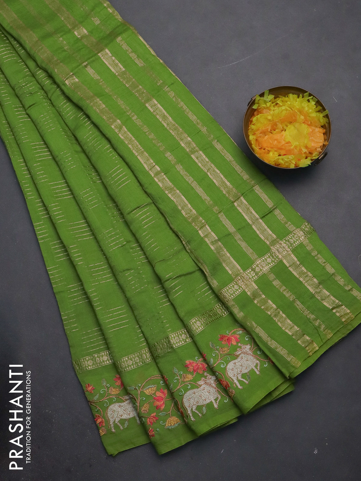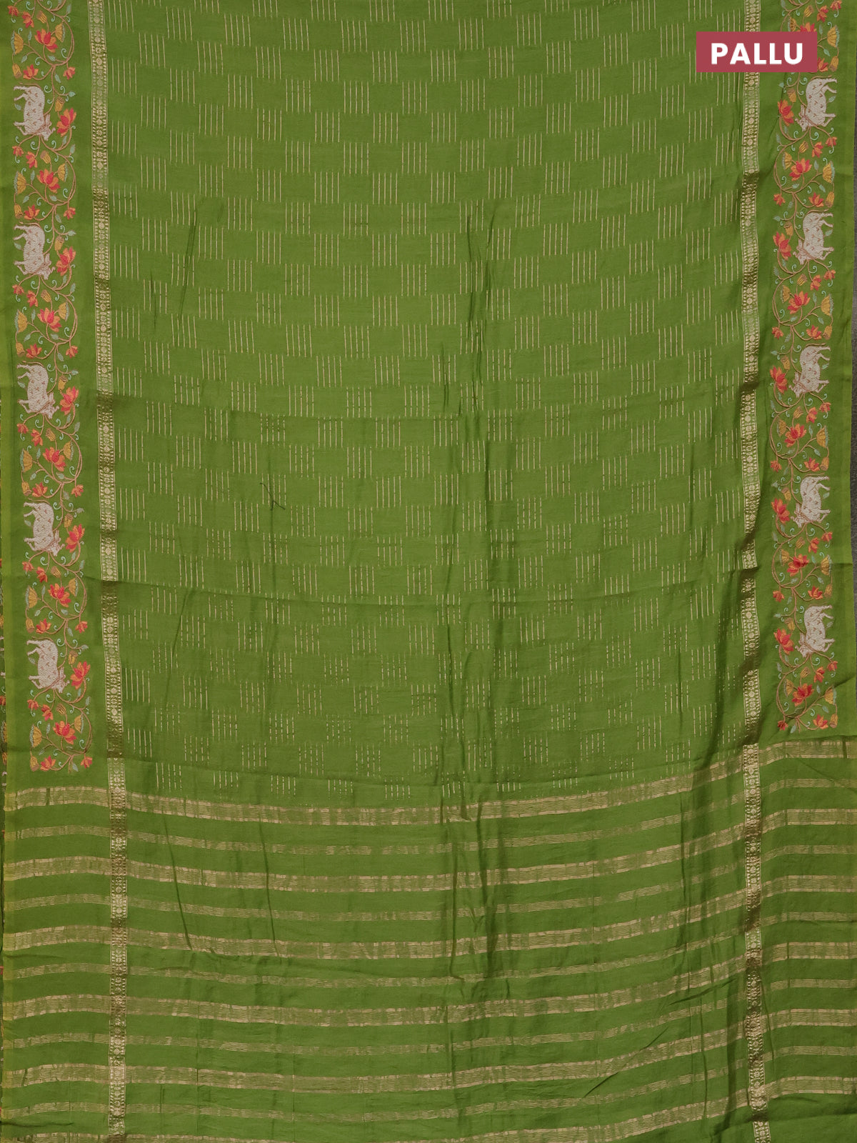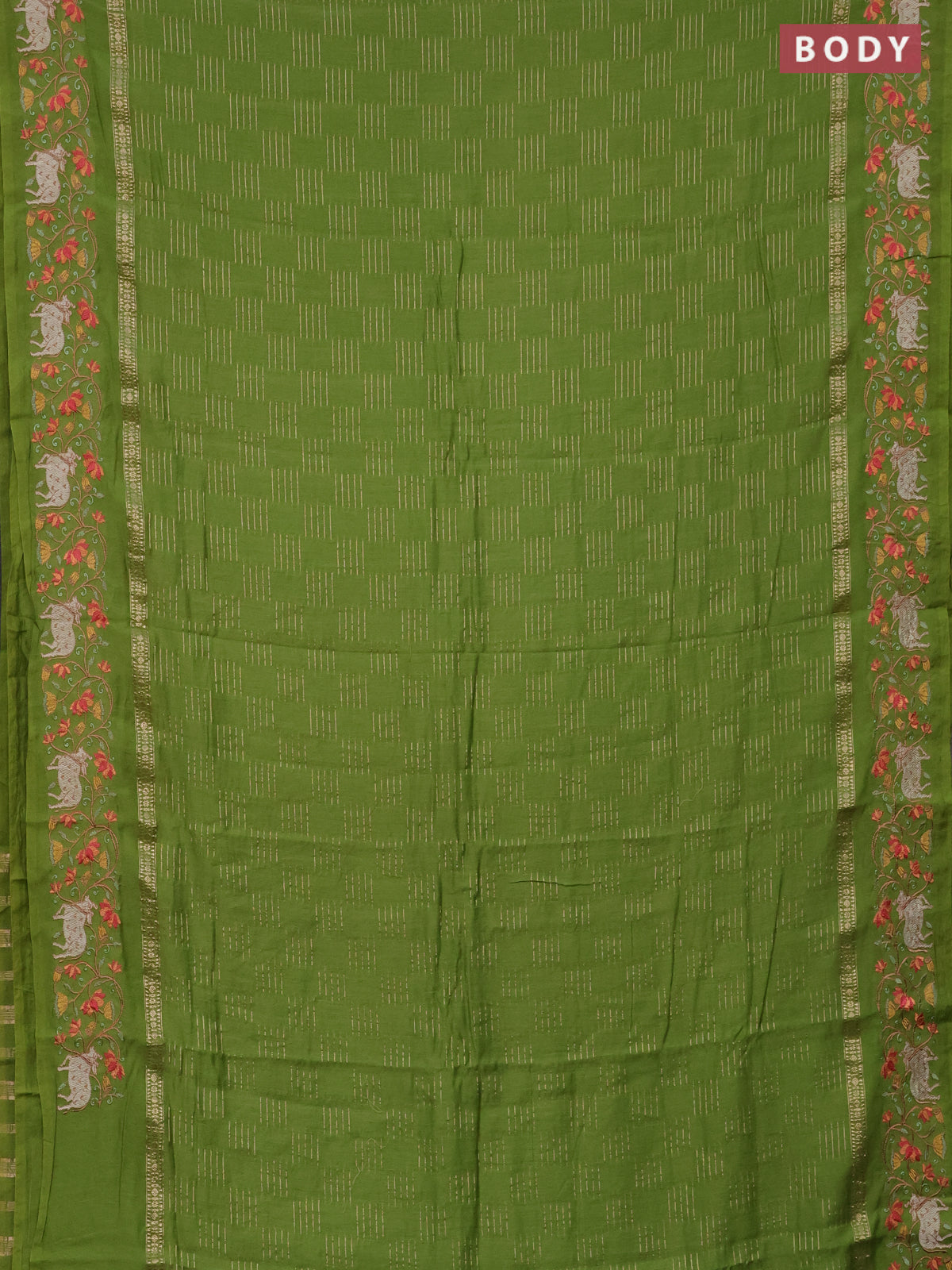 Semi chanderi saree light green with allover zari woven geometric weaves and pichwai embroidery border